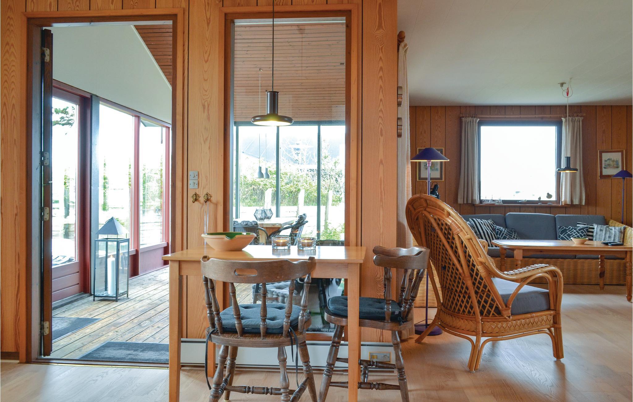 Hyggeligt feriehus i Bjerregård med åben terrasse, brændeovn og tæt på både hav og fjord.