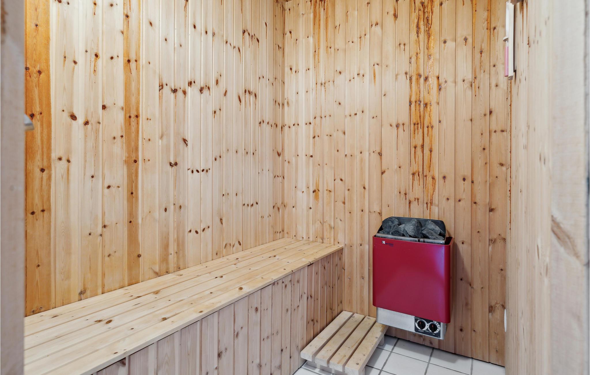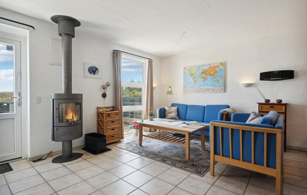 I det naturskønne område mellem Ringkøbing Fjord og Vesterhavet byder dette feriehus jer velkommen. Det komfortable interiør strækker sig over to etager og gør et lyst og indbydende indtryk. Føl jer godt tilpas i husets afslappede atmosfære og nyd udsigten over fjorden fra første sal. Efter en lang gåtur i den friske luft kan I nyde varmen og lade musklerne slappe af i saunaen eller i spabadet. Tilbring solrige timer ude på jeres terrasse og tilbered senere en sommerlig middag på den fælles grill.