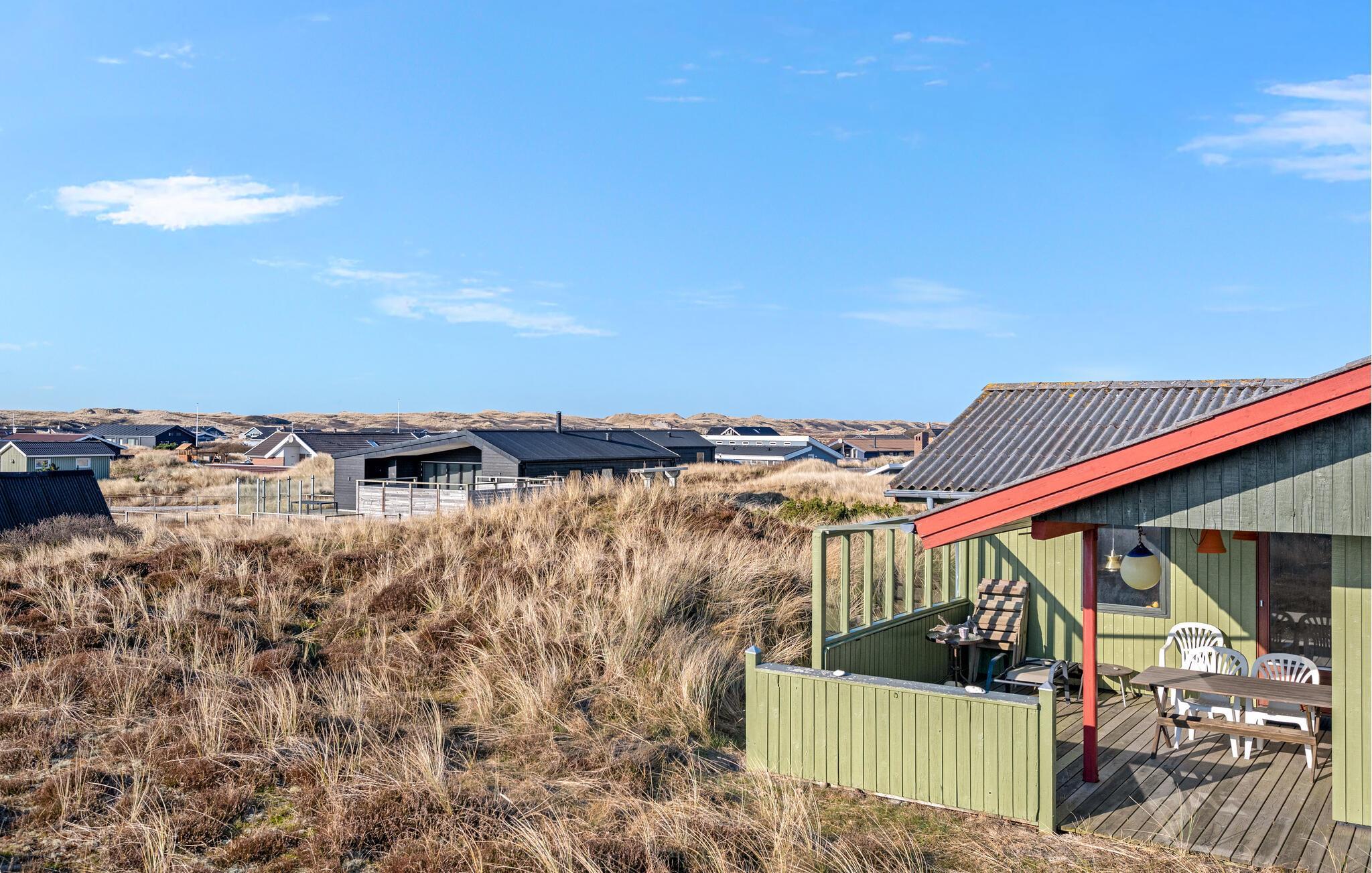 Udenfor er der en charmerende træterrasse med udsigt over de omkringliggende klitter. Server jeres morgenmad her og fyld lungerne med den friske havluft. Lad jeres børn have det skønt på den store naturgrund og forkæl jer selv med et glas vin ved solnedgang, mens I reflekterer over det, I har oplevet.