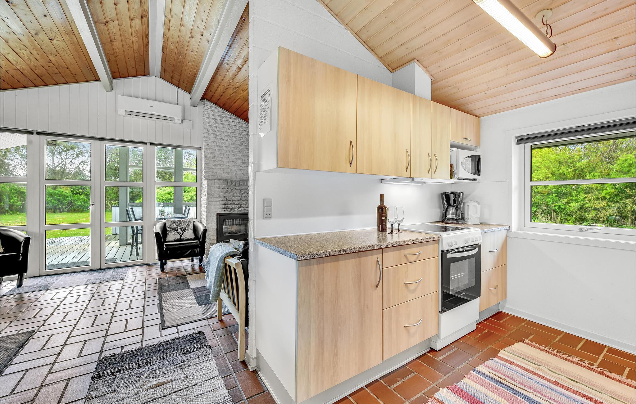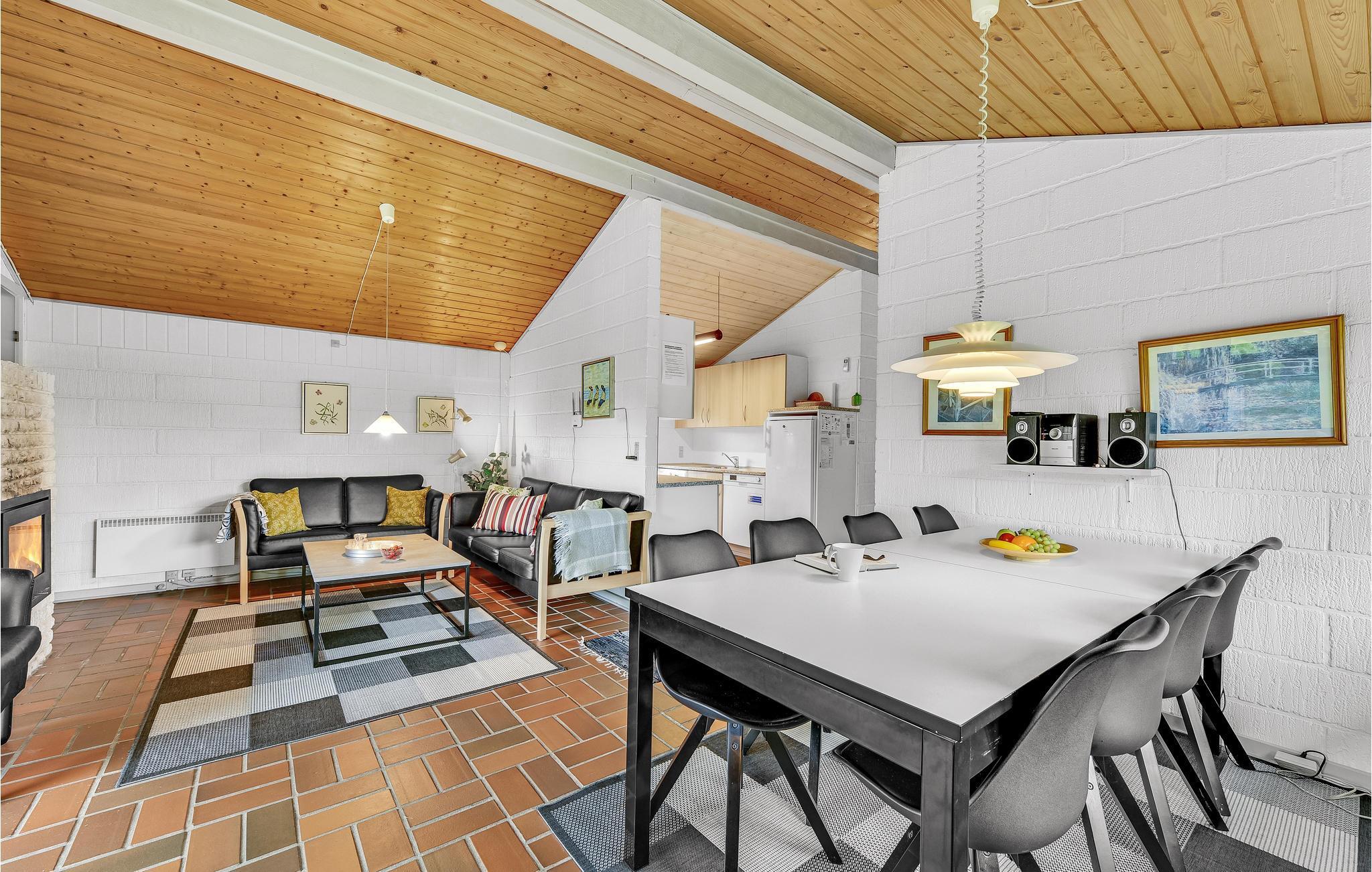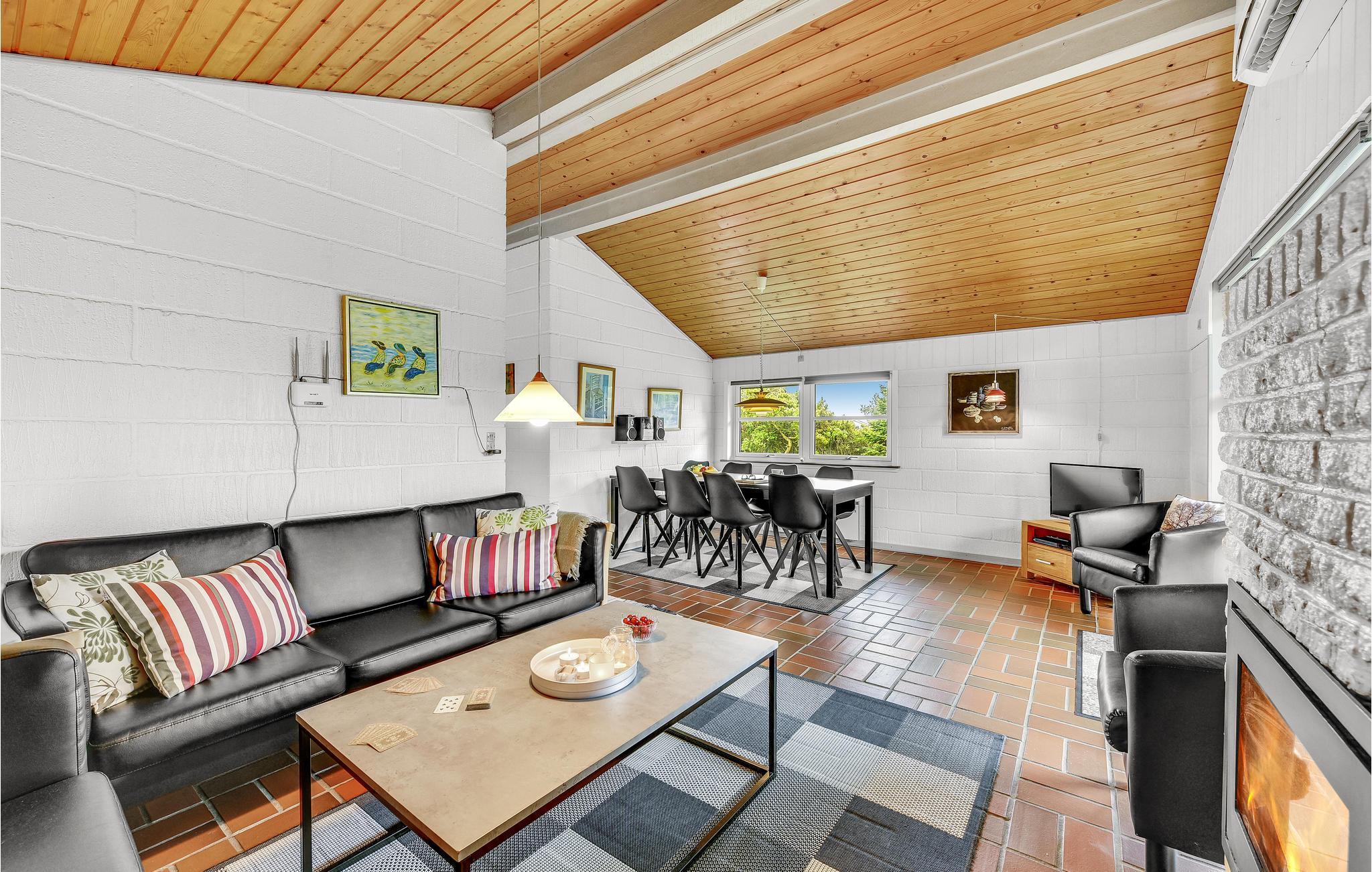 I det eftertragtede Bjerregård ved Vesterhavet ligger dette moderniserede og velholdte træferiehus på en naturgrund med græsplæne.