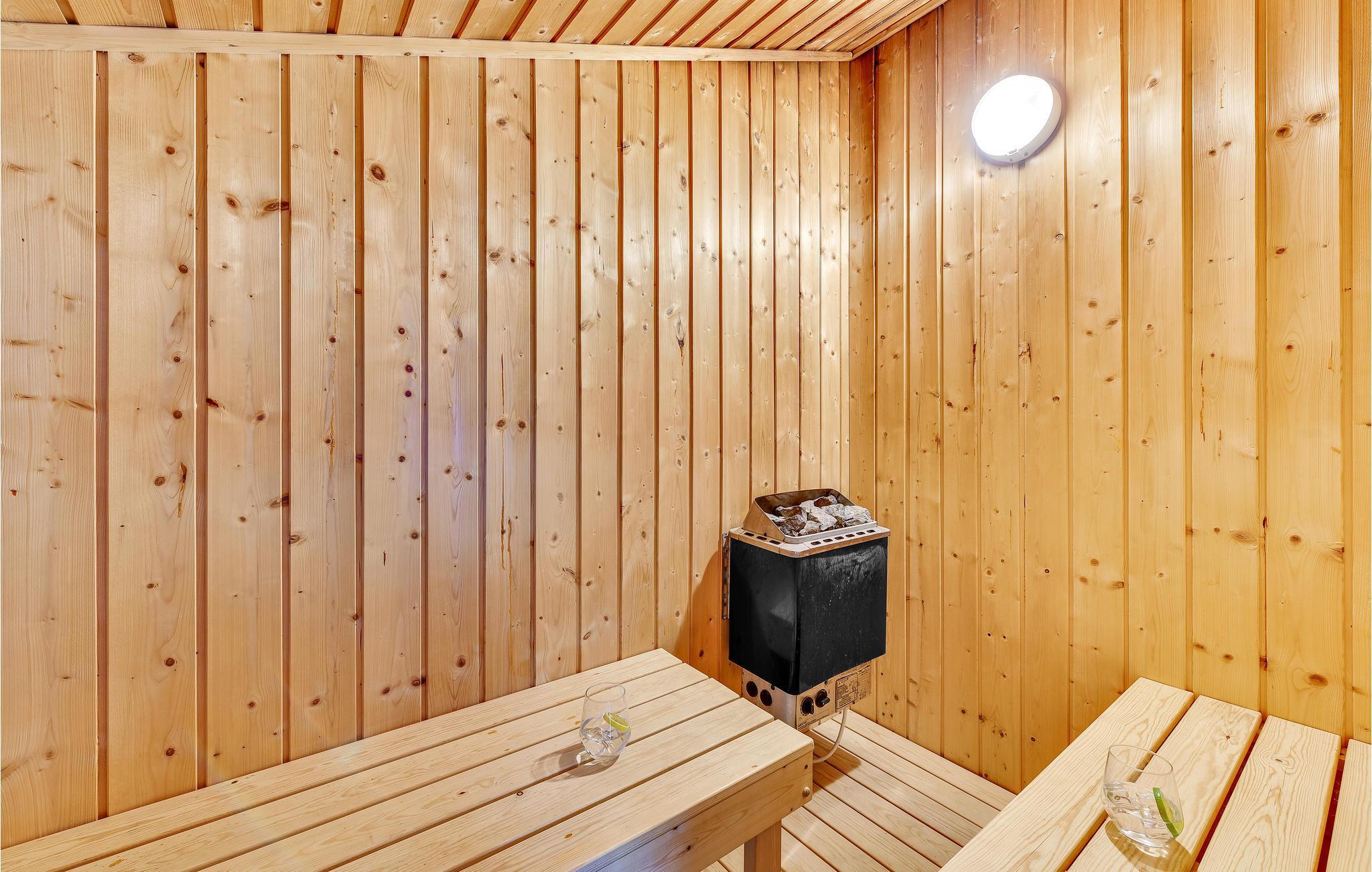 Huset er hyggeligt møbleret, og har i 2010 fået nyt køkken samt et stort badeværelse hvor spabadet og saunaen er placeret.