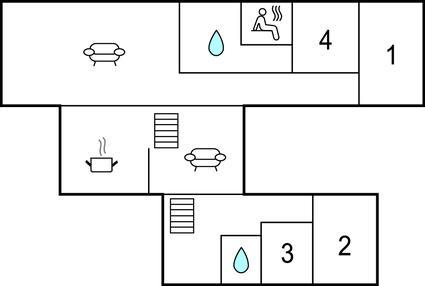 Badeværelse (nr. 1) - WC. Varmt og koldt vand. Badekar