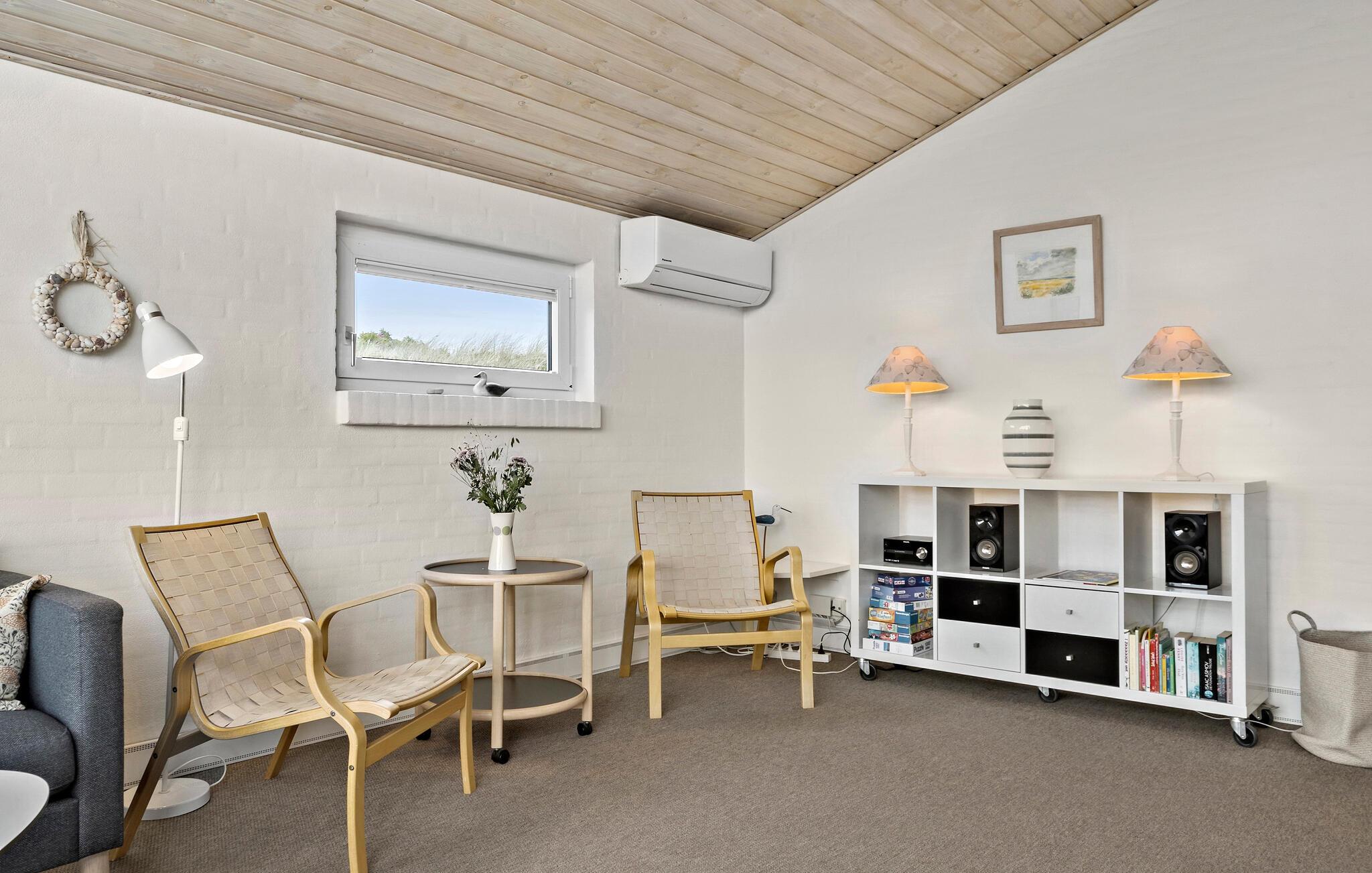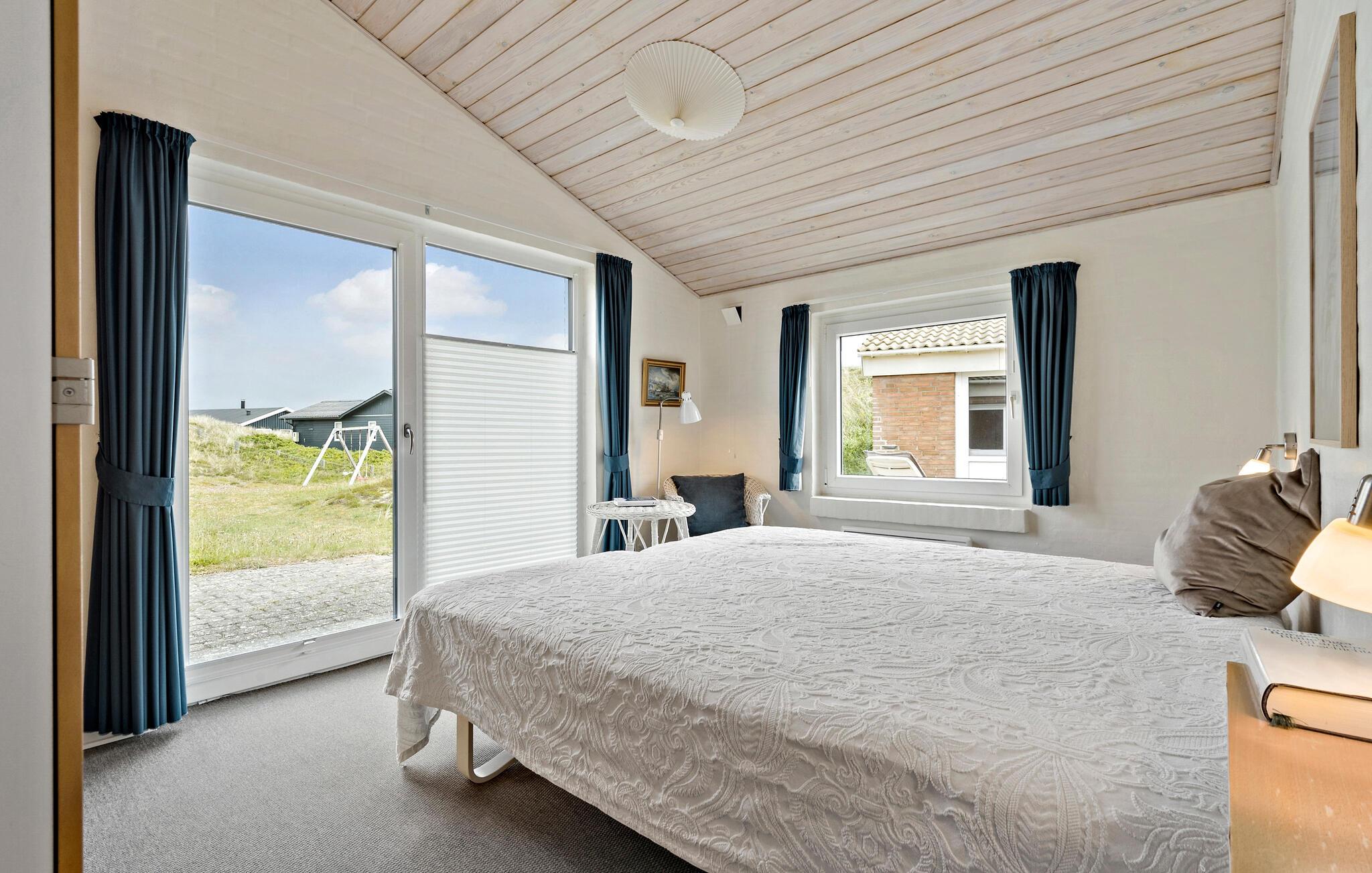 Super flot og moderne feriehus på stor naturgrund, kun 250 m fra Vesterhavet. Huset er spændende og stilfuldt indrettet i forskudte plan og har et veludstyret køkken og spiseafdeling med åben forbindelse til stuen, to soveafdelinger med rummelige soveværelser og eget badeværelse. Velegnet til to familier. Nyd den dejlige udsigt fra en af husets skønne terrasser, som også ligger i forskudte plan, her er næsten altid mulighed for at finde en hyggelig lækrog. Området byder på en masse gode oplevelser i naturen, ved Ringkøbing Fjord og ikke mindst ved Vesterhavets blå bølger og hvide sandstrande. Nærmeste by er Hvide Sande med hyggelig fiskerihavn, stort udbud af butikker, restauranter og cafeer.
