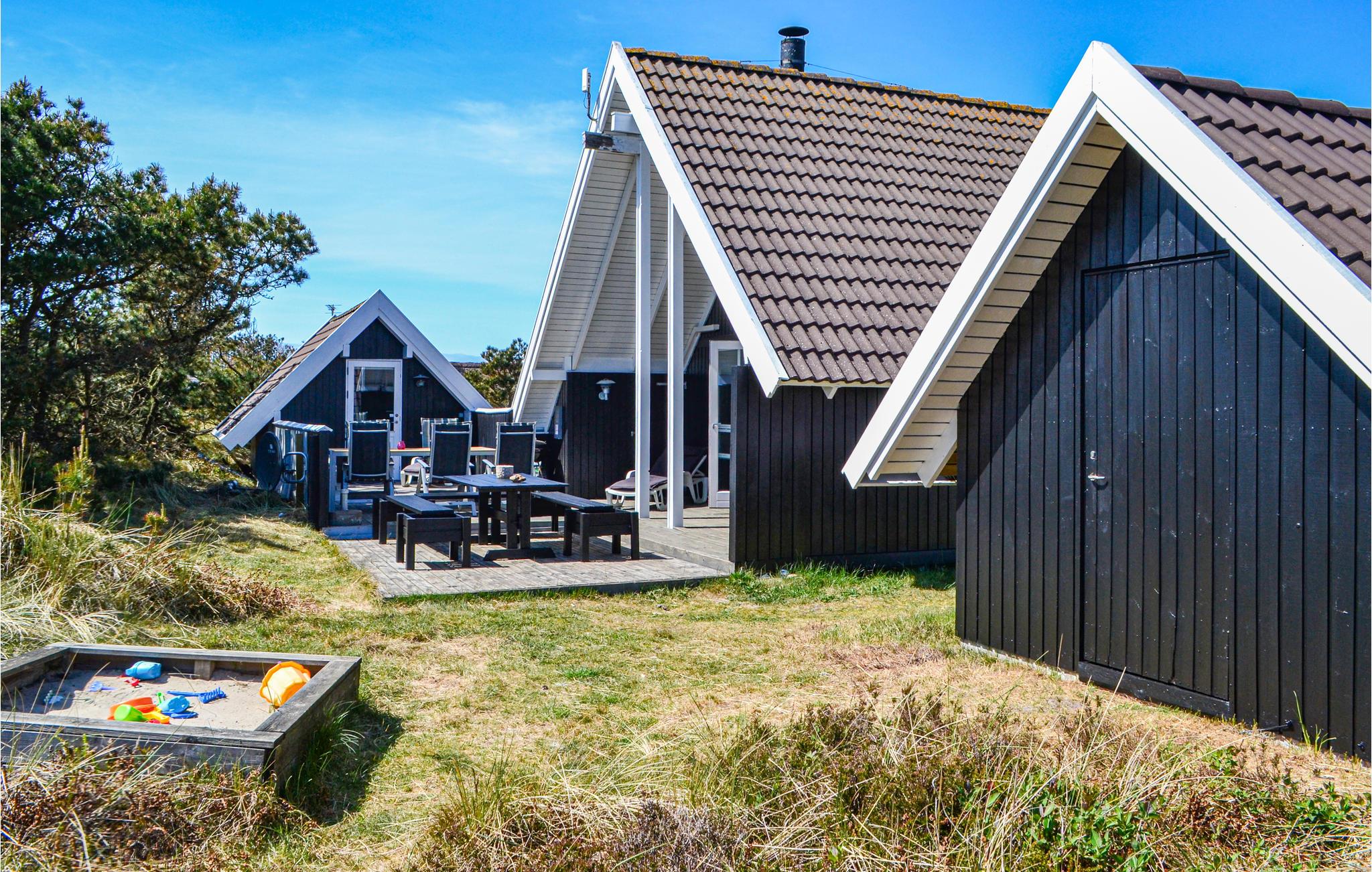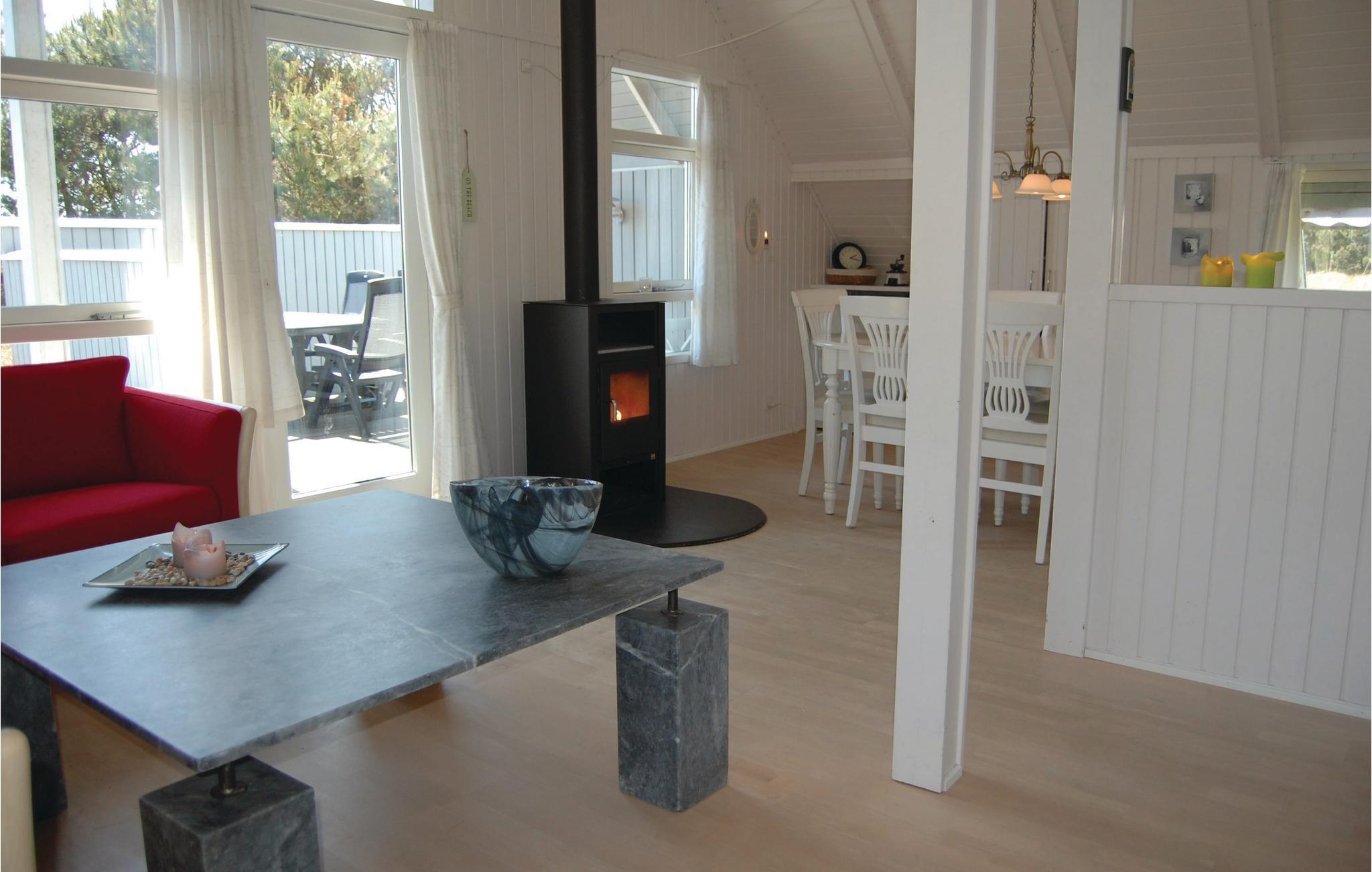 Drømmer I om ægte vestkyststemning, er dette sommerhus det perfekte valg. Her får I nemlig mulighed for at nyde et lyst og hyggeligt hus på naturgrund. De autentiske omgivelser fremkalder følelsen af ro og fred, så snart I ankommer, og I har derfor mulighed for at nyde hinandens selskab. Terrassen er godt afskærmet, så I ofte kan finde læ fra den velkendte vesterhavsvind. 100 m nord for huset ligger et stort fredet klitområde, som virkelig er velegnet til vandreture. Når dagens aktiviteter skal fordøjes, kan I slappe af foran den hyggelige brændeovn, som giver stemning i hele husets køkkenalrum, hvor familien kan samles om måltider og hyggelige aktiviteter.