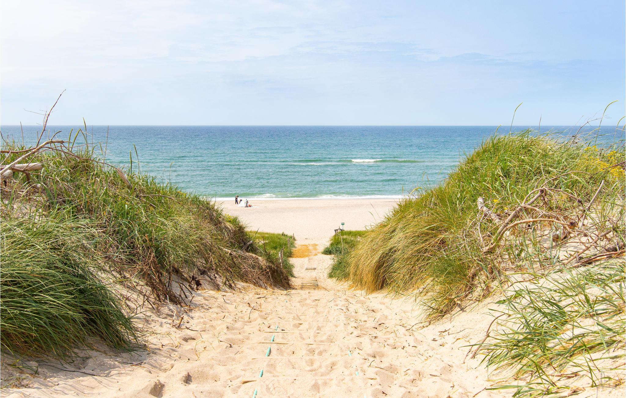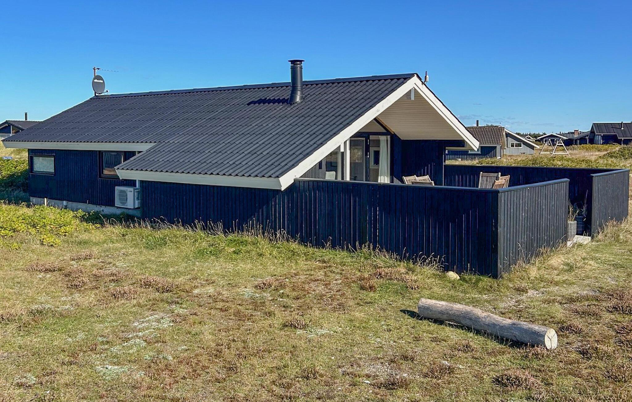 Dette dejlige feriehus med gode terrasse- og læforhold ligger på en stor naturgrund kun 300 m fra Vesterhavet. Med sin gode beliggenhed tæt på hav, fjord og hede er huset ideelt for naturelskere. Indvendigt er det lyst og pænt møbleret med skandinaviske møbler, flot farvesammensætning og brændeovn. Køkken og stue er i åben forbindelse med hinanden, med loft til kip og et dejligt lysindfald. Der er tre gode soveværelser og to sovepladser i alkoven i stuen. Badeværelset er indretttet med et 2-personer spabad og adgang til sauna – ren wellness efter en dejlig tur på stranden. Udendørs er der en delvis overdækket terrasse med tilhørende havemøbler. I området findes mange gode udflugtsmuligheder, som museer med levende værksteder, forskellige forlystelser for både børn og voksne, lystfiskeri, windsurfing, ridning og meget mere. Den nærmeste by er Hvide Sande, som byder på et hyggeligt havnemiljø, gode restauranter og mange specialforretninger.