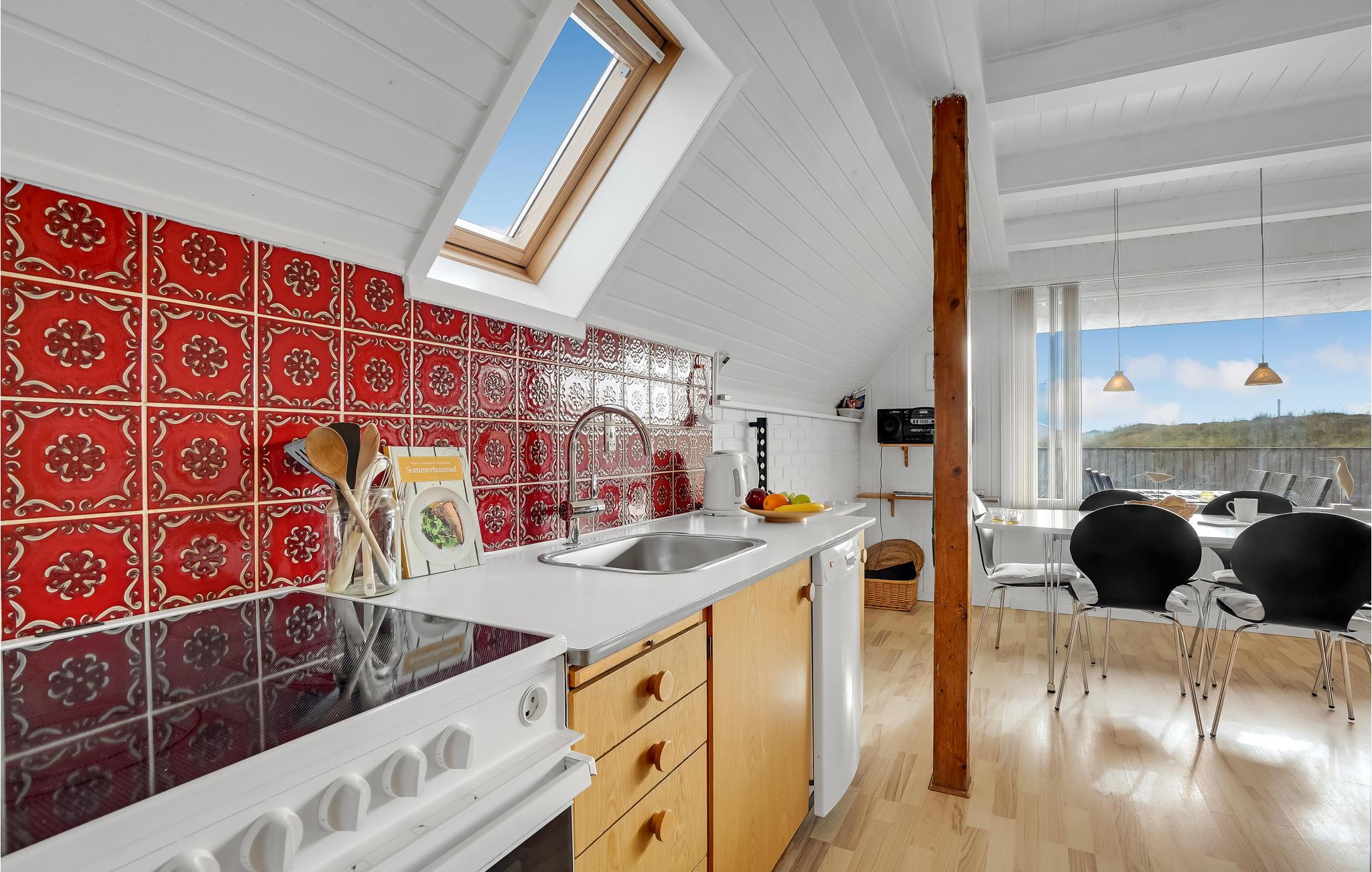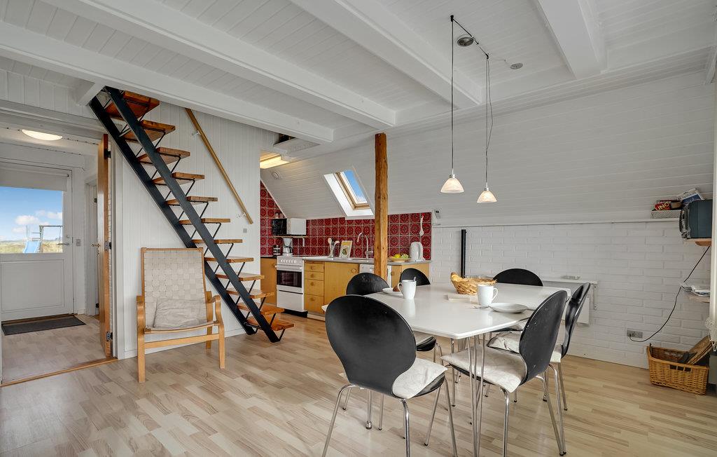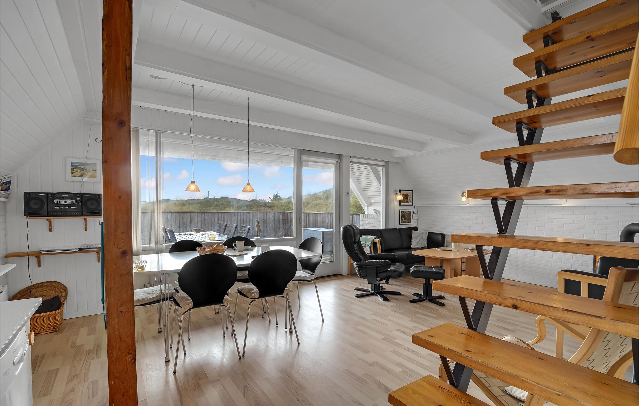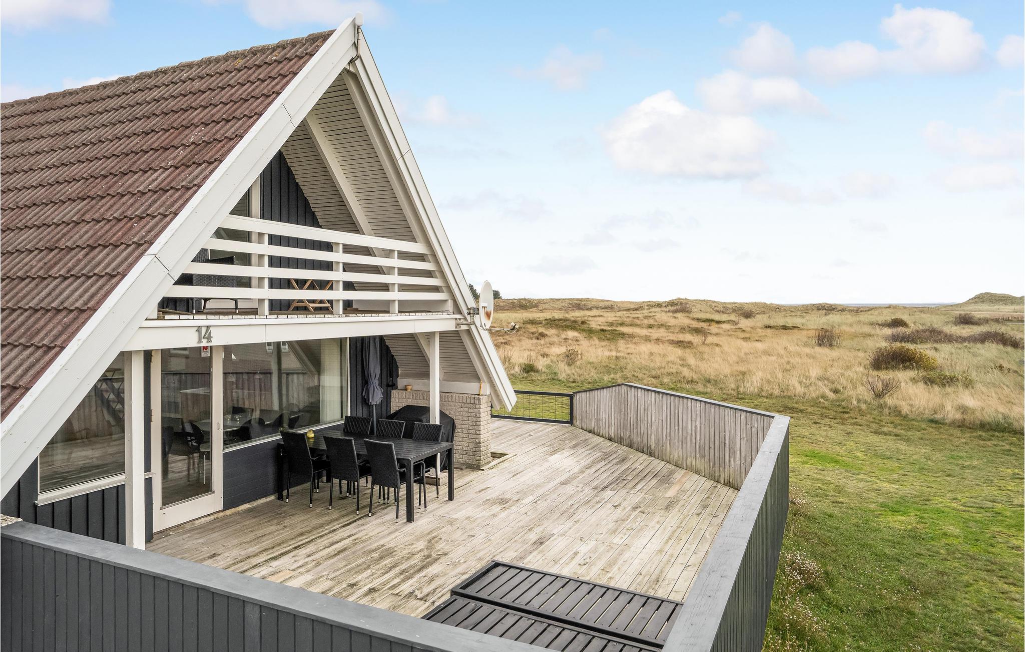 Dette hyggelige og velholdte feriehus er holdt i lyse og venlige farver. Der er direkte udgang til den sydvendte terrasse fra stuen. Fra det ene soverum på 1. sal er der desuden udgang til en dejlig lille sydvendt balkon, fra det andet soverum er der en flot panoramaudsigt ud over landskabet og Ringkøbing Fjord. Her er I midt i den storslåede natur, hvor der er ro, højt til himlen, landlige omgivelser og kort afstand til vandet. Ved Ringkøbing Fjord finder I masser af frisk luft, en skøn varieret natur med fjord, hav, klitter og hede inden for få kilometers afstand. Omgivelserne er skabt til at lave sjove ting for hele familien. Windsurfing, lystfiskeri, drageflyvning eller en sejltur på fjorden er blot nogle af de aktiviteter, som I kan vælge imellem. Foretrækker I gå- og cykelture eller hesteridning - ja så er der også gode muligheder for det.