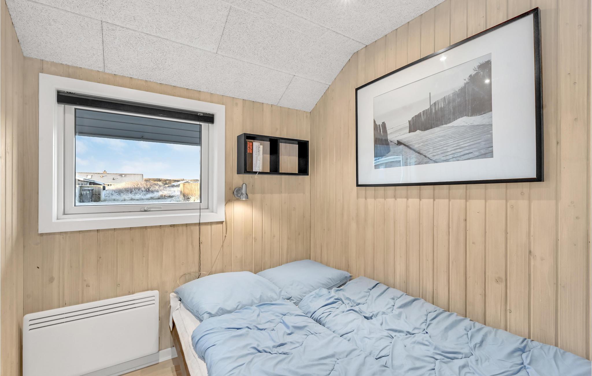 Dette hyggelige sommerhus ligger på en kuperet klit- og naturgrund ikke langt fra Vesterhavets brusende bølger, den hvide sandstrand og klitterne. Husets store attraktion, den dejlige wellnessafdeling byder ikke kun på en skøn swimmingpool, men også et stort fire personers spabad, der giver herlig undervandsmassage, adgang til den velgørende sauna og en bruser. Huset byder desuden på fire soveværelser med plads til i alt otte personer. Udenfor findes en stor sydvendt, afskærmet og delvist overdækket terrasse, hvor I kan nyde solen om dagen og på de lune sommeraftener er det oplagt med en hyggelig grillmiddag. To af dobbeltsengene er smalle (120x190 cm). Tag også på skønne cykel-/gåture i den smukke omkringliggende natur.