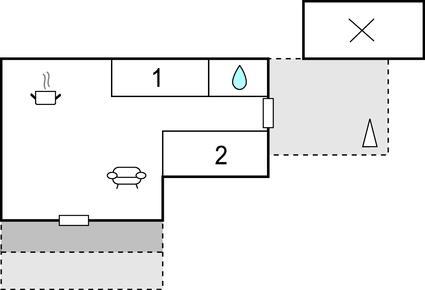 Opholdsstue/køkken - 1 Soveplads. (Sofa, madras eller lignende).
