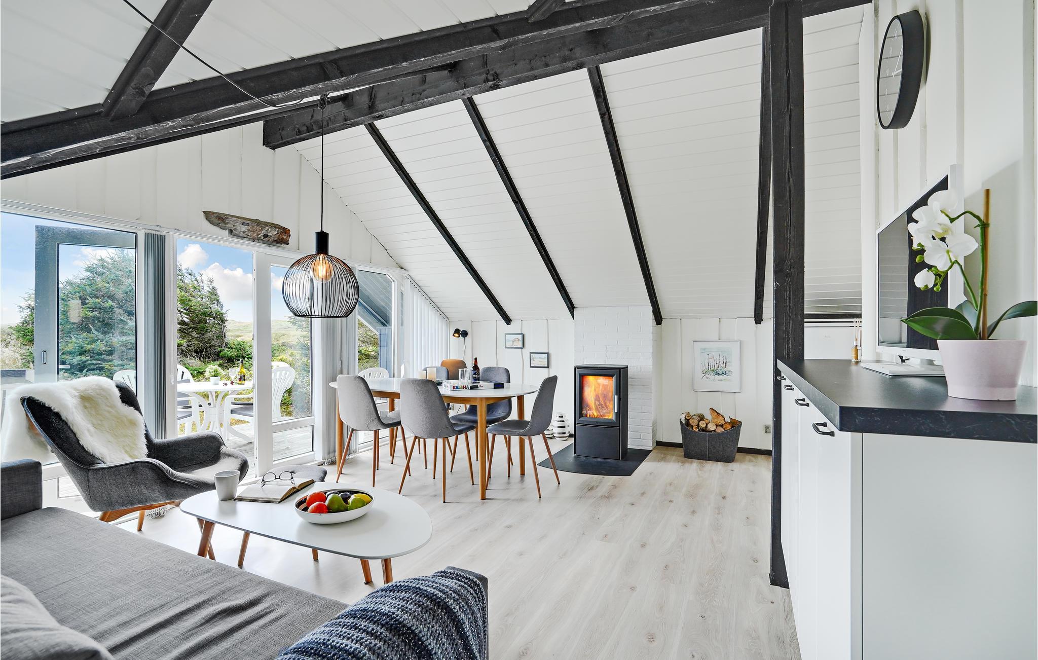Charmerende sommerhus tæt på Vesterhavet med lys indretning og stor terrasse med udsigt over klitterne.