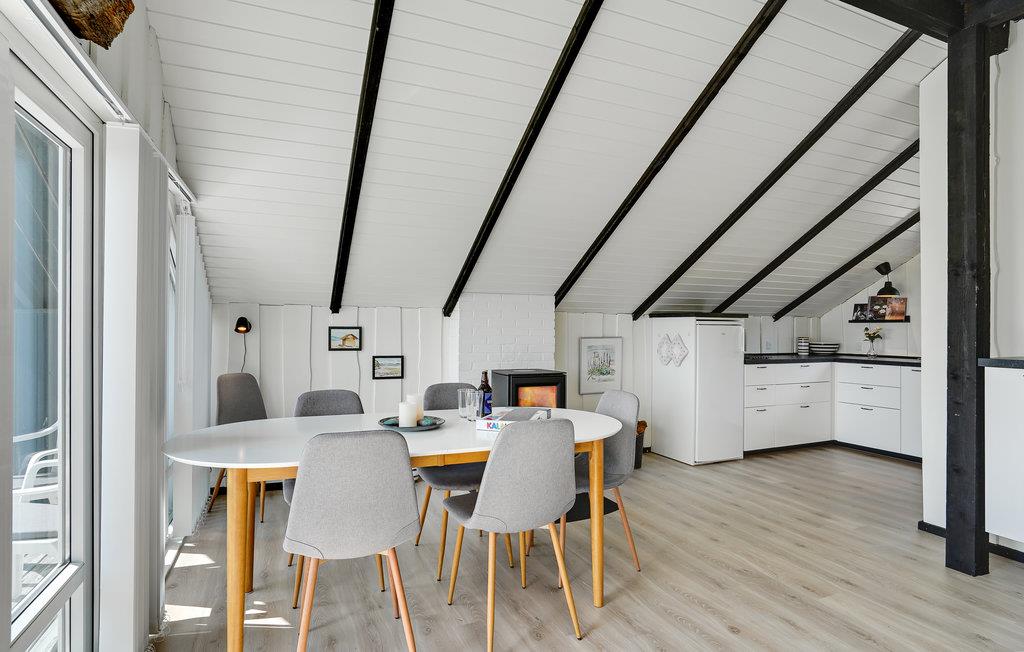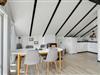 Husets hjert er det store, lyse køkkenalrum, hvor I vil tilbringe mange timers kvalitetstid sammen. Indretningen er lys, moderne og rigtig hyggelig, og her er alt hvad I skal bruge.