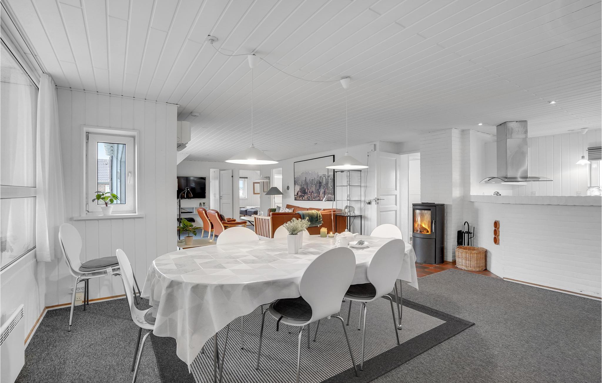 Spændende sommerhus med en stor swimmingpool og lave energiomkostninger, idet der er installeret energibesparende opvarmningskilder. Hertil kommer en betagende udsigt ud over heden, lyngen og klitterne ved Vesterhavet. Husets dejlige indretning med bl.a gode soveværelser, hyggeligt køkken/alrum med brændeovn, fem personers spabad og en sauna, danner rammen om starten på en god og afslappende ferie. Stranden ligger kun 400 m borte, og indbyder til badning og spadsereture, mens havet og bølgernes brusen, giver ro og fred. Besøg området bl.a. Hvide Sande med fiskerihavn, mulighed for vandski, surfing og fiskeri, Ringkøbing; den gamle købstad med smalle gader og stræder eller Bork Havn med en hyggelig fjordhavn og et spændende vikingemuseum. Her er det perfekte sommerhus og et skønt område, så nu er rammerne skabt for den perfekte ferie.