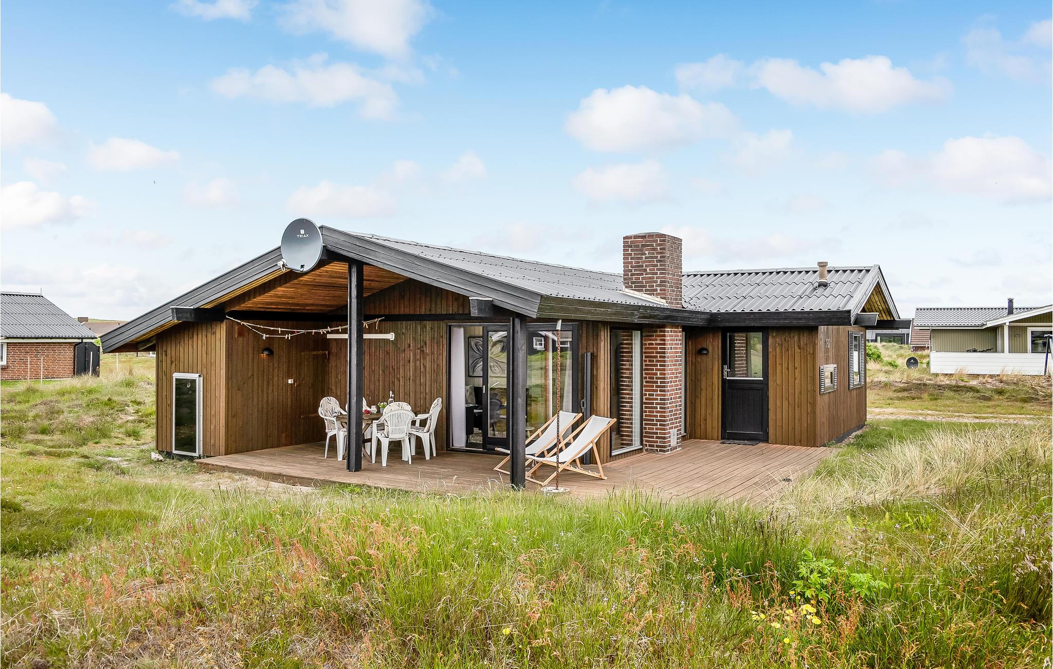 I det dejlige område Bjerregård, finder I dette hyggelige sommerhus beliggende på en åben naturgrund med lyng og udsigt til klitterne. Fra huset er der kun 300 m til Ringkøbing Fjord og 300 m til den fantastiske, brede badestrand ved Vesterhavet med klitter og ugenerte gryder, hvor I kan ligge og nyde solen i ro og fred. Huset er charmerende indrettet med skøn sommerhusstemning og masser af lys. Køkken, stue og spisestue er i åben forbindelse med hinanden, så I kan følge med i både madlavning og resten af familiens aktiviteter. Fra stuen er der direkte udgang til en delvis åben og overdækket terrasse. Udover et velindrettet badeværelse med sauna er der tre soveværelser med enten dobbeltsenge eller køjesenge.