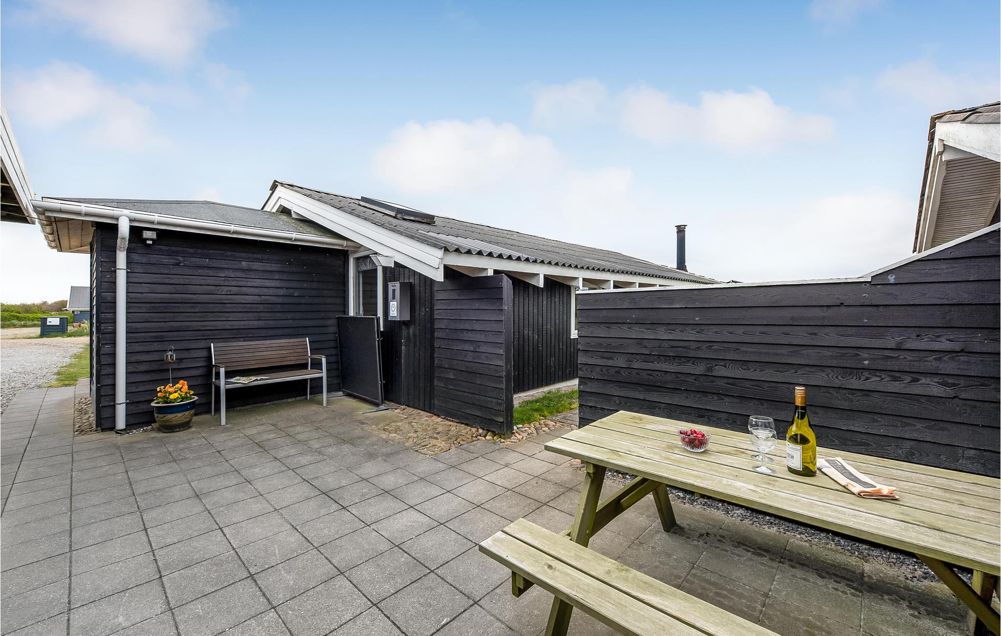 Charmerende fritidshus ved Bjerregård Strand med åbne terrasser og moderne faciliteter tæt på havet.