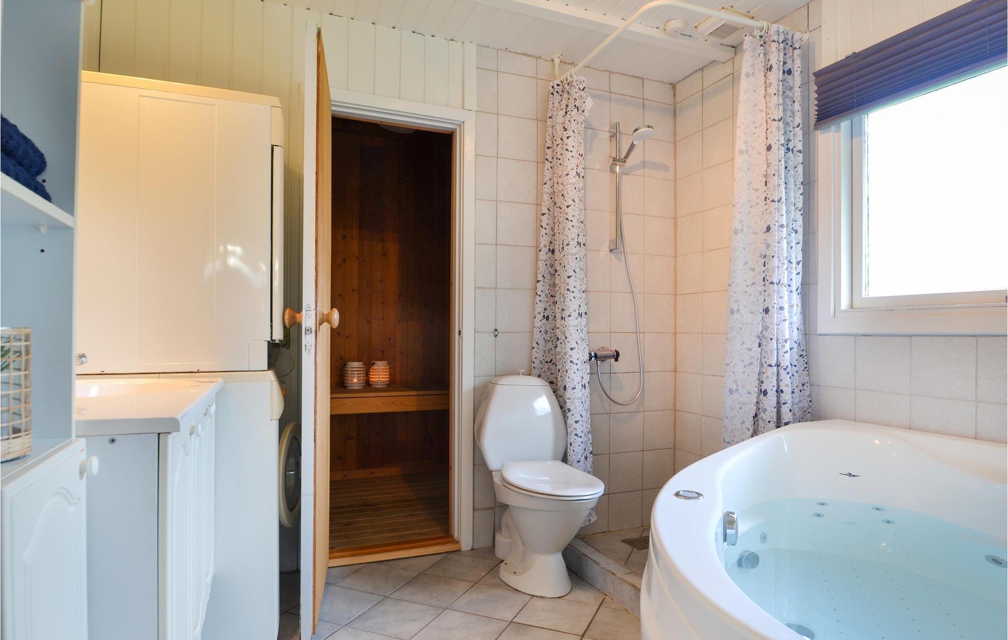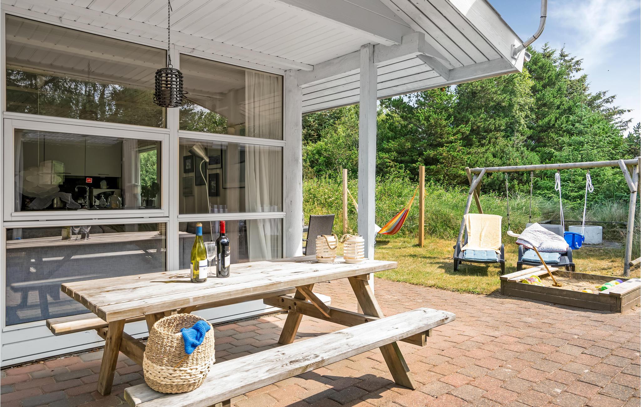 I naturens rige mellem hav og fjord ligger dette skønne sommerhus. Her finder I storslået natur, frisk luft og masser af hygge til hele familien. Huset har en dejlig indretning med masser af lys, og der er skabt en hyggelig sommerhusstemning med bl.a. brændeovn, som kan nydes fra både køkkenet og stuen. Der er plads til 6 personer fordelt i tre rummelige soveværelser – alle med dobbeltsenge. Der er et fint indrettet køkken, som ligger i åben forbindelse med spisepladsen og stuen, så familien er samlet om madlavningen og andre indendørs aktiviteter. Udenfor finder I en stor, lukket terrasse på den ene side af huset og en mindre på den anden side med hyggekrog, bålplads, sandkasse og gynge til de mindste. Har I været en tur på stranden, og er I blevet blæst godt igennem, kan I efterfølgende nyde en dejlig tur i saunaen eller i spabadet.