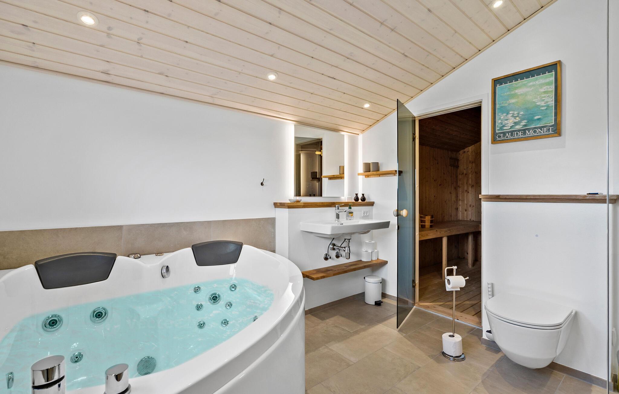 Skønt sommerhus i Bjerregård tæt på strand og natur med sauna, spabad og hyggelig atmosfære.
