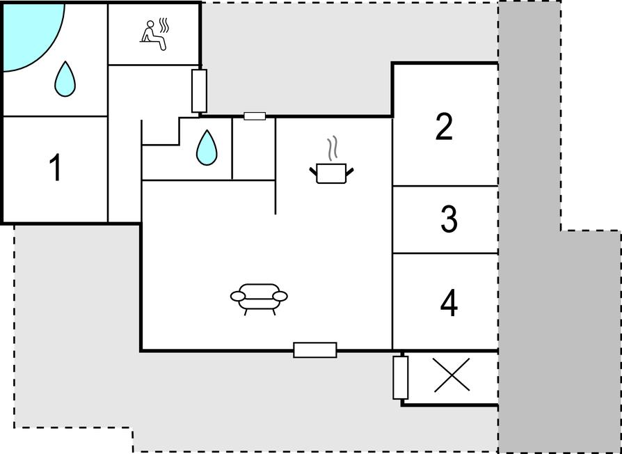 Badeværelse 3m2 (nr. 2) - WC. Varmt og koldt vand. Bruser