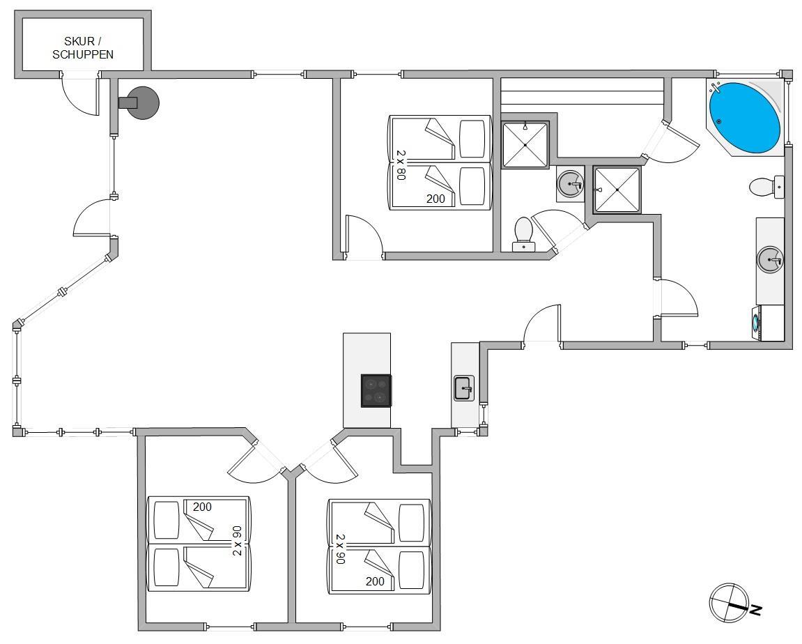 Feriehusets 3 soveværelser er alle indrettet med dobbeltsenge, og her har I rig mulighed for at samle fornyet energi efter en oplevelsesrig dag.