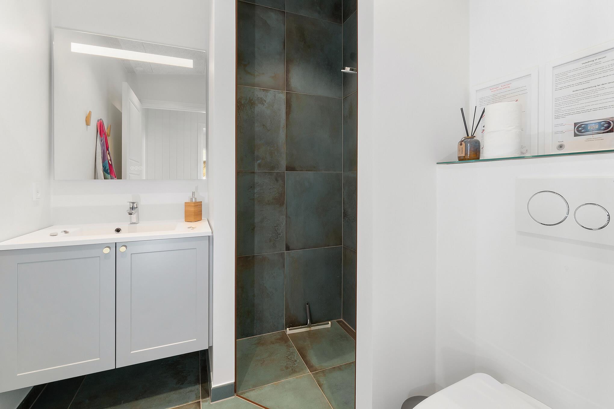 Feriehusets 8 sovepladser er fordelt på 4 rummelige værelser, der alle er indrettet med komfortable dobbeltsenge. Alle værelser har desuden mørklægningsgardiner. Der er 2 badeværelser i sommerhuset, så der ikke opstår kø om morgenen. Begge er med gulvvarme, og på det ene finder I desuden sommerhusets sauna og et badekar. Her er også en vaskemaskine og tørretumbler, så I kan vaske tøj og håndklæder i løbet af ferien.
