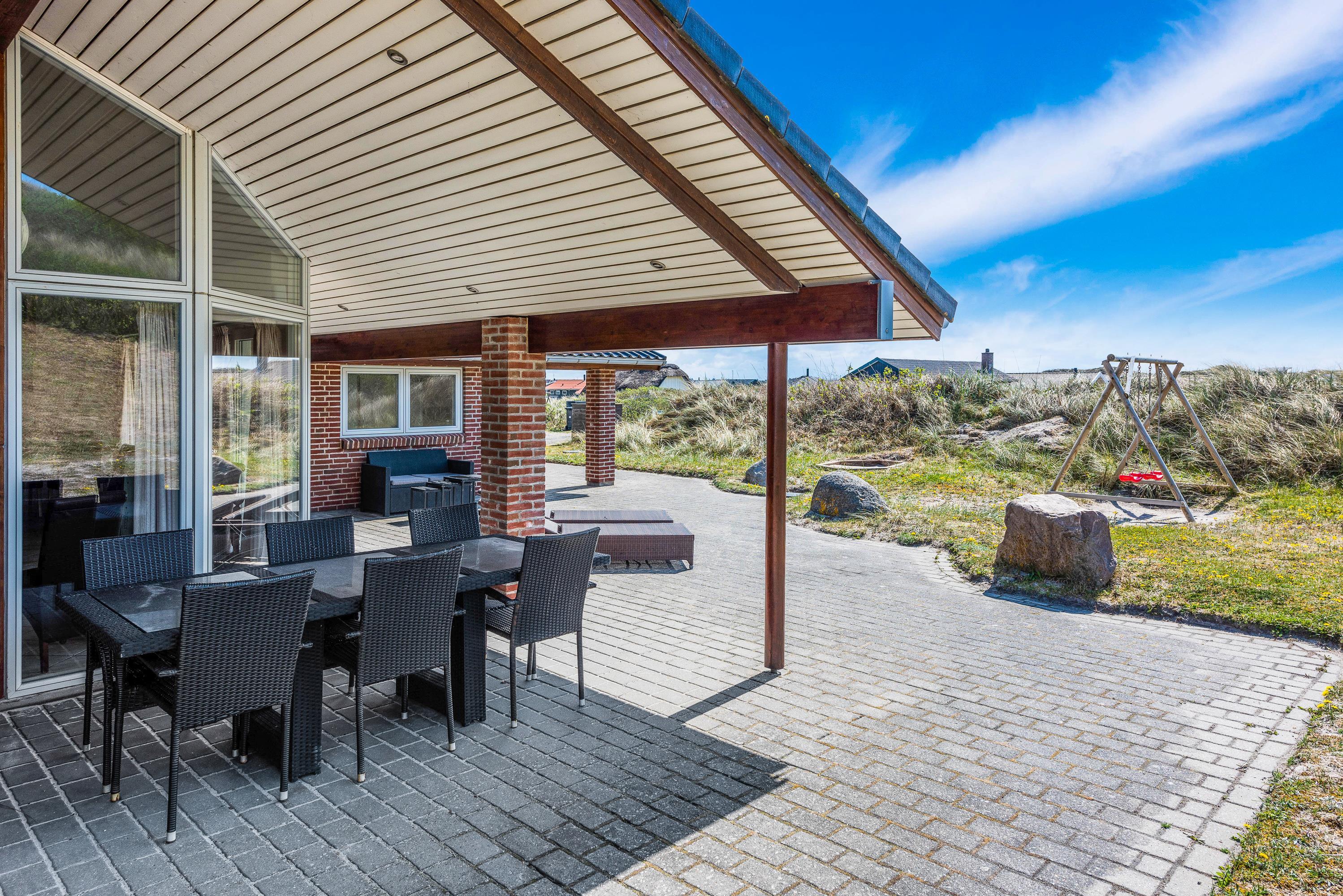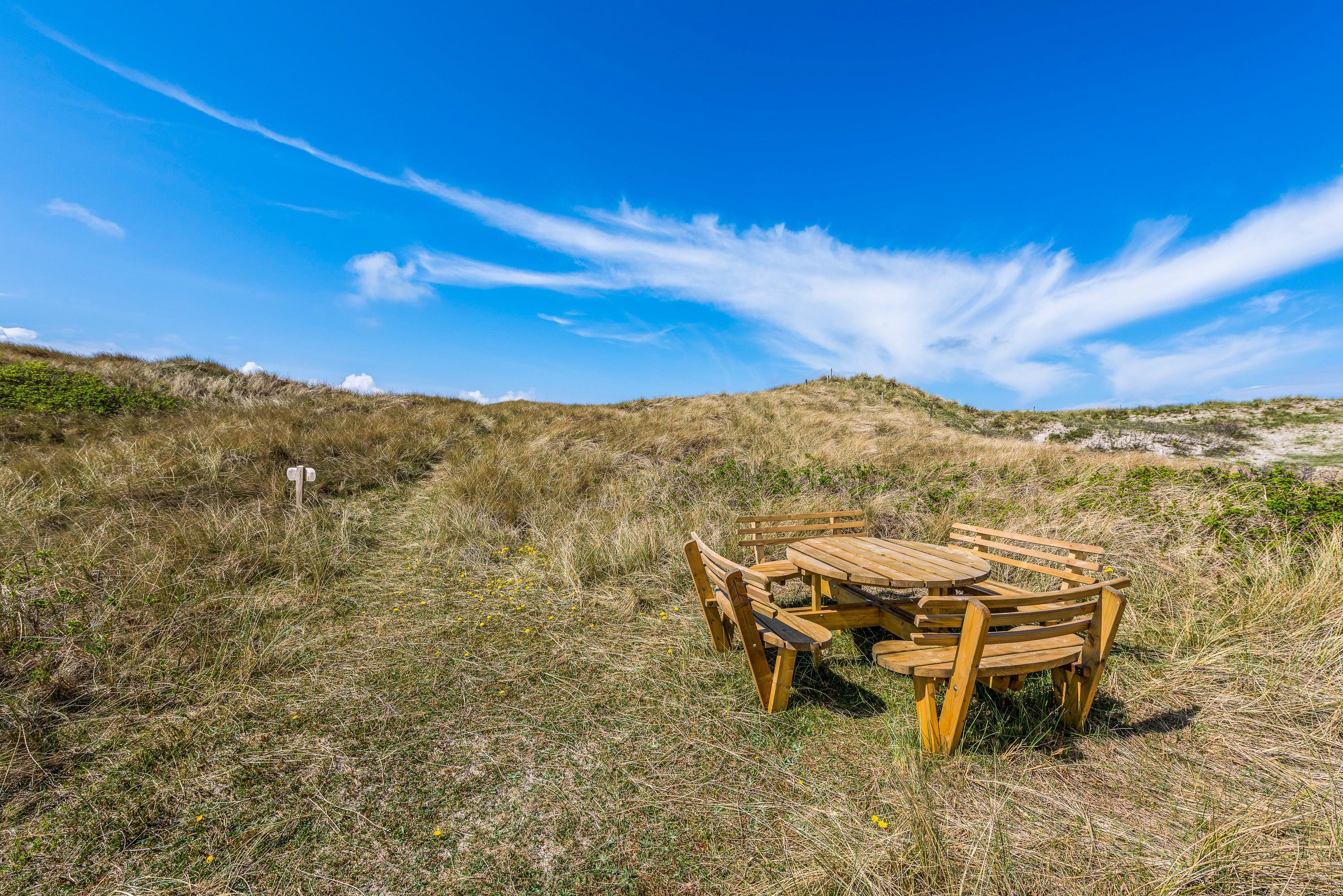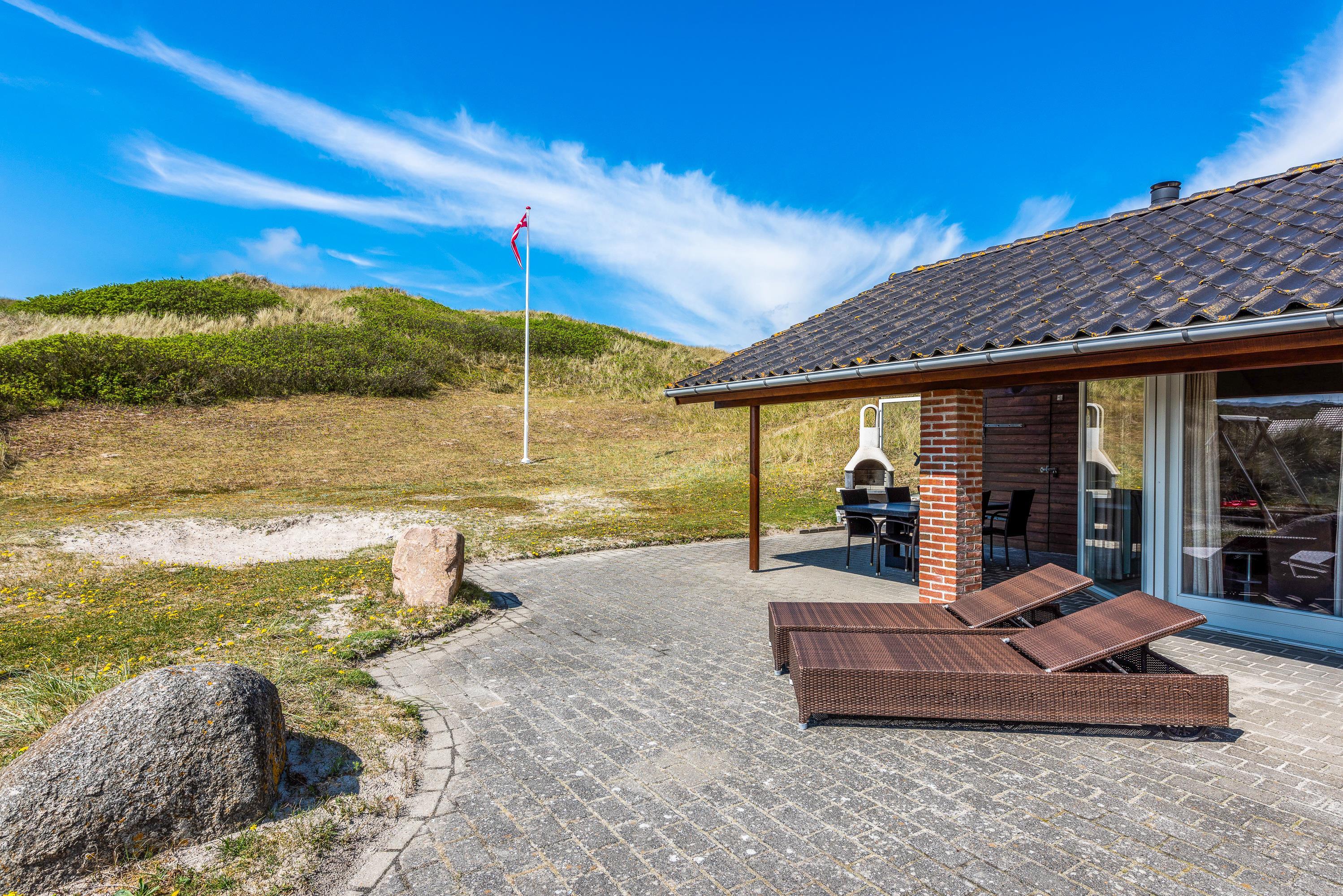 Huset har en supergod beliggenhed lige op af klitten, – så er du frisk på en morgendukkert, kan havet nås på 2 minutter. Terrassen er naturlig afskærmet for nysgerrige blikke og går hele vejen rundt om huset, så her finder du altid en læfyldt plet.