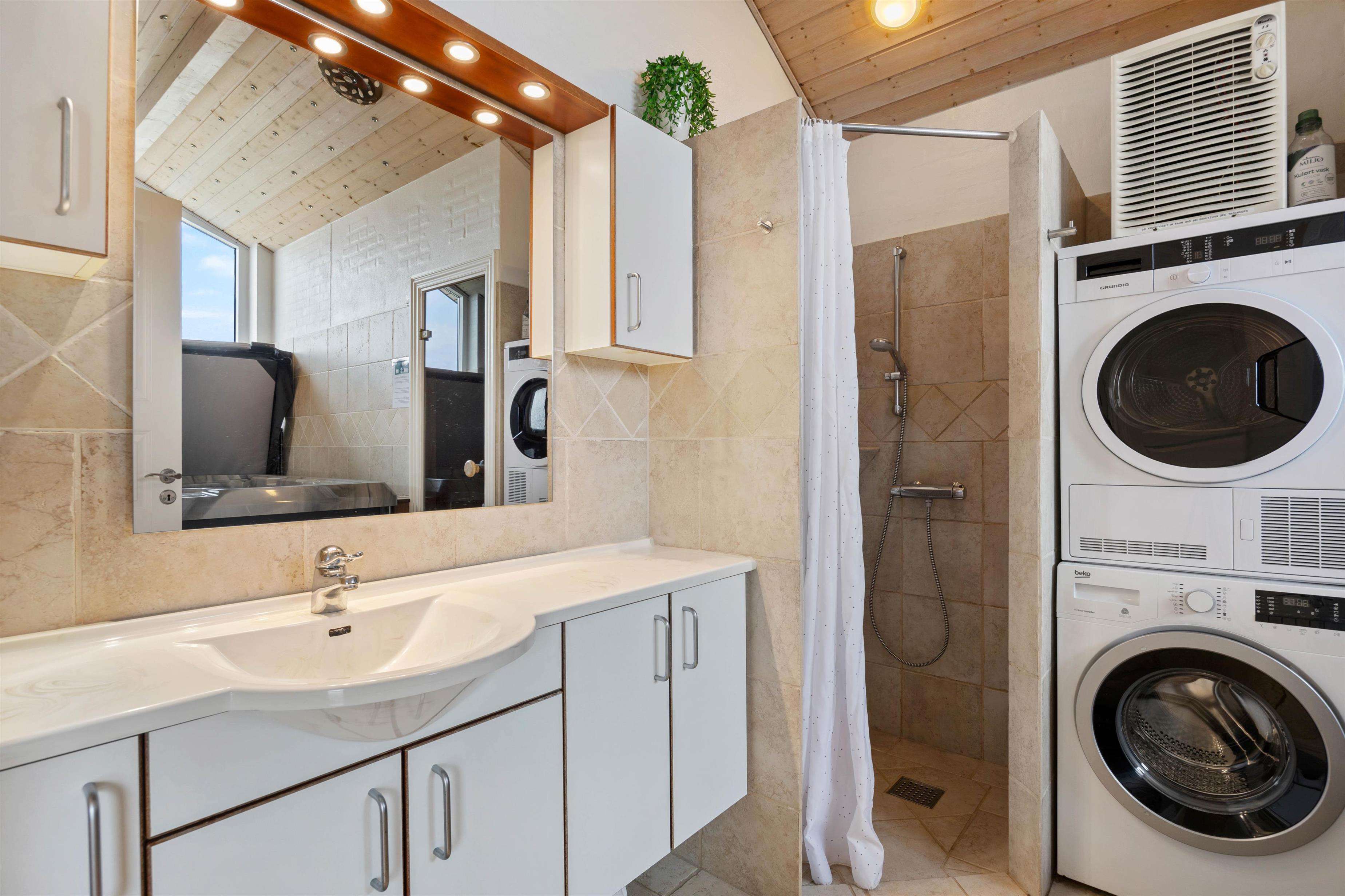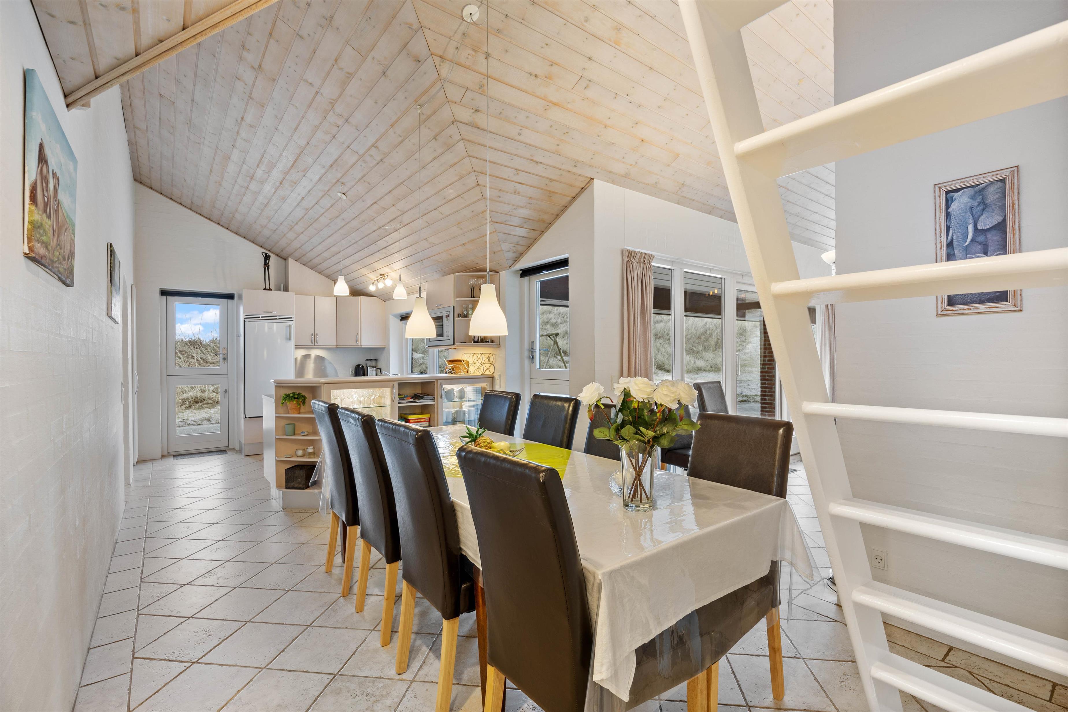 Fra de store panoramavinduer i opholdsstuen er der et flot lysindfald og herfra er der smuk udsigt til klitterne. Overalt i huset er der klinkegulve med gulvvarme, og opvarmningen sker med en energivenlig luft-til-vand varmepumpe.