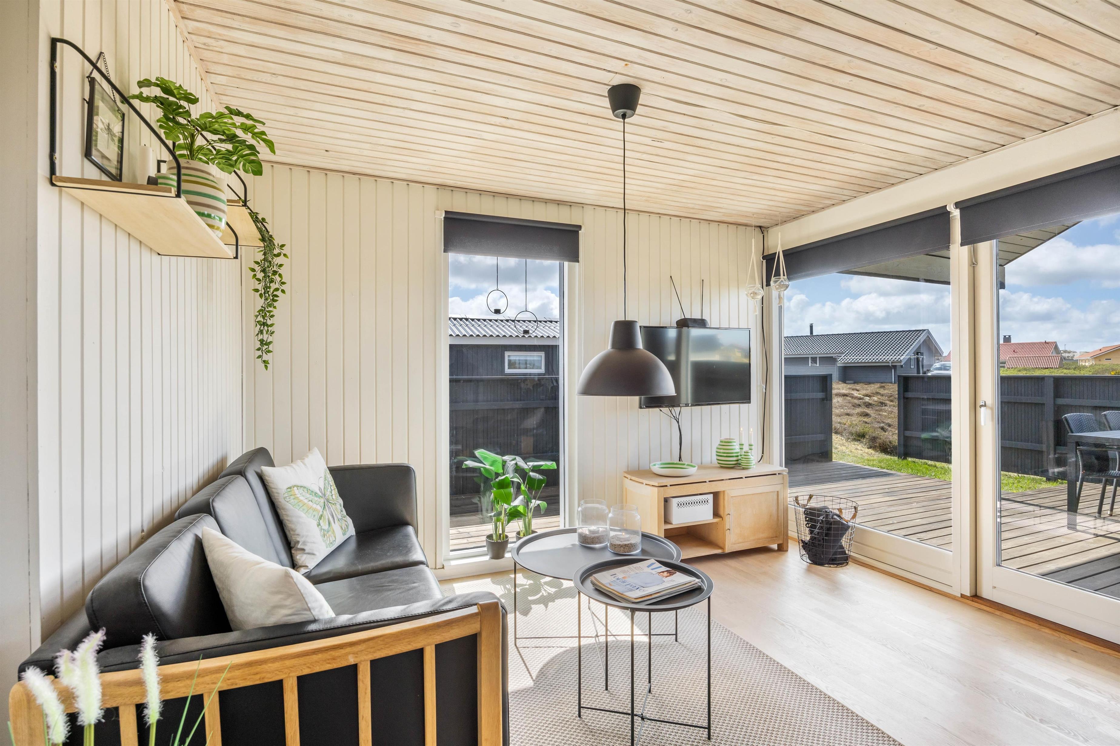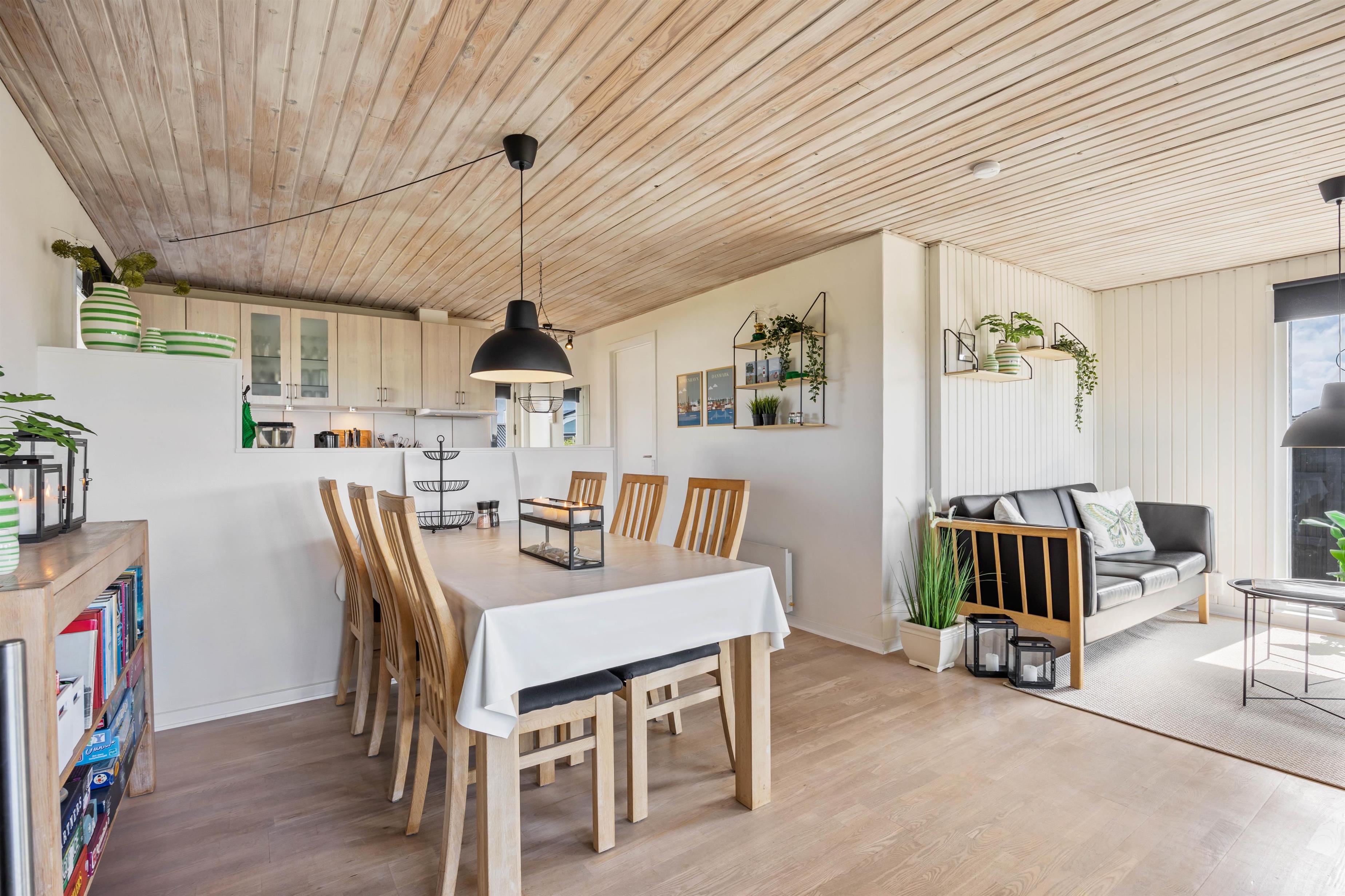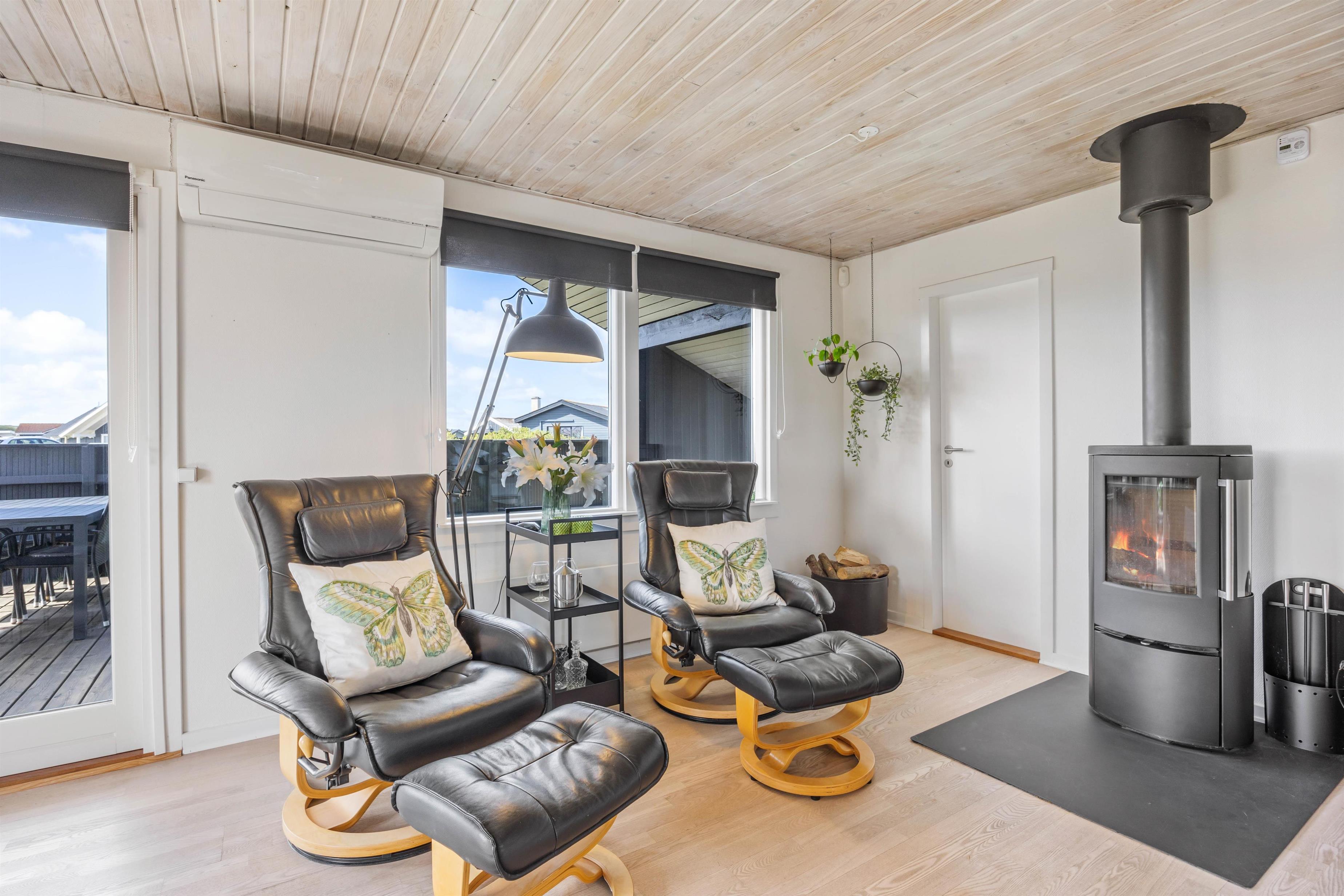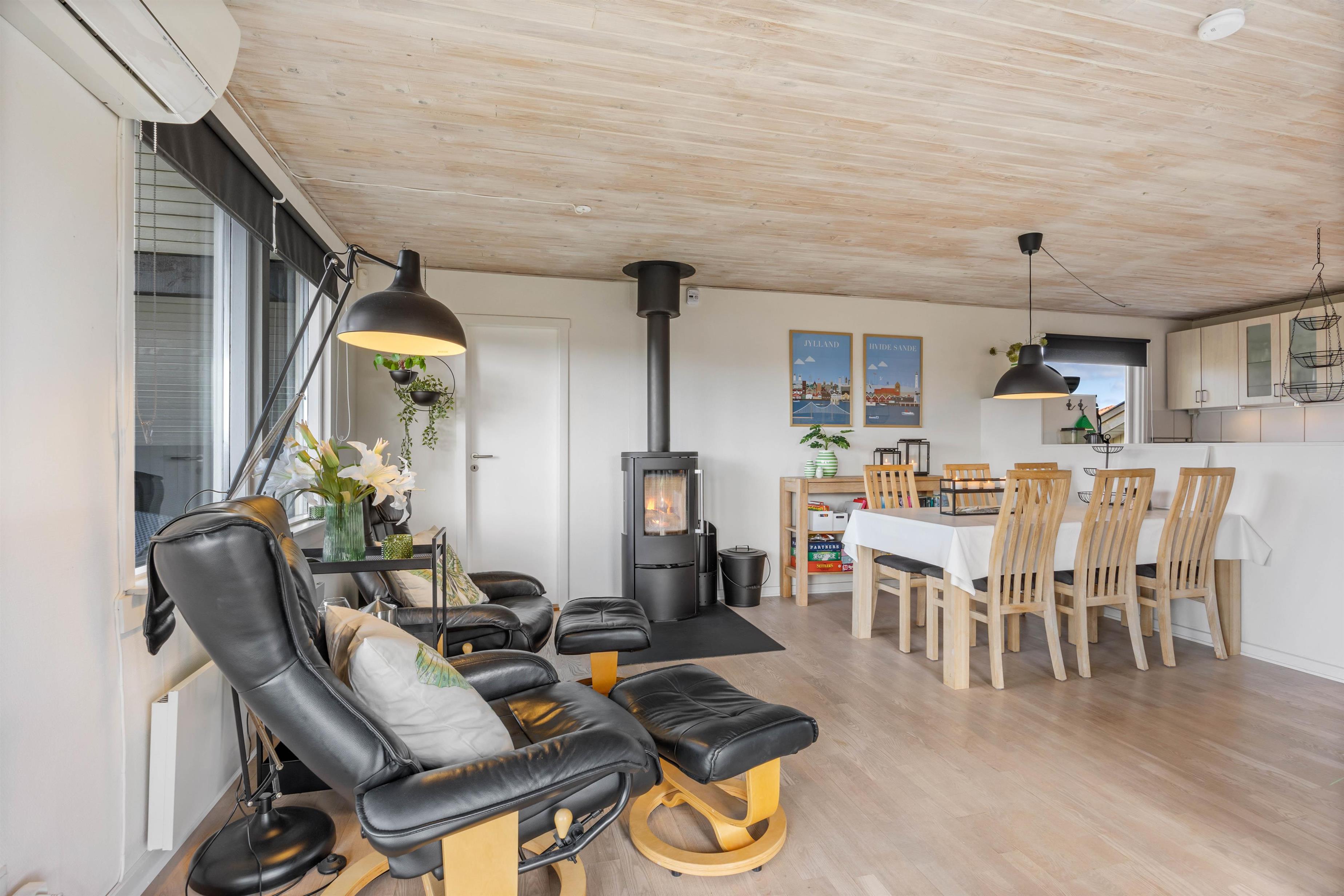 Sommerhusets hjerterum er alrummet, som består af køkken, spiseplads og stue. Her kan hele familien samles til hyggelige stunder sammen, mens brændeovnen knitrer i baggrunden. Der er Chromecast i sommerhuset, så I kan streame jeres yndlingsfilm og -serier. Der er en energibesparende varmepumpe, som I med fordel kan benytte jer af til at holde en behagelig temperatur i feriehuset.