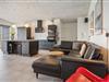 Sommerhusets hjerte og samlingspunkt er det store lyse opholdsrum med kombineret køkken- og spiseafdeling. Her kan I sætte jeres yndlingsfilm på fjernsynet via. chromecasten og holde en hyggelig filmaften med hele familien. Den veludrustede køkkenafdeling ligger midt i rummet og indeholder bl.a. stor 2x63 l. fryser, mikroovn og opvaskemaskine. Herfra har I overblikket over det komfortable sofahjørne i den ene side – og spiseafdelingen i den anden side. En bio-pejs midt i rummet sørger for hygge i hele rummet, og gulvvarmen giver en god varme.