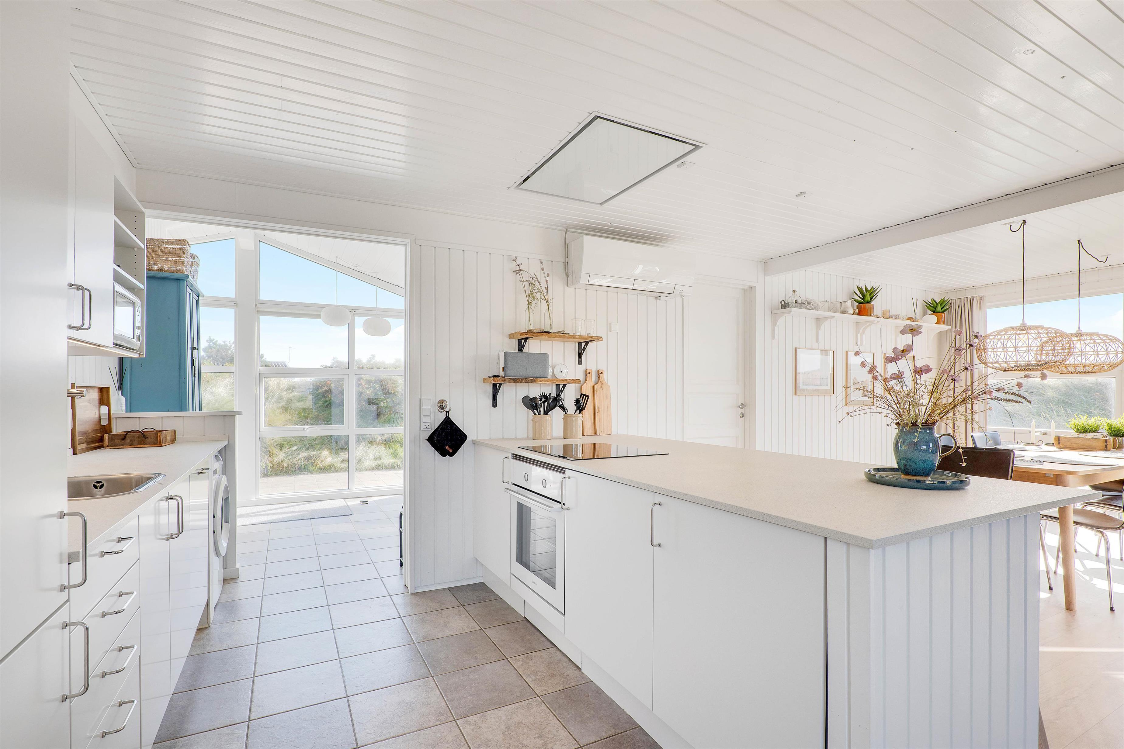 Her får I alle praktiske nødvendigheder i form af opvaskemaskine, vaskemaskine og gulvvarme på både badeværelset, i entréen og i køkkenet. Der står også en gratis internetforbindelse til rådighed, så I kan være online på ferien.