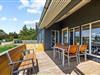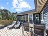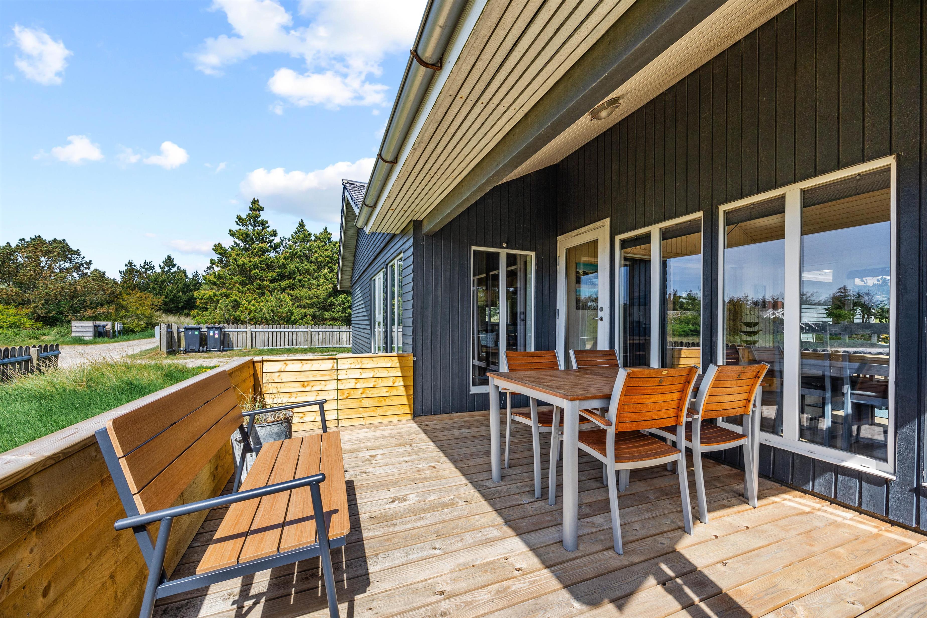 Fra udestuen er der udgang til de lukkede terrasser med mulighed for altid at kunne finde læ. Vestterrassen er delvist overdækket, den øst og sydøst-vendte er noget større og strækker sig på hele sommerhusets bagside. På naturgrunden er der gynge og sandkasse. Den rummelige garage er til disposition.