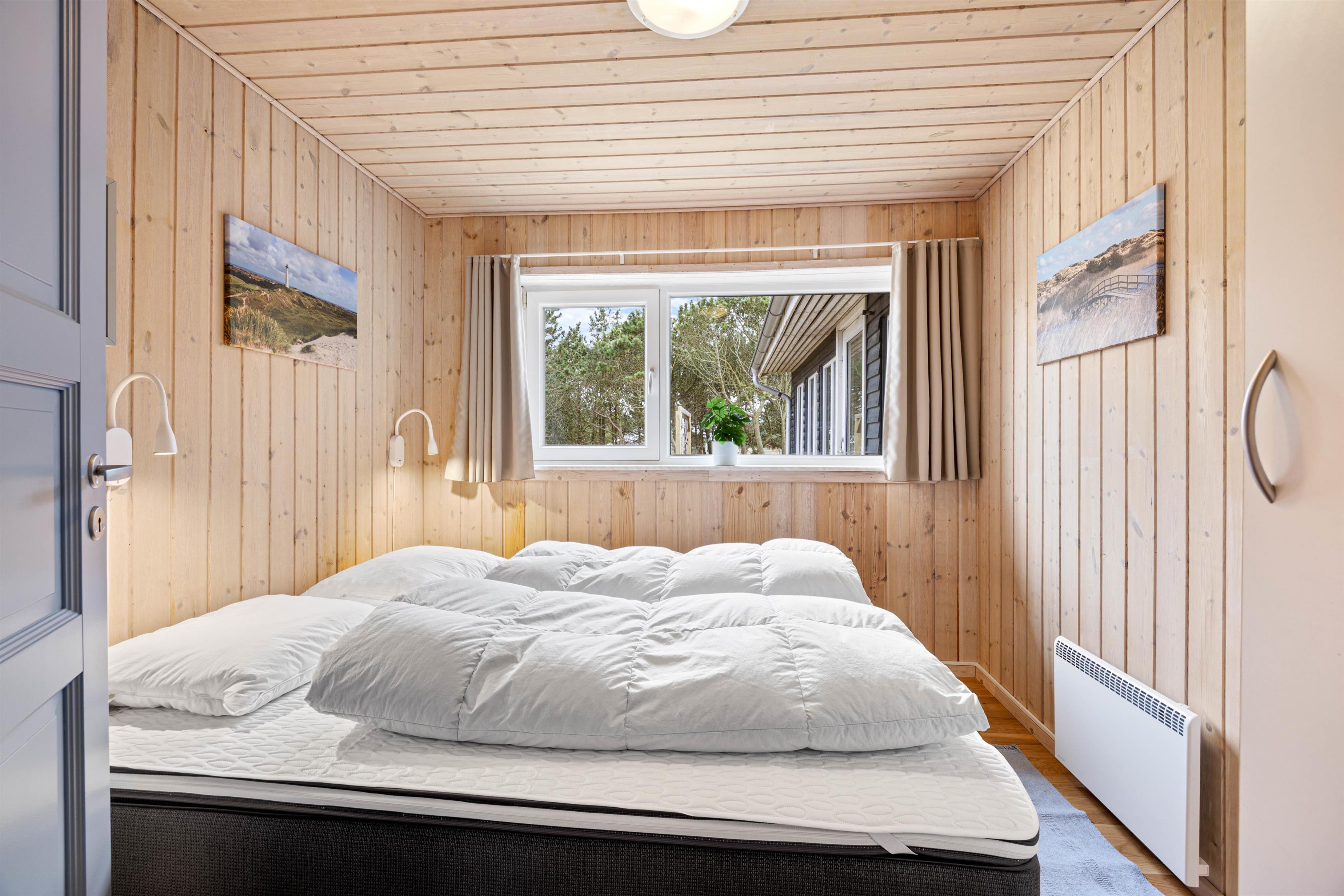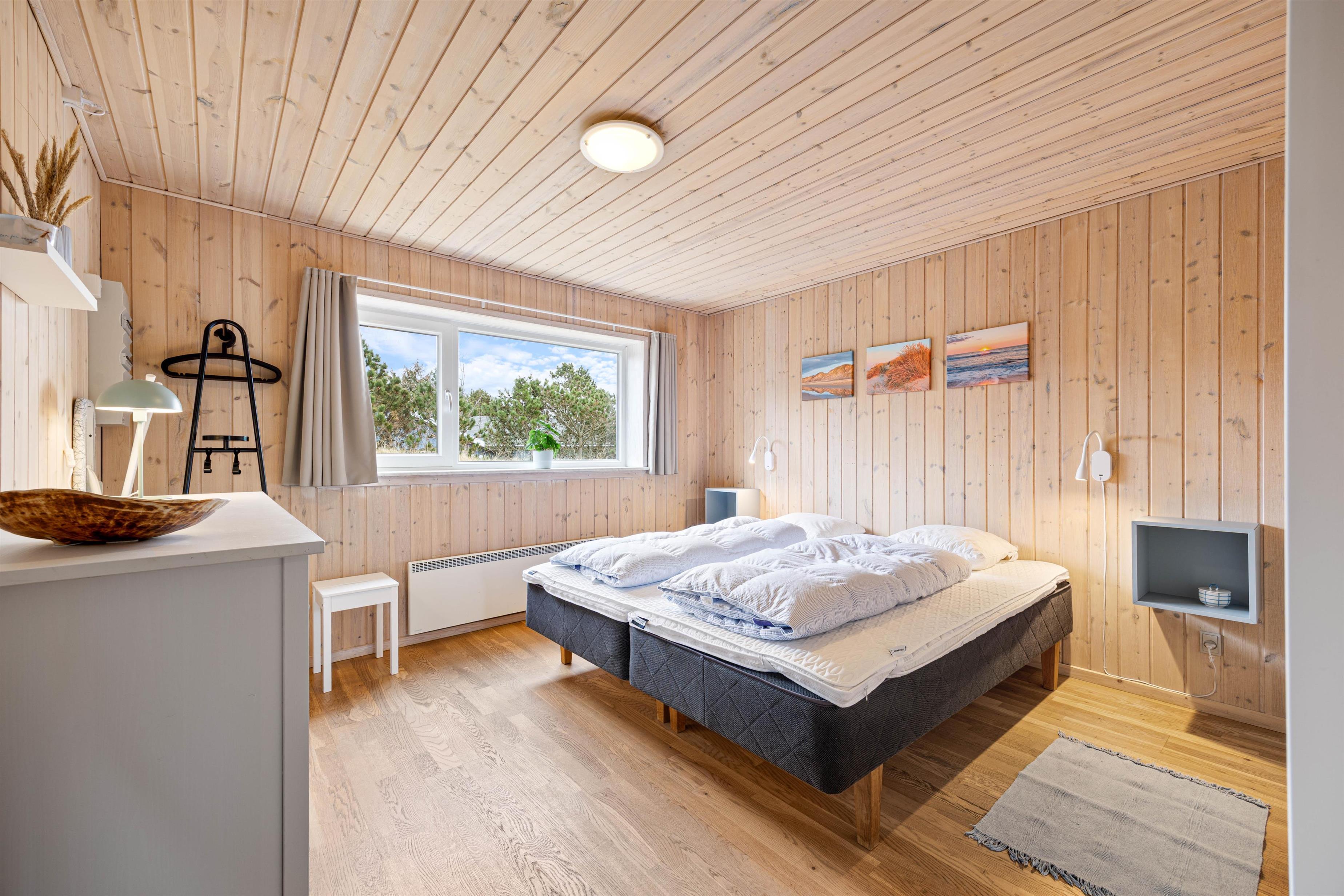 På Bjerregårdsvej 21 venter jer et dejligt sommerhus med plads til 6 gæster. Tag også gerne hundene med - De er velkomne her. Sommerhuset er hyggeligt indrettet med lyse trævægge, komfortable møbler og med højt til loftet, hvilket, sammen med de store vinduer, skaber en luftig fornemmelse og lukker det helt specielle lys ind. En varmepumpe sørger for et behageligt indeklima sammen med den hyggelige brændeovn.