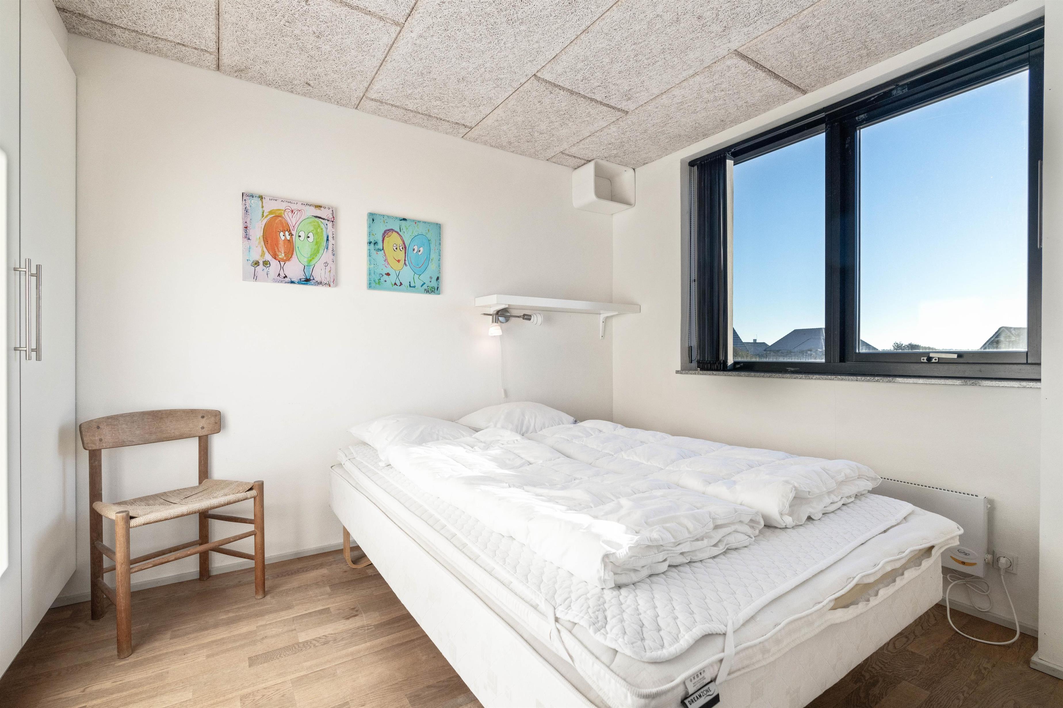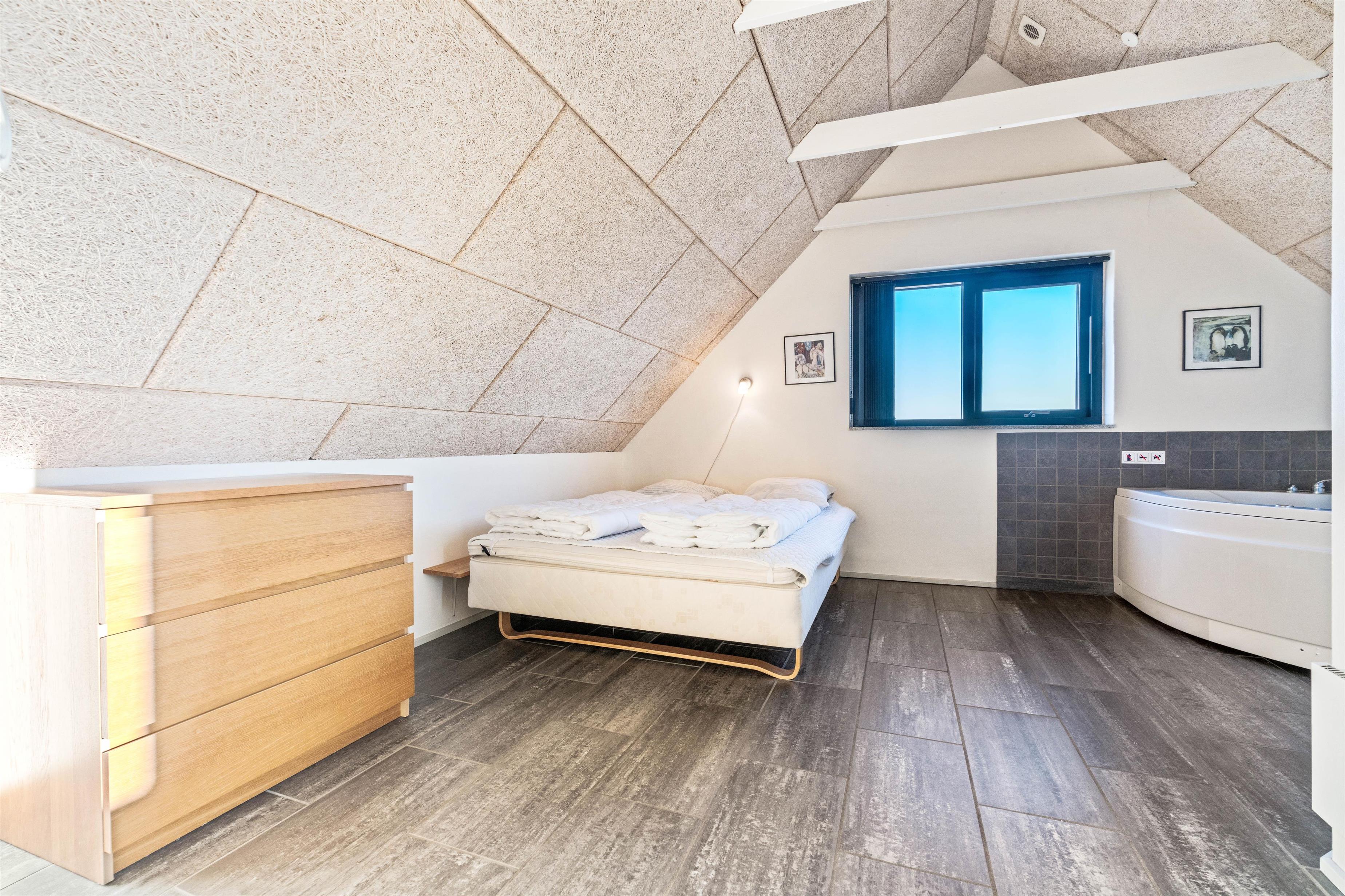 Dette skønne og dejlige sommerhus er bygget i 2008 på en 1.600 m2 stor naturgrund. Huset er velindrettet, smagfuldt møbleret og byder på 6 sovepladser fordelt på 3 soveværelser. Der er 2 soveværelser i stueetagen, begge med trægulve og dobbeltsenge. Soveværelset på 1. sal byder, foruden dobbeltsengen, på en hjørnespa, flisegulv med gulvvarme samt adgang via matterede glasdøre til sauna og badeværelse med bruseniche og gulvvarme. Nedenunder er der yderligere et gæstebadeværelse med bruseniche og gulvvarme. For familier med småbørn er der et gitter, der kan sættes for trappen.
