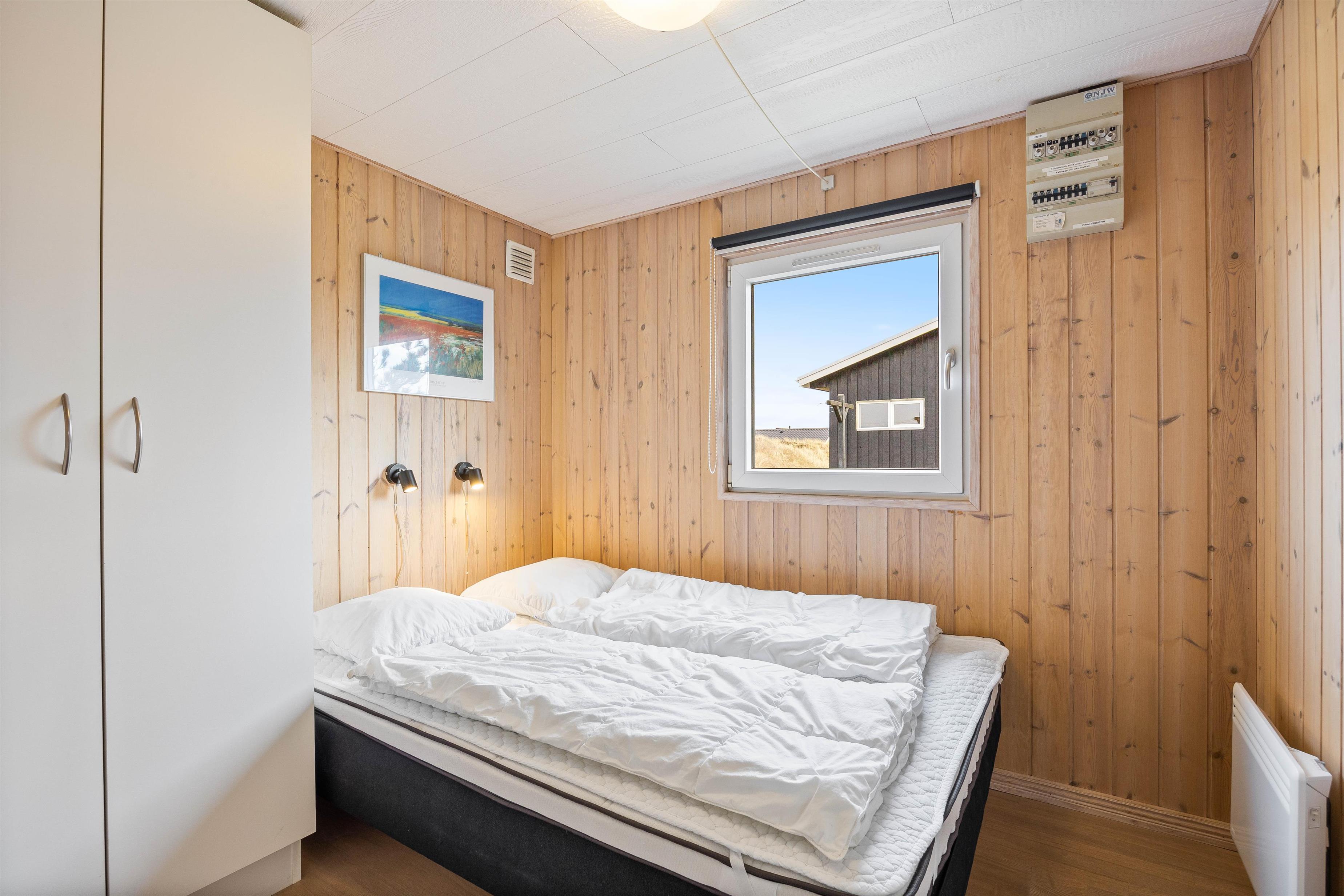 Sommerhuset i Bjerregård byder på en rummelig oplevelse med plads til hele 8 personer. Sommerhuset har 4 soveværelser: 2 med dobbeltsenge på 140×200 cm og 2 med to enkeltsenge (90×200 cm) sat sammen som dobbeltsenge. Det giver rig mulighed for en komfortabel nattesøvn efter en dag fyldt med oplevelser.
