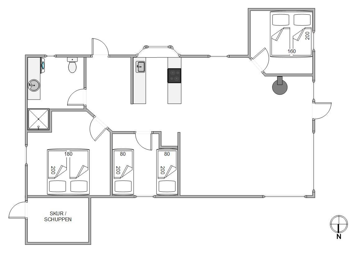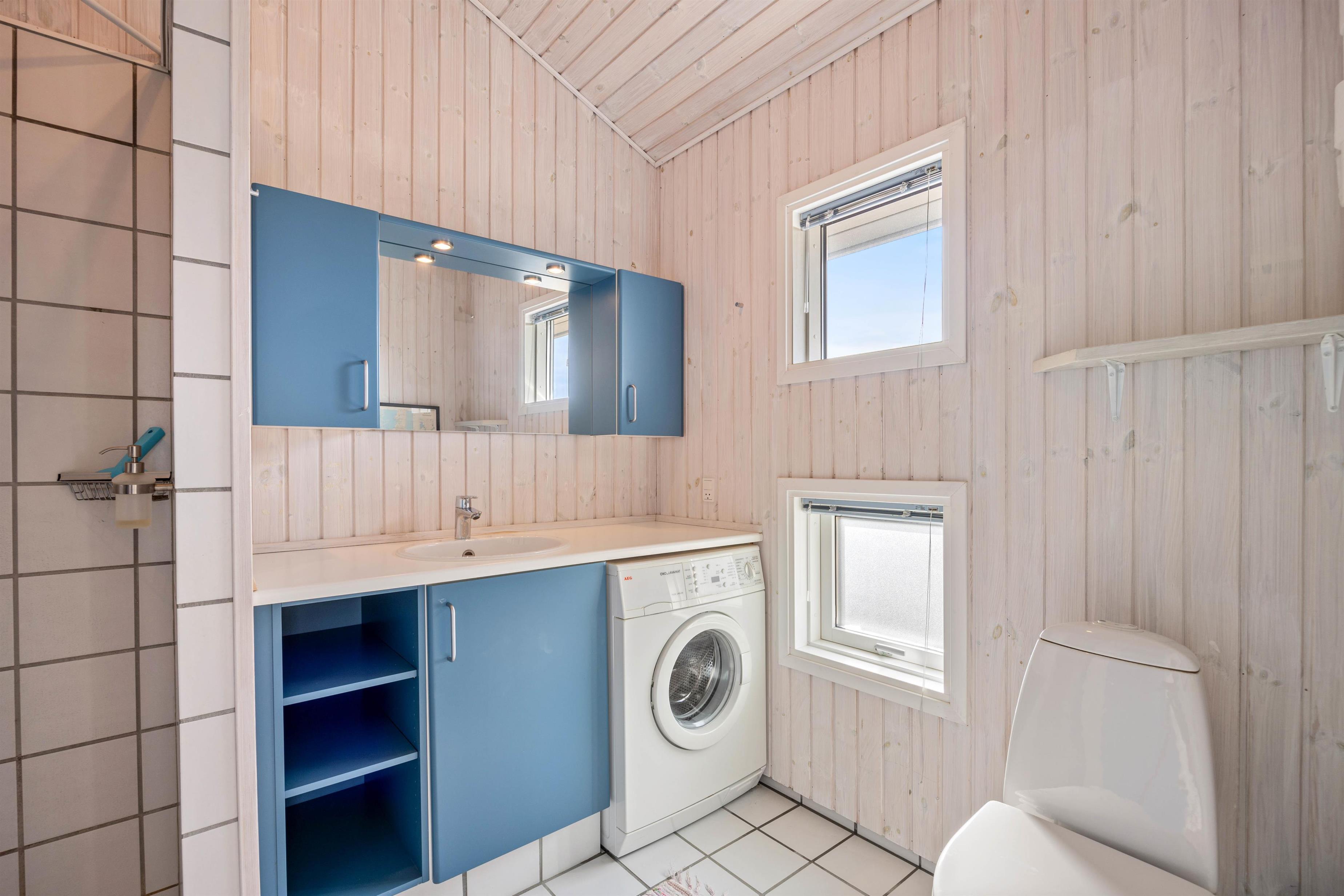 Det praktisk udstyrede badeværelse med dagslys har en bruser, og en vaskemaskine står også til din rådighed. Der er gulvvarme, så du ikke får kolde fødder, når du børster tænder. Om aftenen venter 3 hyggelige og gode soveværelser med 2 dobbeltsenge og 2 enkeltsenge, så I kan fordele pladserne efter godtbefindende.