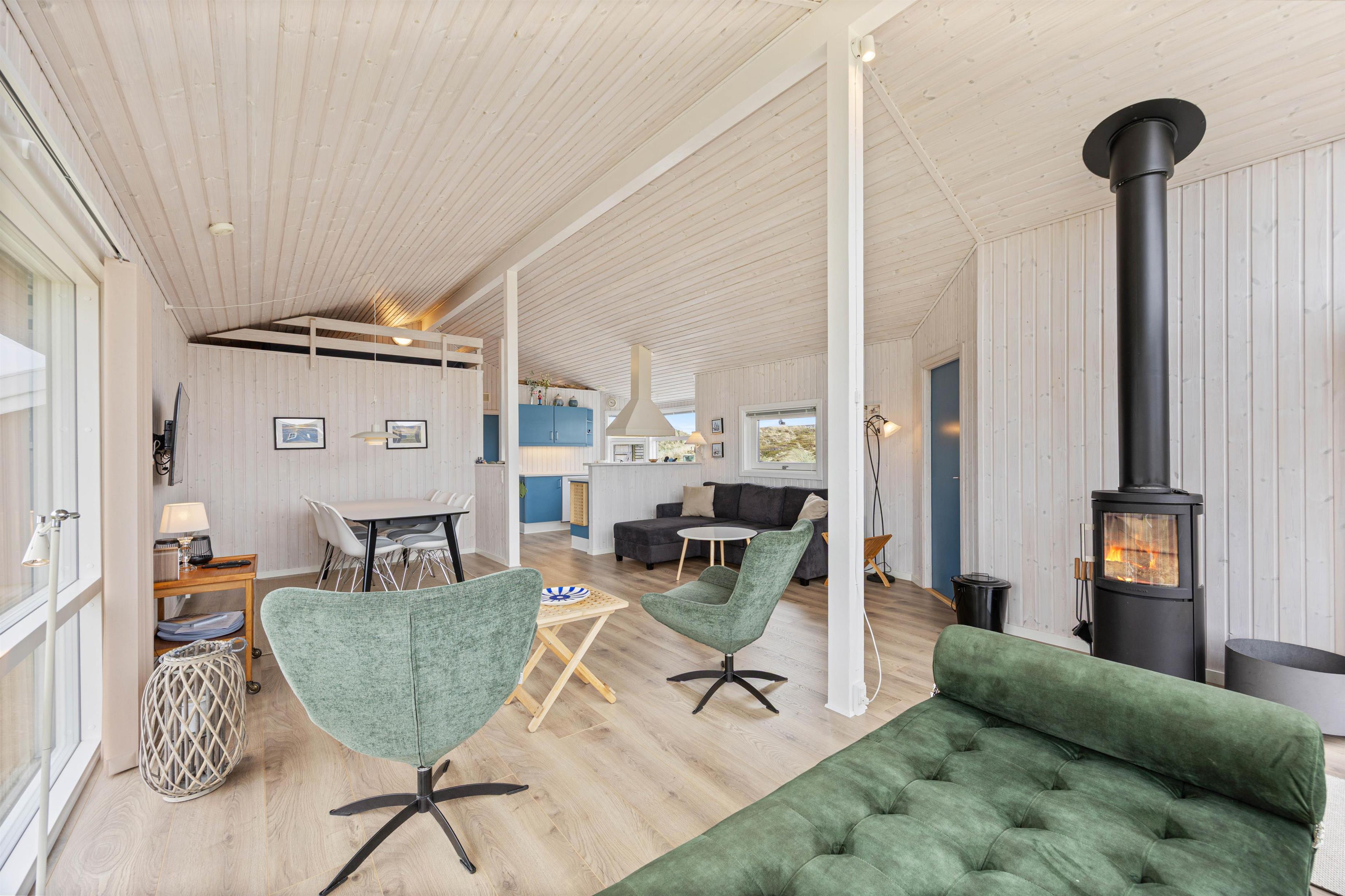 Der er plads til op til 6 gæster i det lyse og venlige feriehus på 80 m². Hunden er også velkommen til at tage med, og sammen kan I se frem til lange gåture på Vesterhavsstranden, som I allerede kommer til efter blot 500 meter.