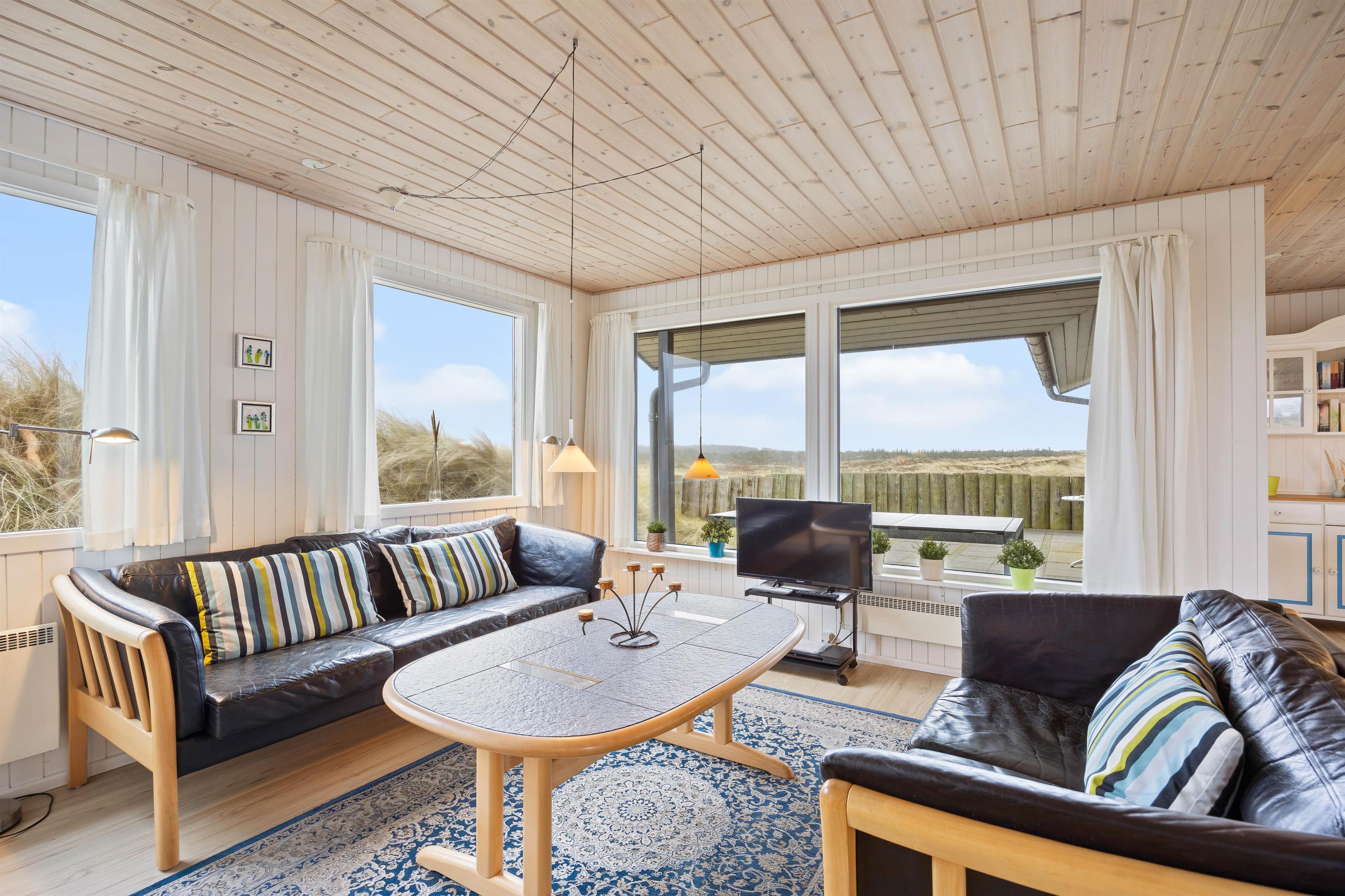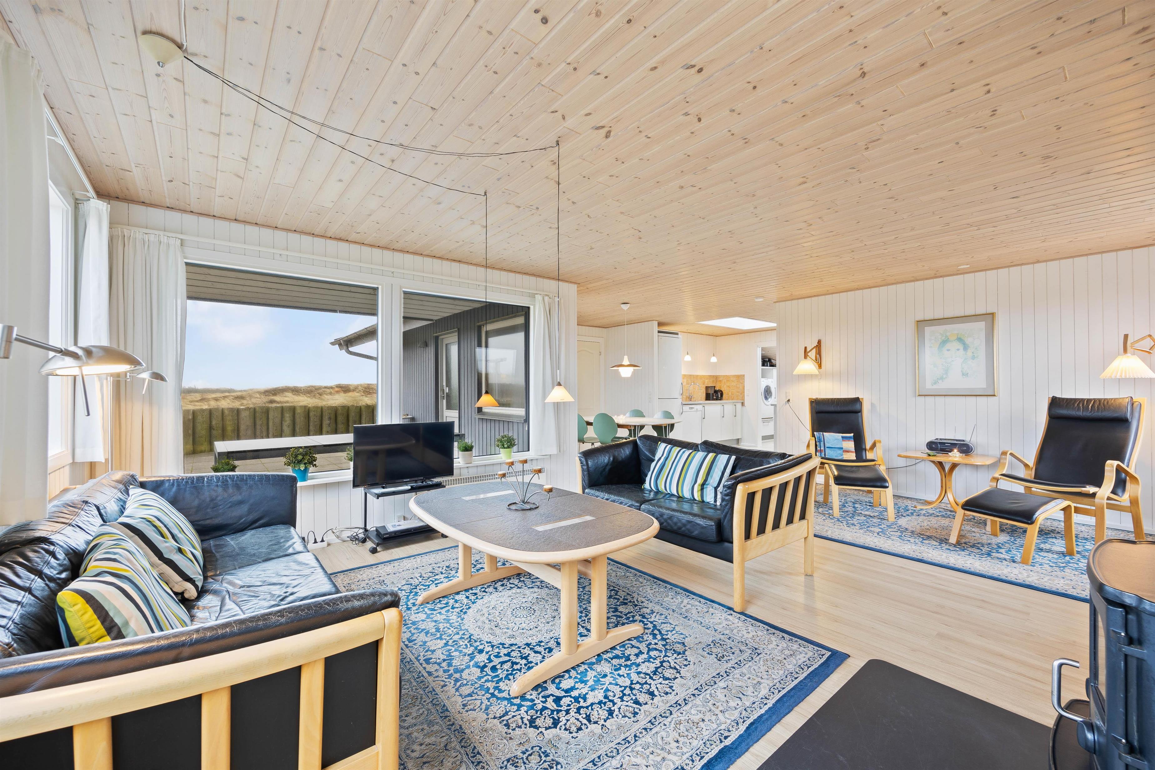 I den lyse stue kan du slappe af foran brændeovnen og nyde varmen i ægte ferieatmosfære. Saunaen kan tilbyde ren afslapning efter en lang gåtur ved stranden.