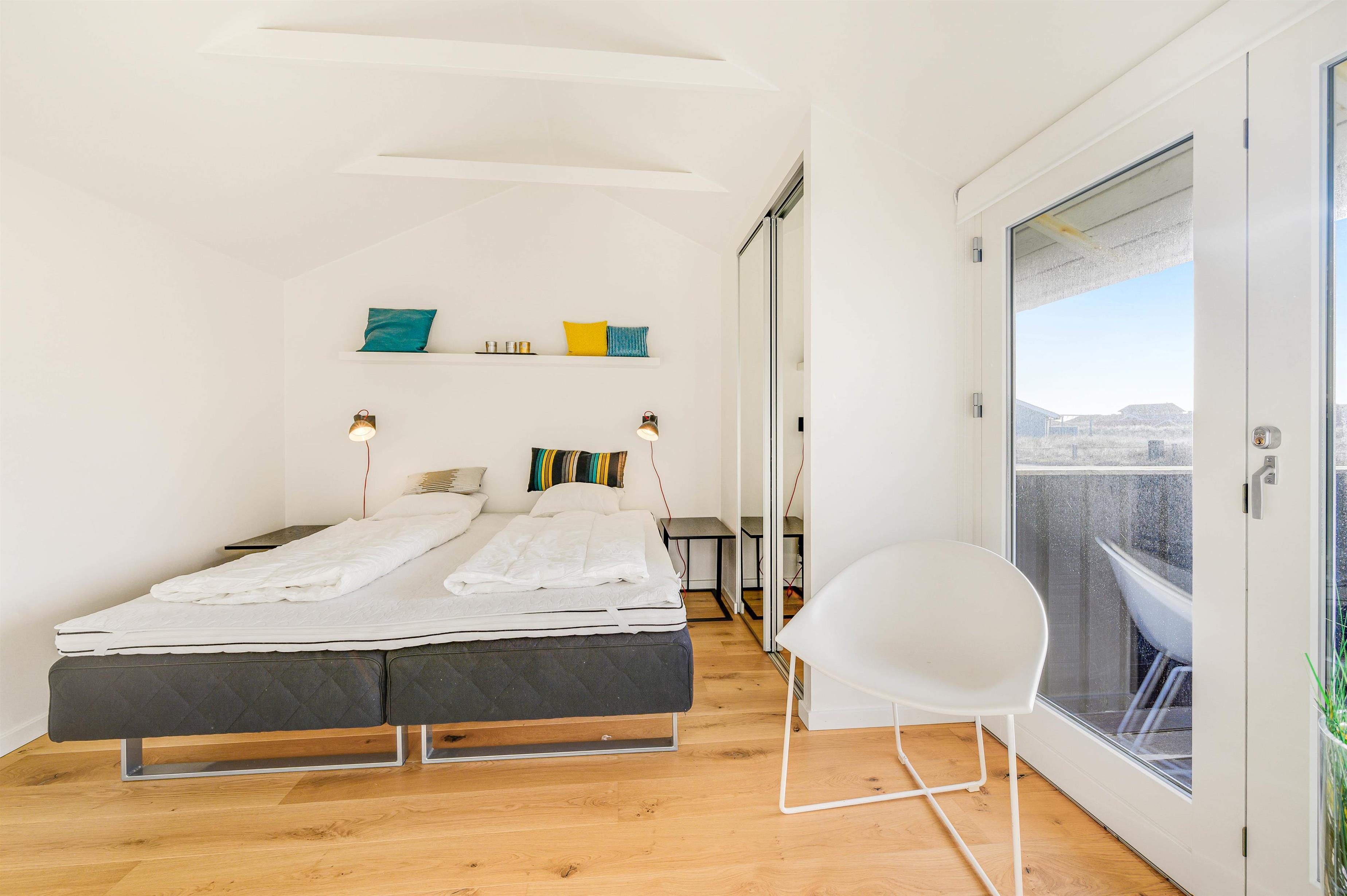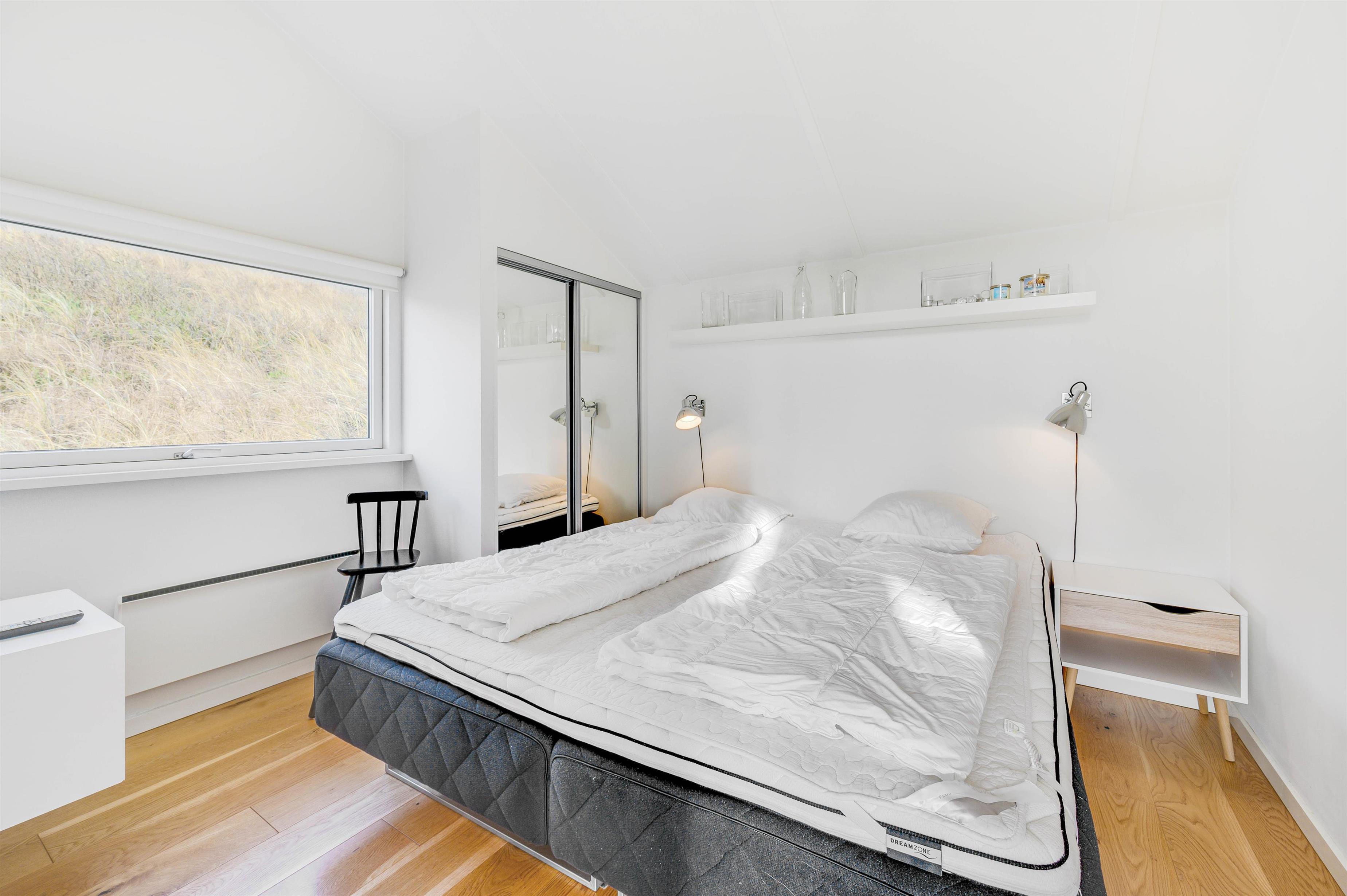 Sommerhuset har 5 soveværelser, som alle er indrettet med komfortable dobbeltsenge. I feriehusets anneks finder I 2 af værelserne, mens de resterende ligger i hovedhuset. I hver afdeling finder i et badeværelse, som begge er udstyret med gulvvarme. Badeværelset i hovedhuset har indgang til saunaen, som indbyder til afslapning og velvære efter en god gåtur ved stranden på en blæsende efterårsdag.
