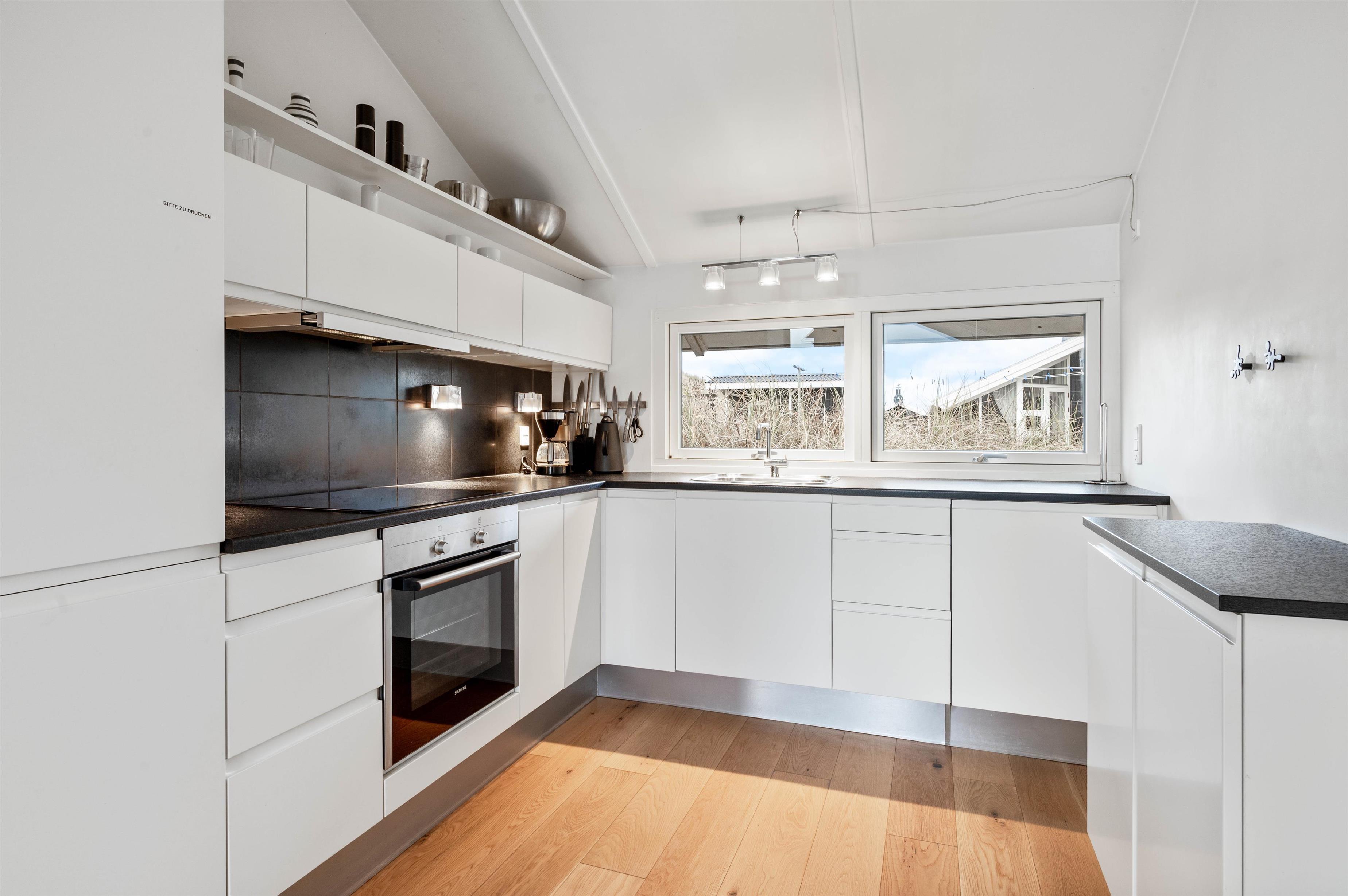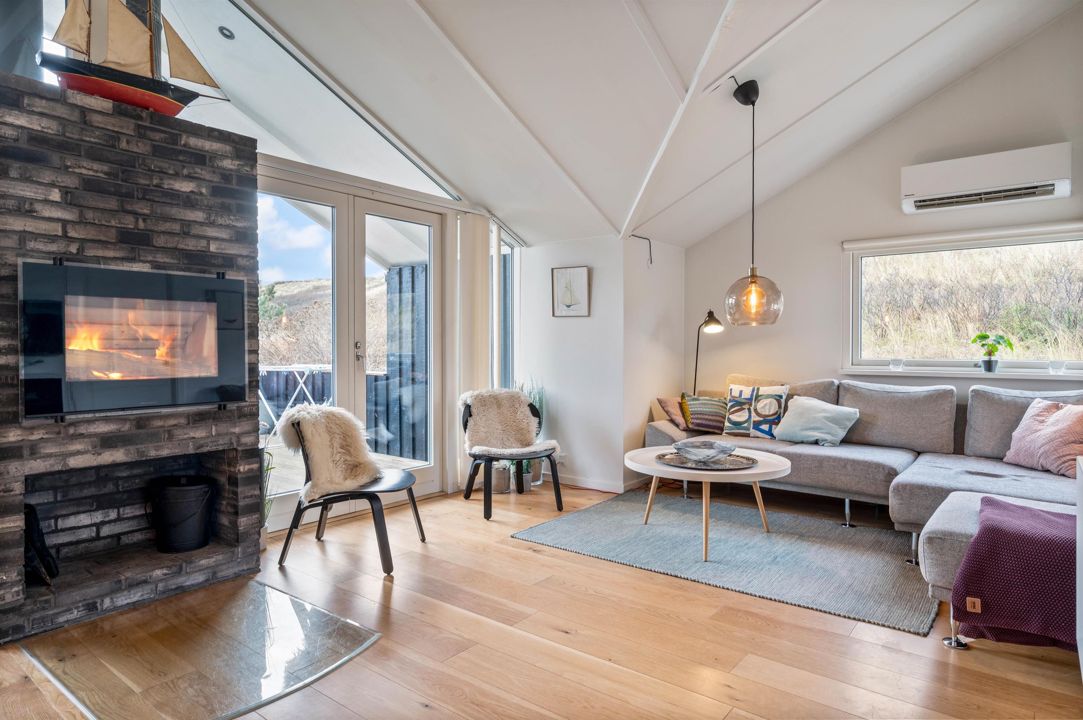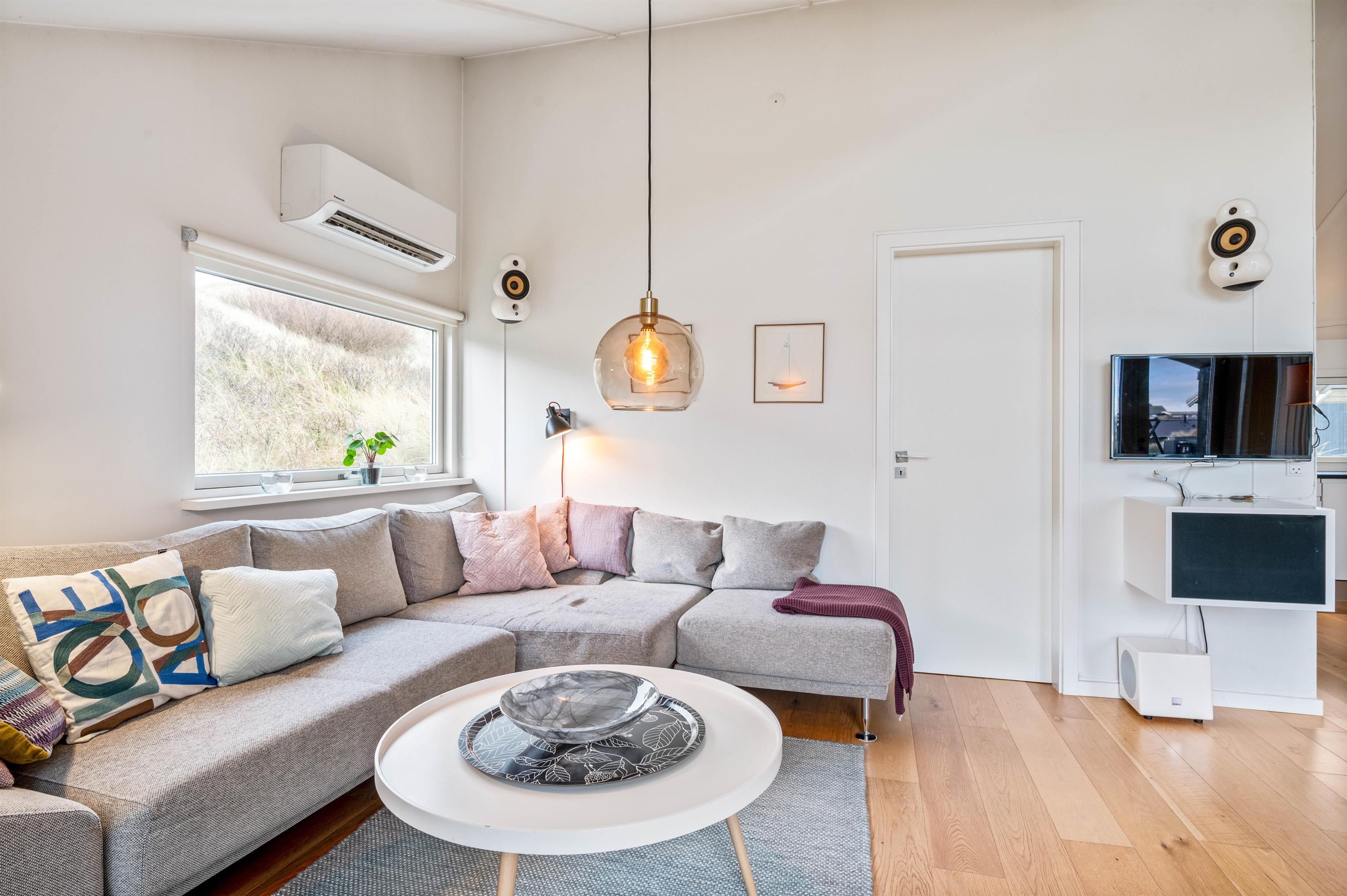 I sommerhuset på Julianevej 95 vil I hurtigt føle jer velkomne. Indretningen er moderne, og de store sydvendte vinduespartier i alrummet skaber en lys og indbydende atmosfære.