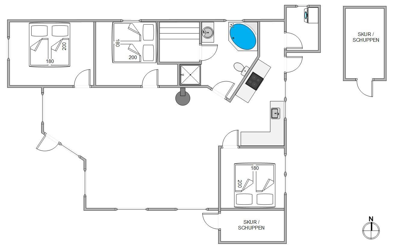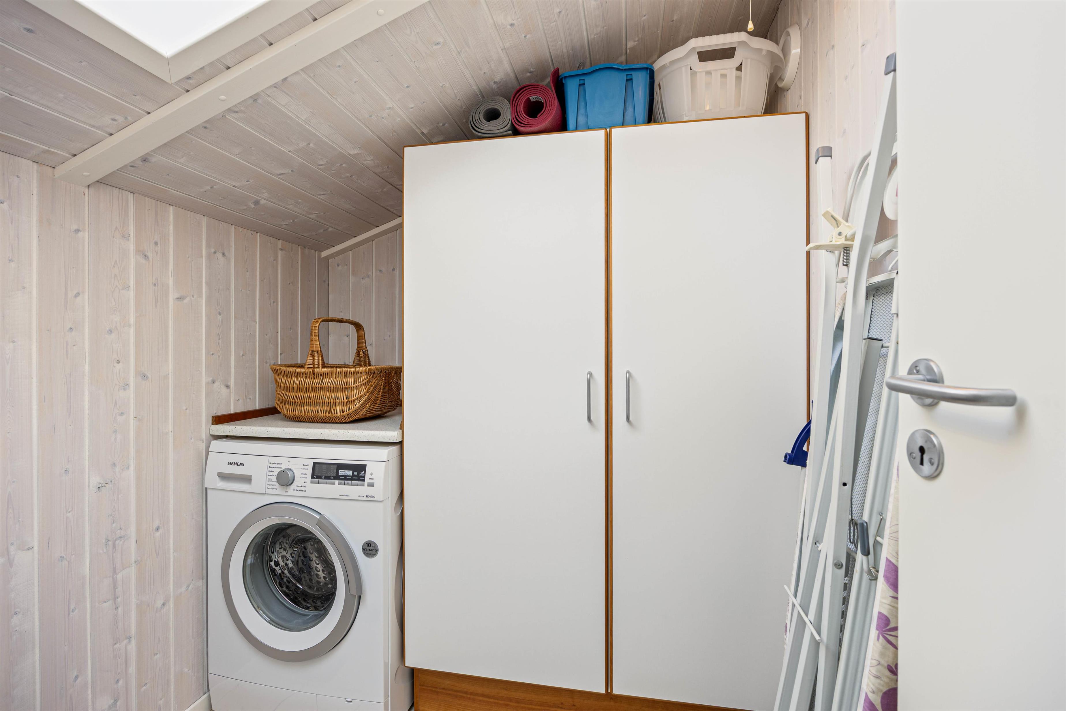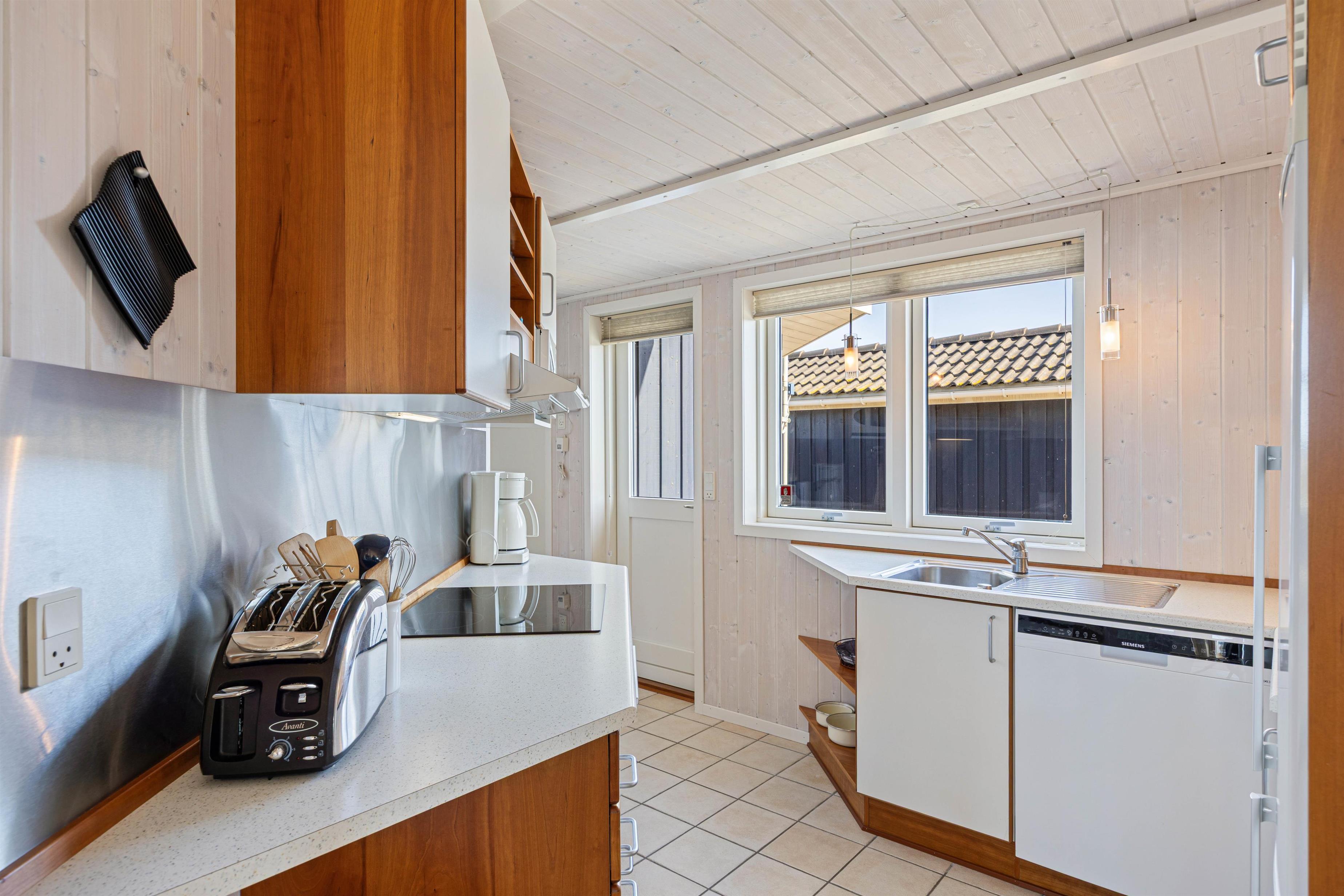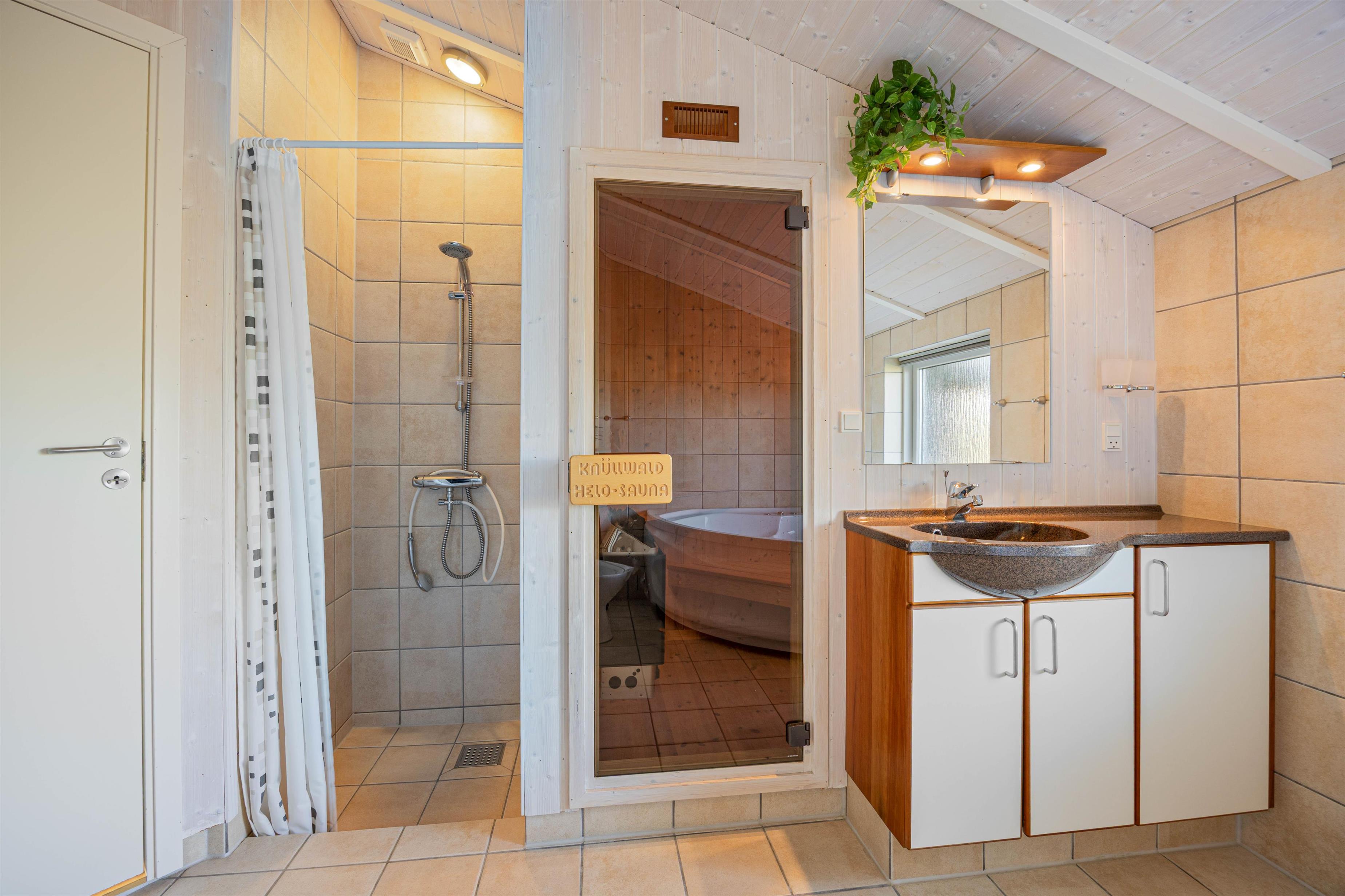 En energibesparende varmepumpe sørger for behagelig varme i sommerhuset. Det fuldt udstyrede køkken i åbent plan byder på fælles madlavning og har moderne faciliteter som opvaskemaskine, mikroovn og køle-fryseskab. Efter en spændende dag i den friske havluft kan du slappe af i saunaen og spaen, mens vaskemaskinen sørger for rent tøj til næste dag.