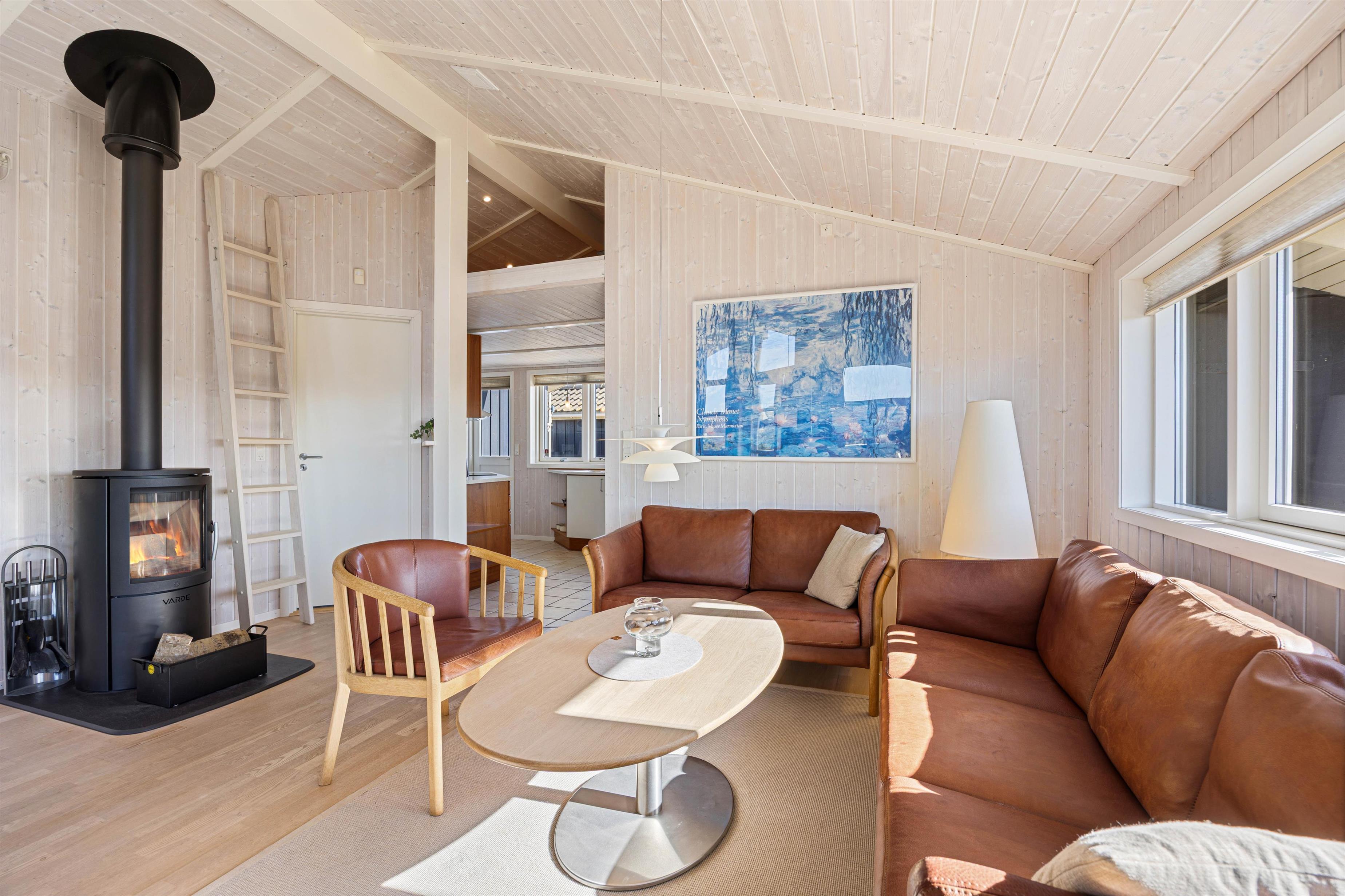 Indenfor venter dig et indbydende opholdsrum med tv og brændeovn, som giver den perfekte feriestemning til hyggelige aftener. Sæt dig godt til rette i sofaen, eller spil et kortspil for at runde dagen af, mens brændet knitrer i baggrunden.