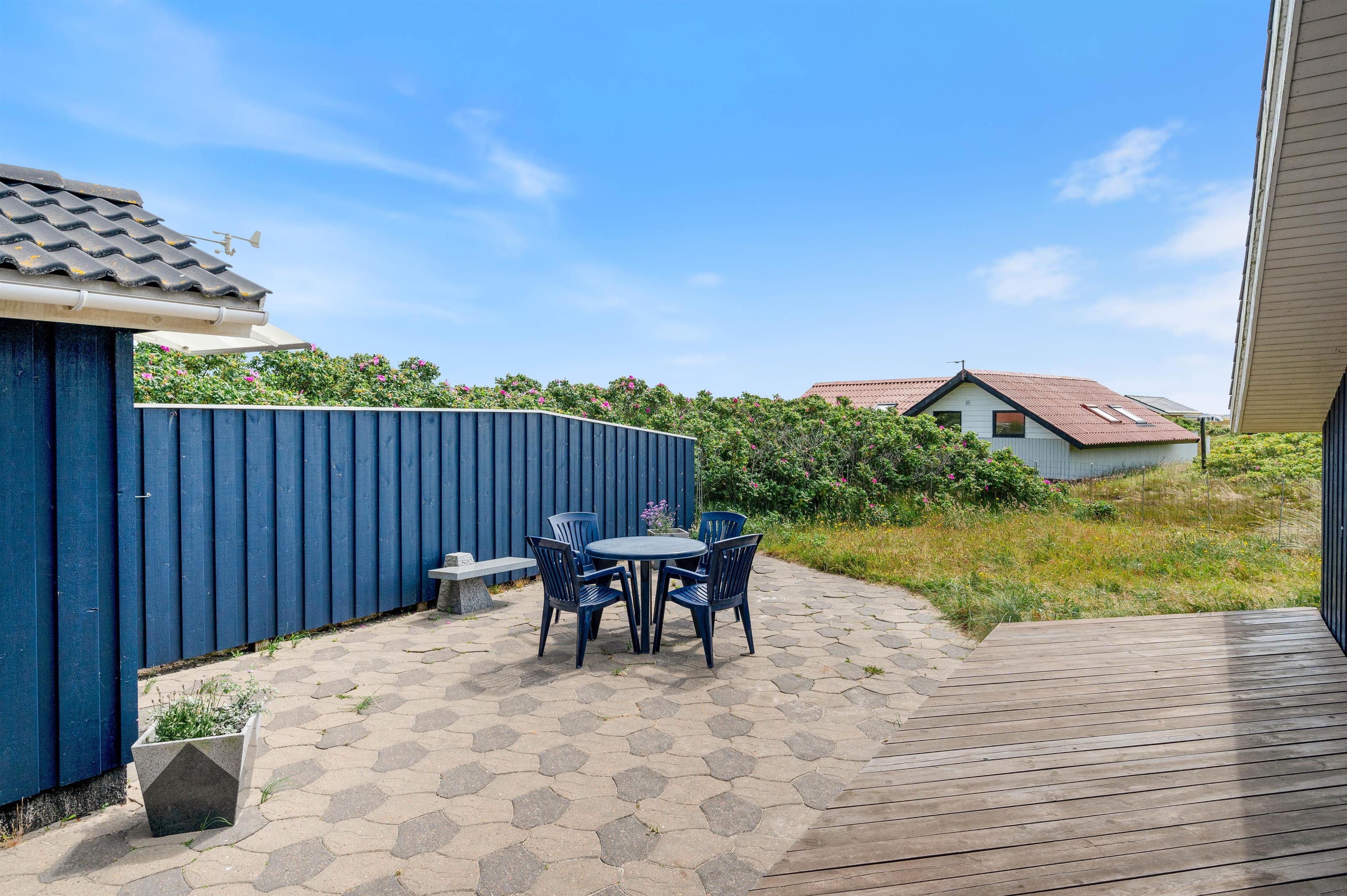 Sommerhusets godt 1.300 m2 store naturgrund giver dig masser af muligheder for at slappe af. Nyd solen eller en god bog i de komfortable havemøbler og liggestole. Til fælles grillaftener er der en grill og en delvist overdækket terrasse samt en afskærmet terrasse - ideelt til at runde de lange sommeraftener af i en hyggelig atmosfære. Udforsk det omkringliggende område og opdag en række aktiviteter på Holmsland Klit