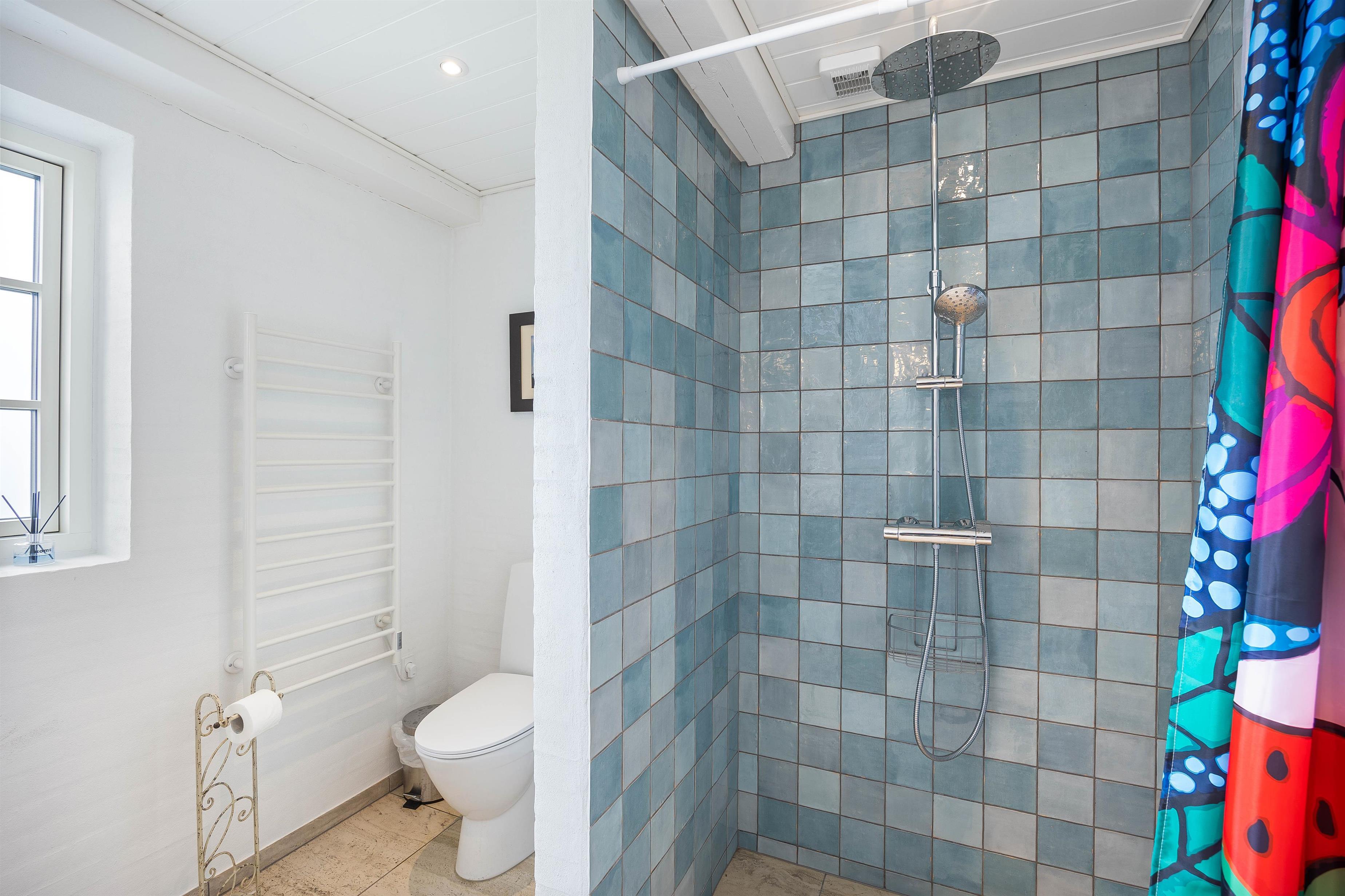 Der er 2 gode badeværelser med gulvvarme i sommerhuset, og på det ene finder I et spabad til afslapning og velvære. Desuden er der både vaskemaskine og tørretumbler i sommerhuset, så I om nødvendigt har mulighed for lidt tøjvask undervejs.