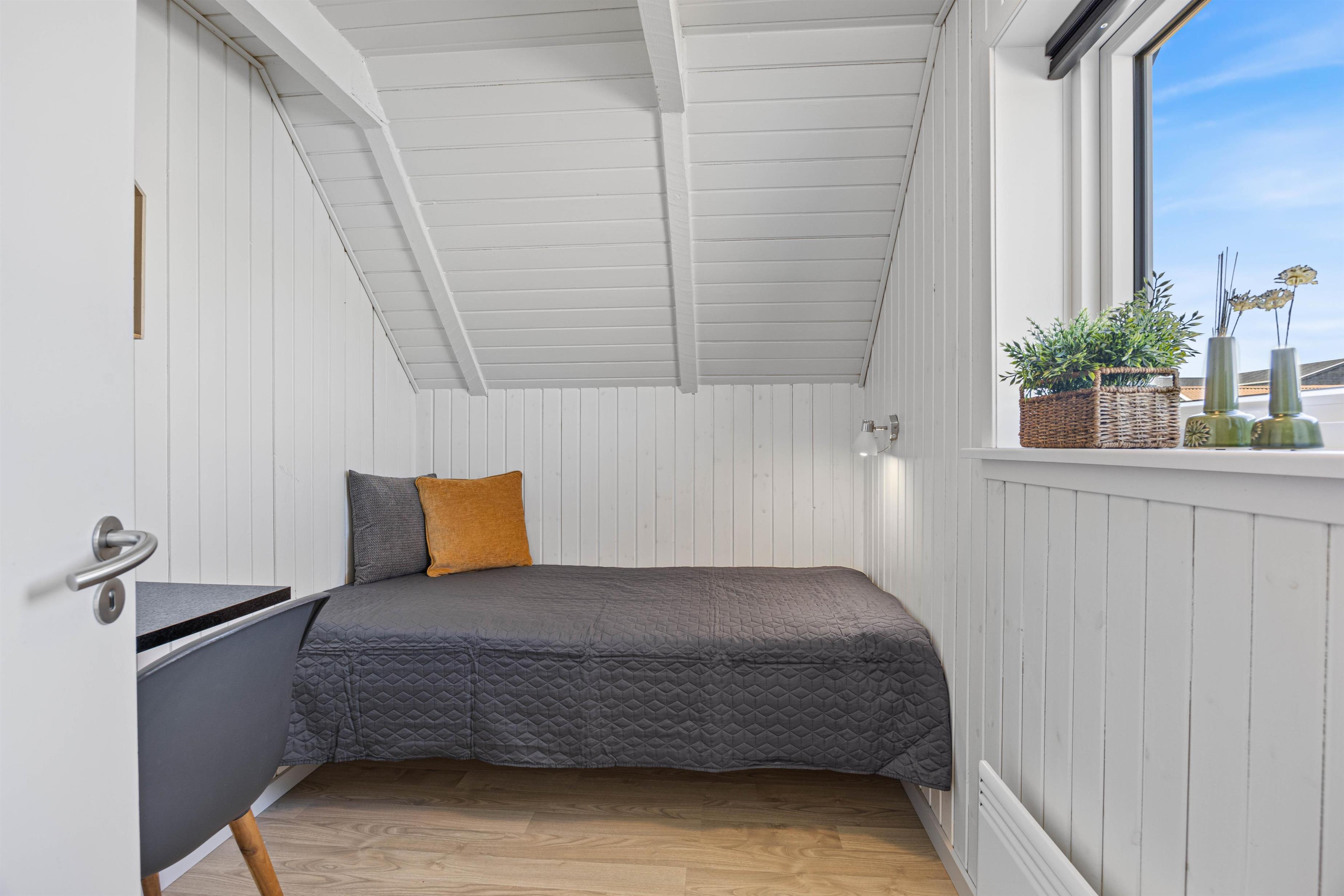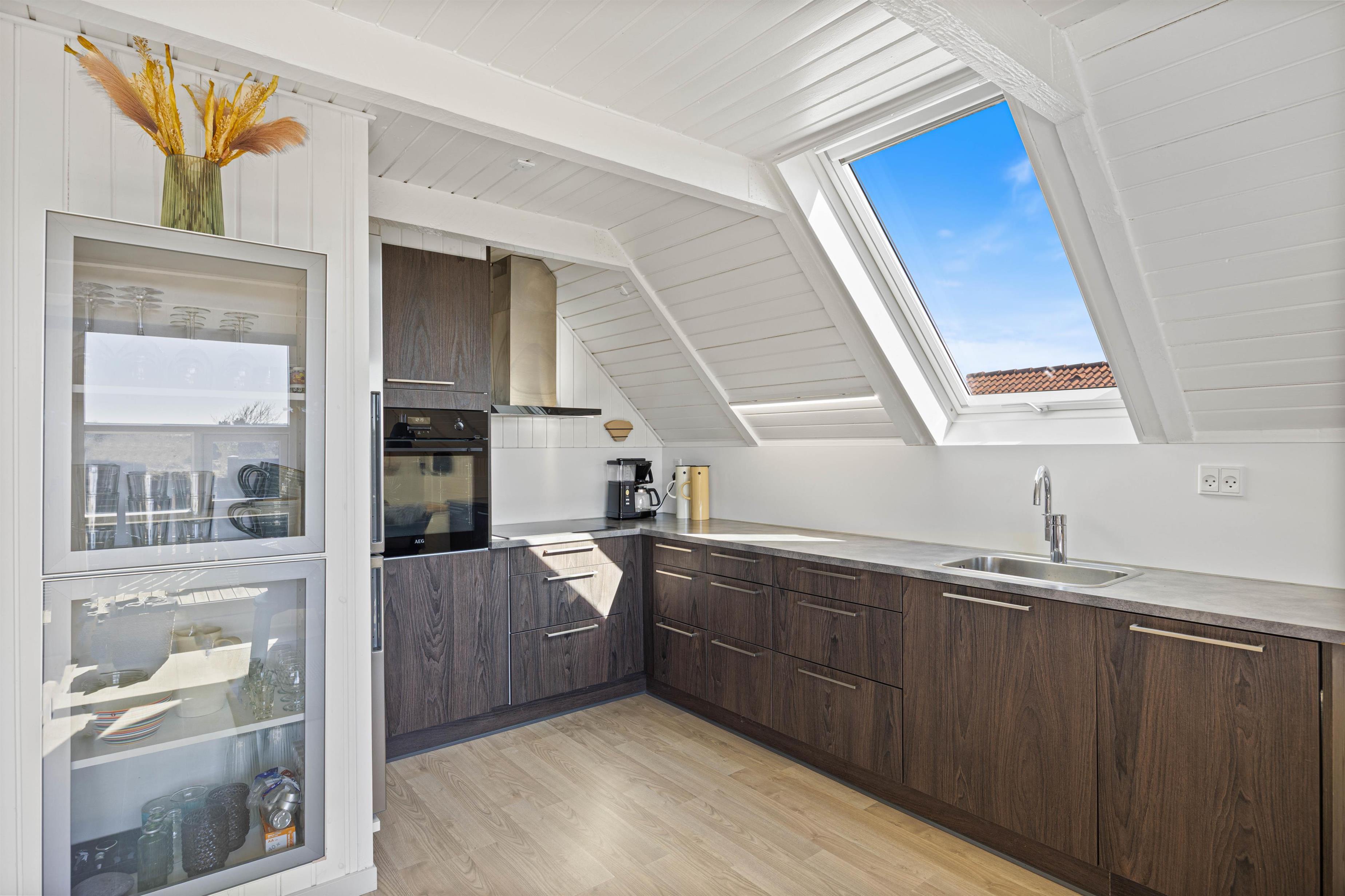 Det moderne køkken indeholder alt, hvad I behøver for at forkæle hinanden med lækre hjemmelavede måltider, herunder induktionskomfur, opvaskemaskine og en 60 l separat fryser. Badeværelset har gulvvarme, og de 4 komfortable sovepladser fordeler sig med 1 dobbeltseng i et værelse, og 2 værelser med hver en enkeltseng. Læg mærke til at den friske vesterhavsluft gør noget godt for nattesøvnen.