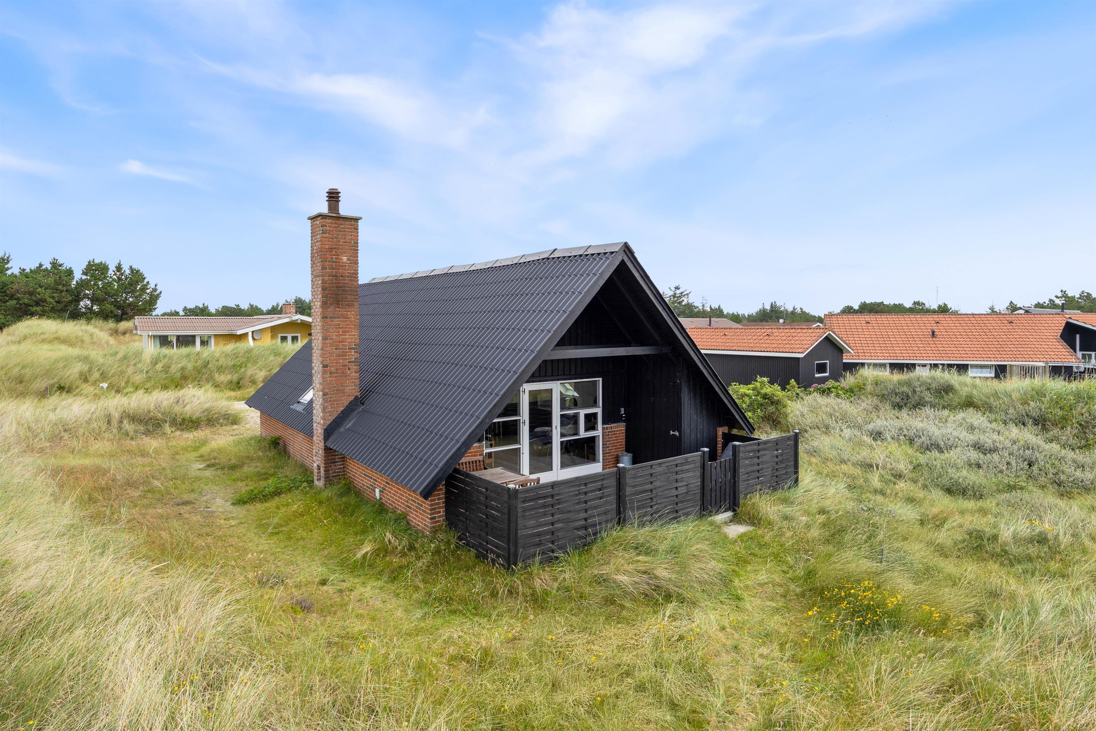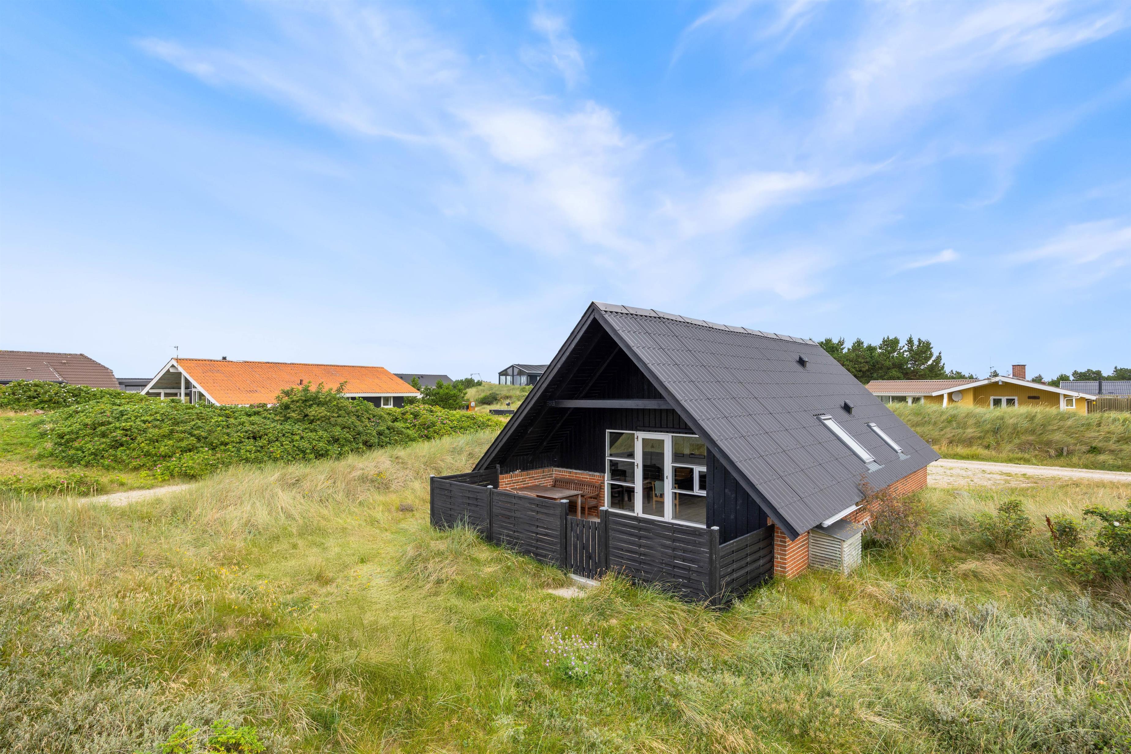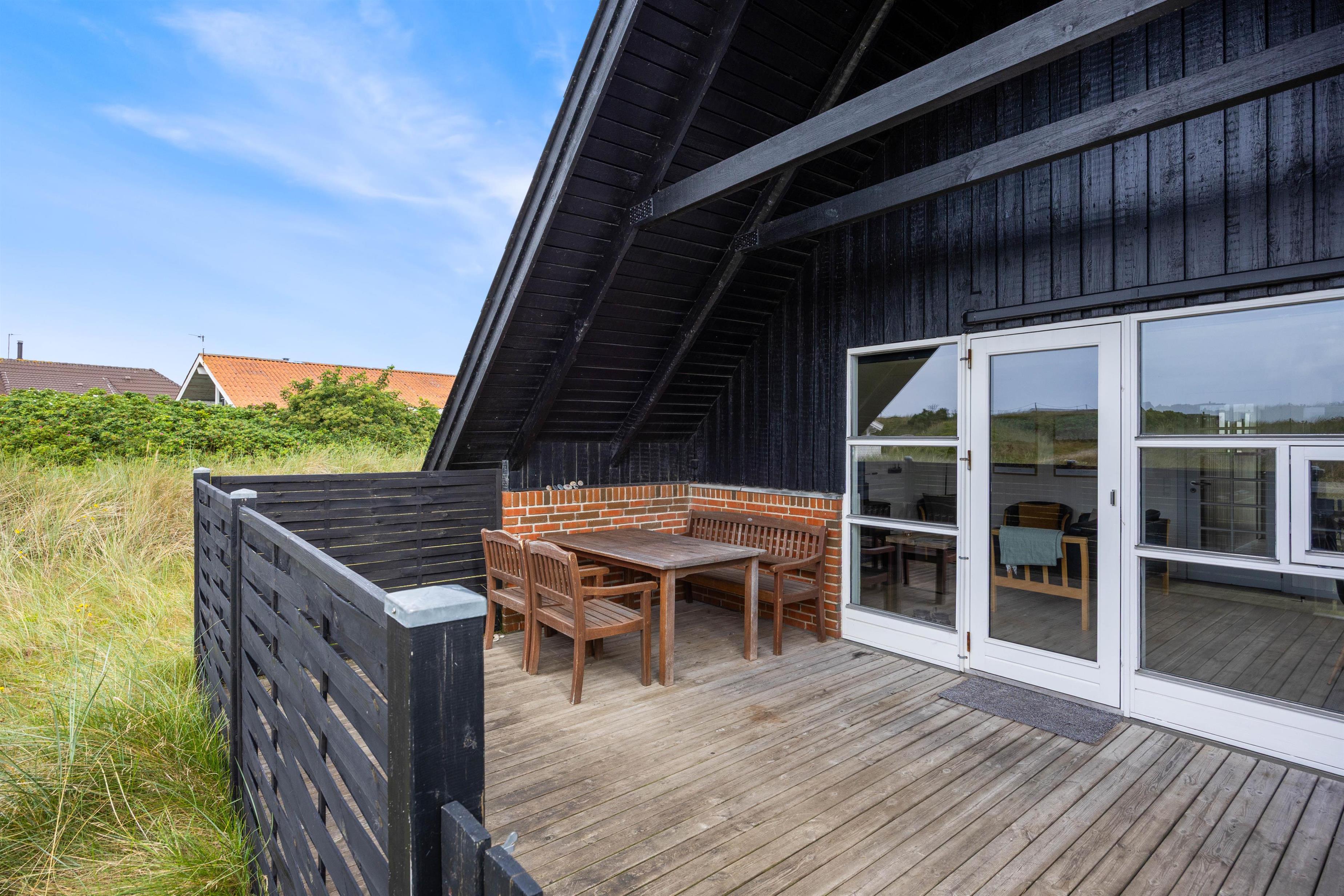 På den lukkede og delvist overdækkede terrasse kan I slikke solskin i de komfortable liggestole eller nyde et lækkert grillmåltid i havemøblerne. Tænd op i grillen, når skyggerne bliver lange, og nyd aftenen falde på. Efter måltidet kan I nå en tur til stranden og opleve solnedgangen i Vesterhavet.