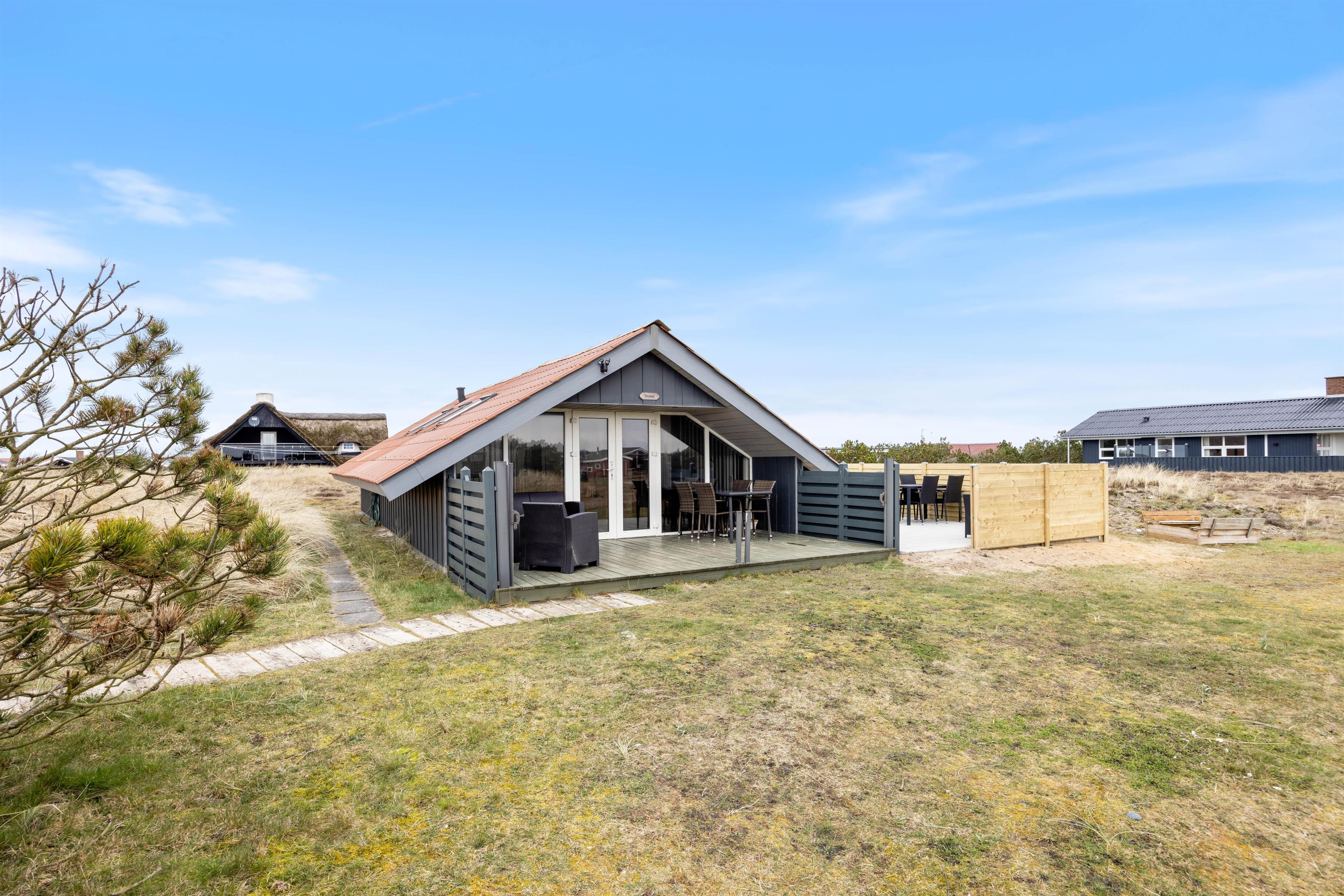 På Rauhesvej 42, tæt ved hav og fjord og midt i det populære feriehusområde Bjerregård, ligger dette hyggelige feriehus - på en dejlig stor naturgrund – og byder jer velkommen til en dejlig familieferie i den vestjyske natur. Og her må I gerne tage familiens firbenede ven med.