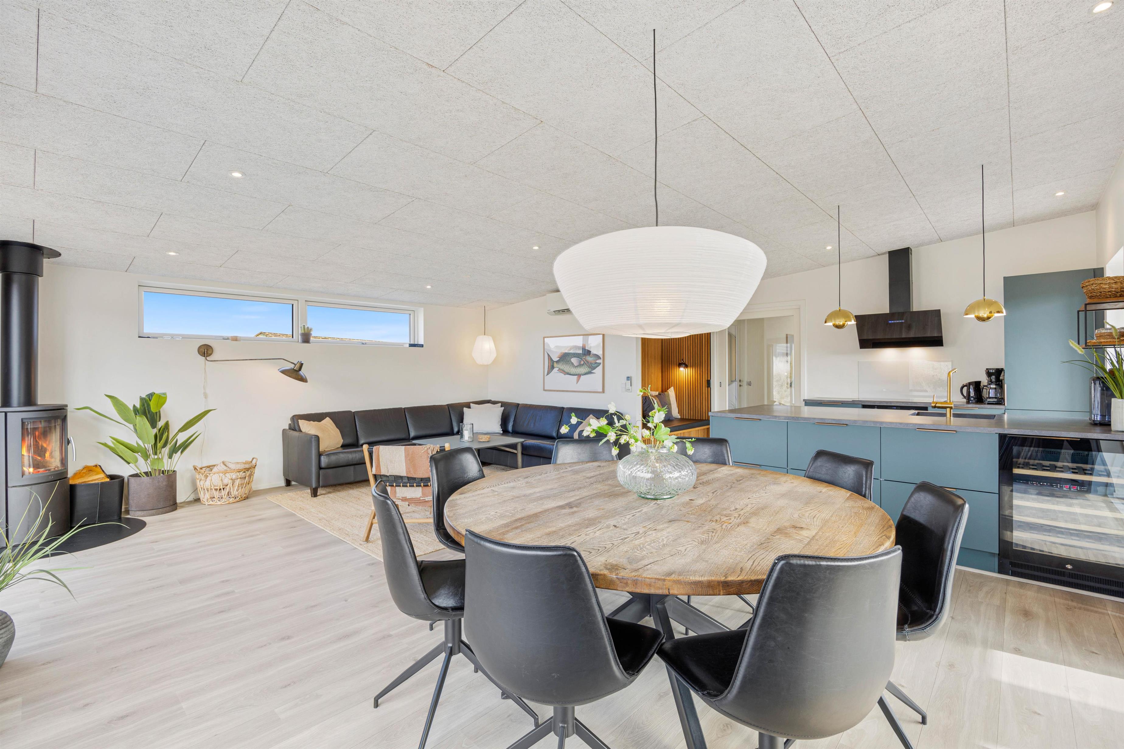 Luksushusets hjerte må tvivl være det store lyse køkkenalrum, hvor det flotte åbne køkken har udsigt over stuen med brændeovnen, som lægger op til mange hyggelige stunder med familie og venner. Det 5+ stjernede sommerhus byder på en række faciliteter, som er med til at skabe en vellykket ferie, her kan bl.a. nævnes vaskemaskine, tørretumbler, opvasker, gasgrill og ikke mindst den energibesparende varmepumpe.