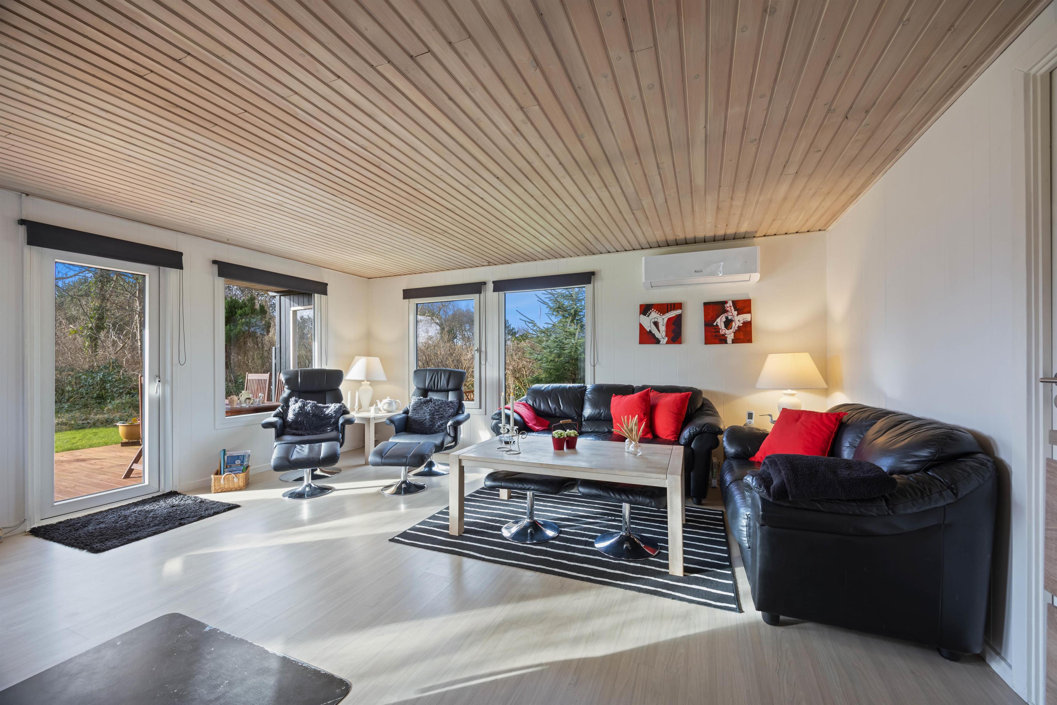 På Sigfred Jensens Vej 73 føler I feriestemningen straks, I træder ind ad døren. Slap af i det åbne opholdsrum, nyd dæmpet musik via Bluetooth-højttaleren, mens ilden knitrer i brændeovnen. Den energibesparende varmepumpe sørger for et behageligt indeklima.