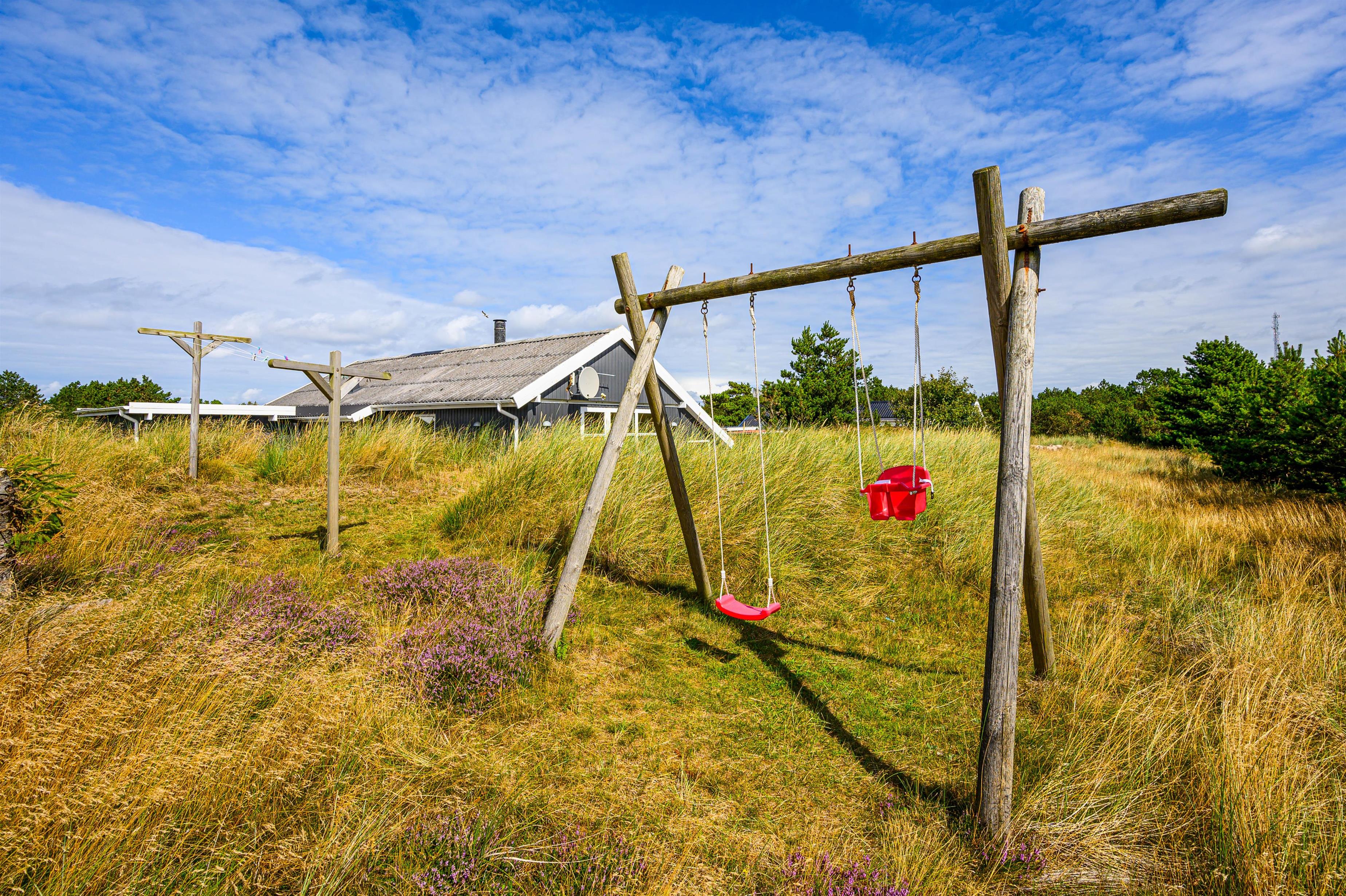 Rundt om sommerhuset findes flere dejlige terrasser, så I kan nyde solen hele dagen. På den lukkede østterrasse kan I starte dagen med en varm kop kaffe, mens vestterrassen er perfekt til hyggelige eftermiddage og uforstyrrede timer for børnene i sandkassen. Til de mindste er der også et lille gyngestativ.