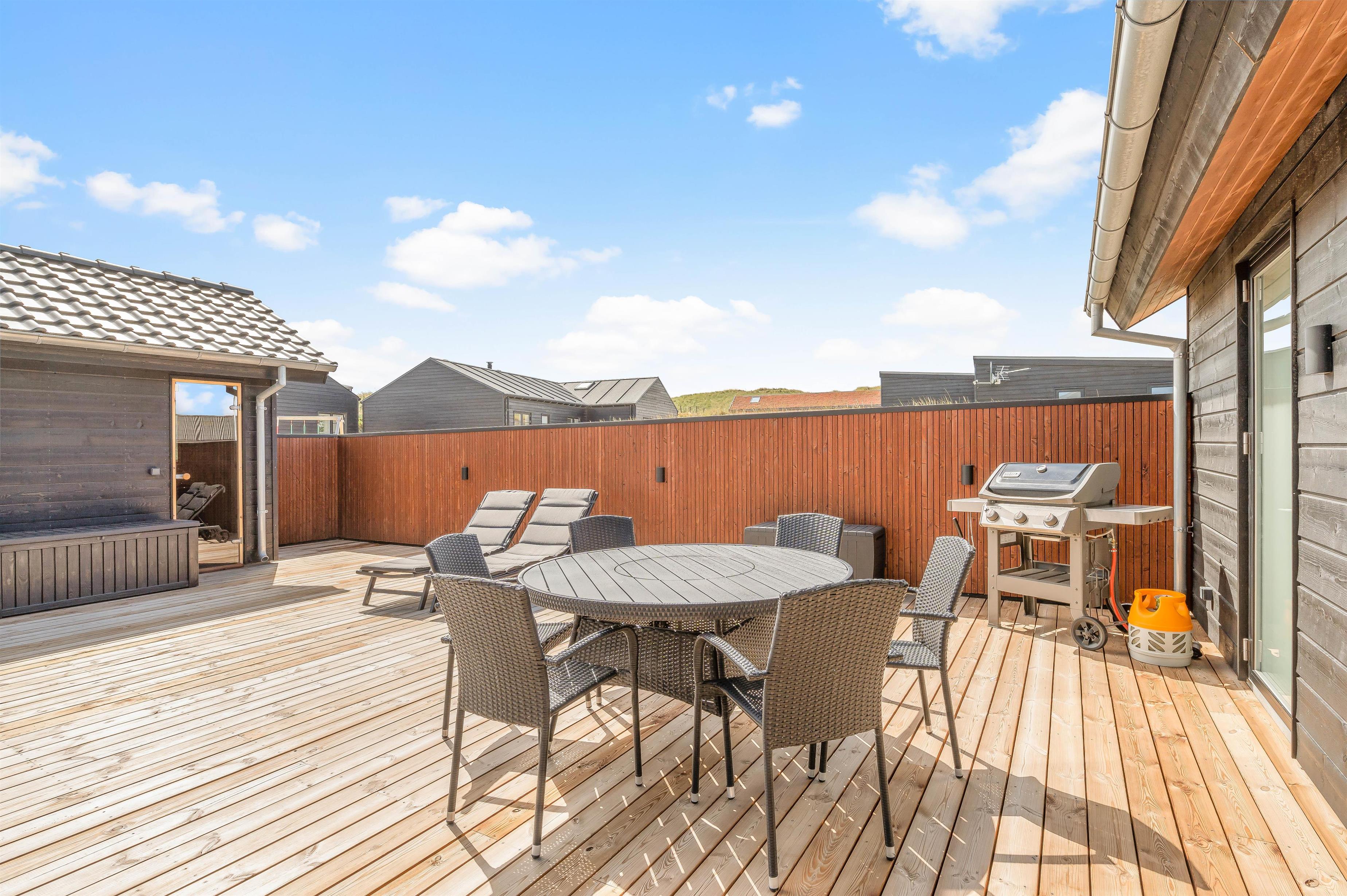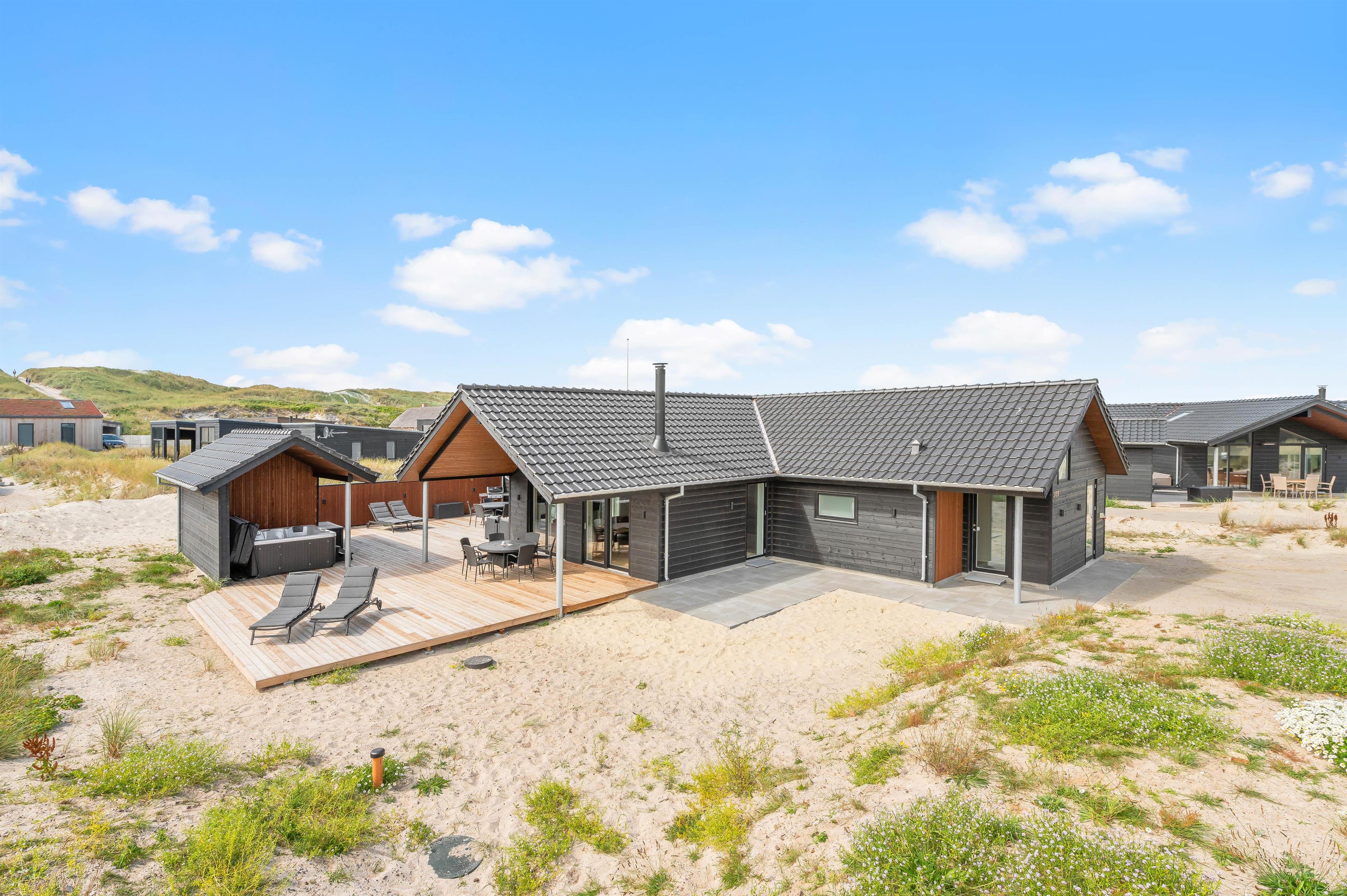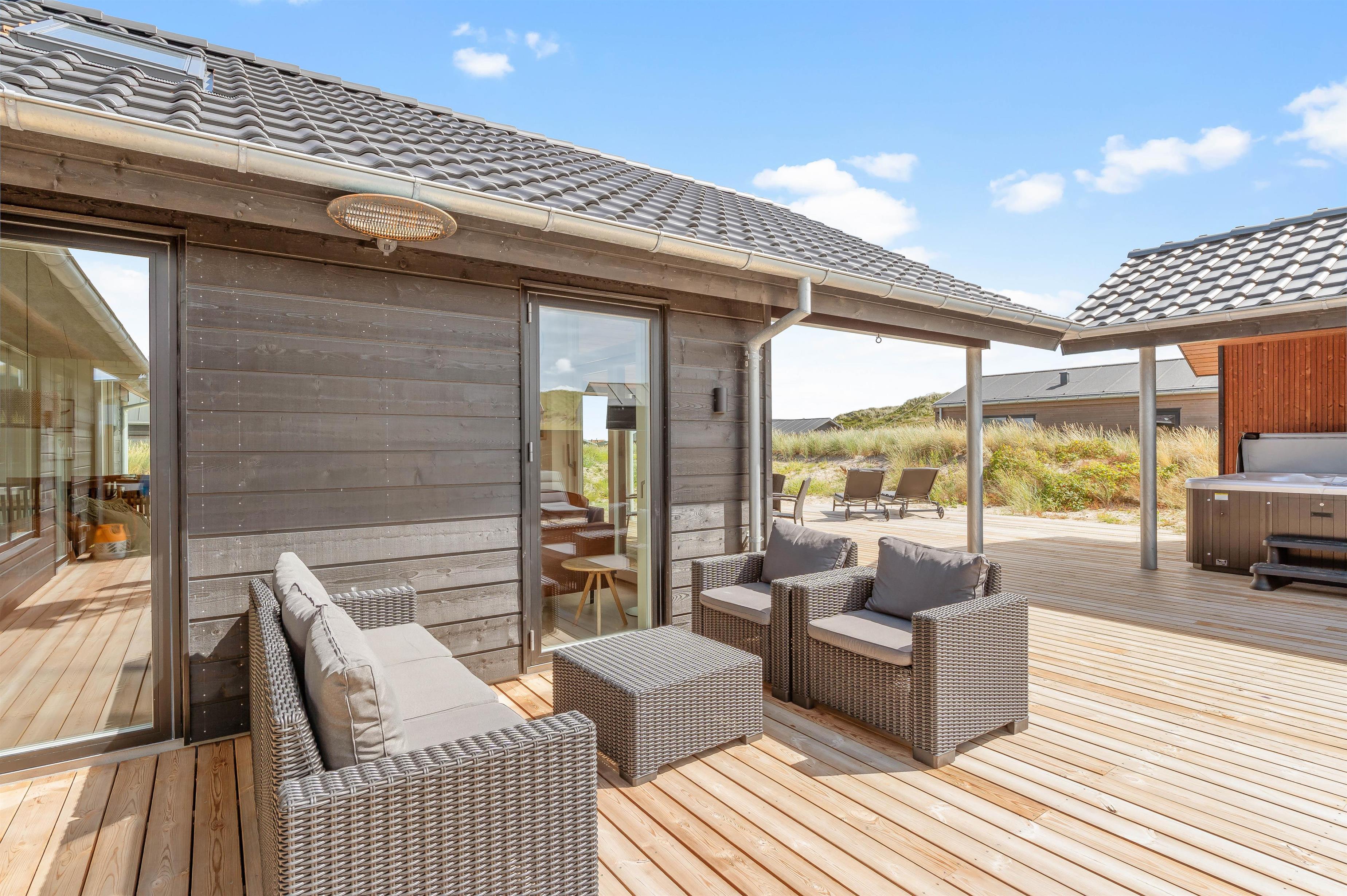 På den 1250 kvadratmeter store naturgrund på Bjerregårdsvej 389 har du god plads til aktiviteter og også til wellness og afslapning. Det udendørs wellnessområde omfatter udesauna, udespa og udendørs bruser, som giver jer en dejlig afkøling i sommerhalvåret. Her kan du virkelig lade dig forkæle. Hør lyden af ??Vesterhavet kun 200 meter væk, imens du slapper af i spaen og måske nyder et godt glas vin. Udebruseren kan benyttes fra april til november.