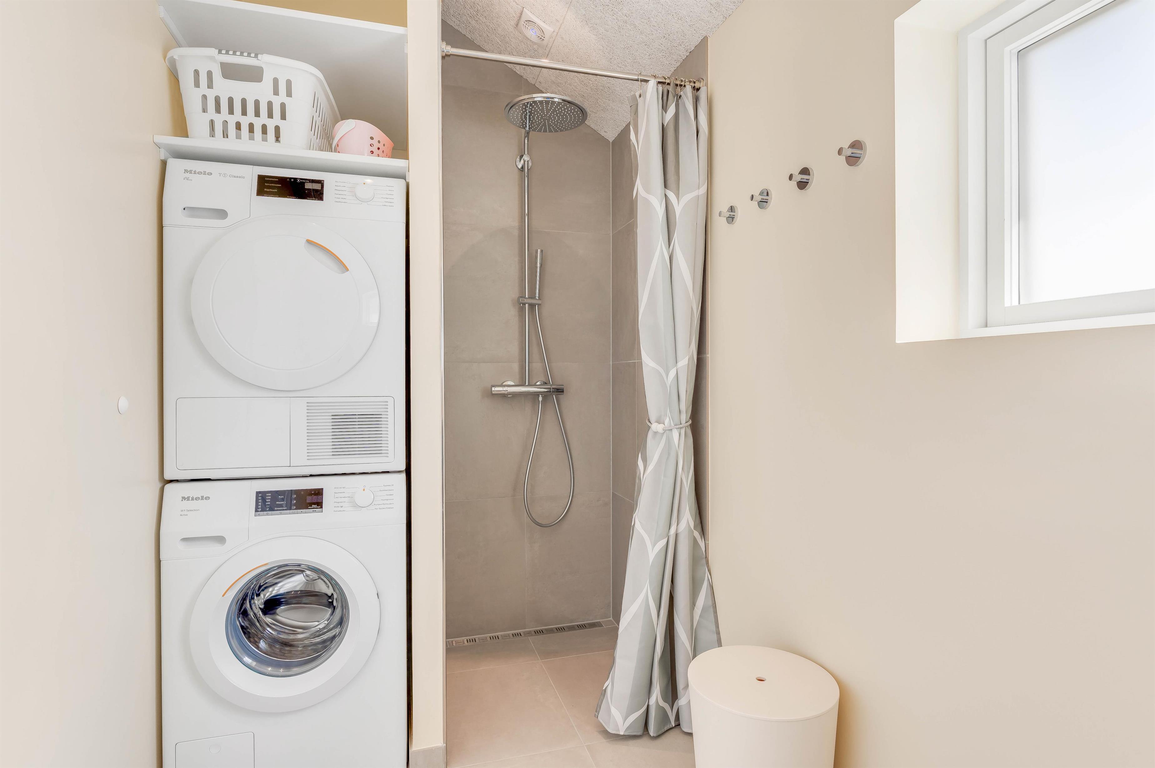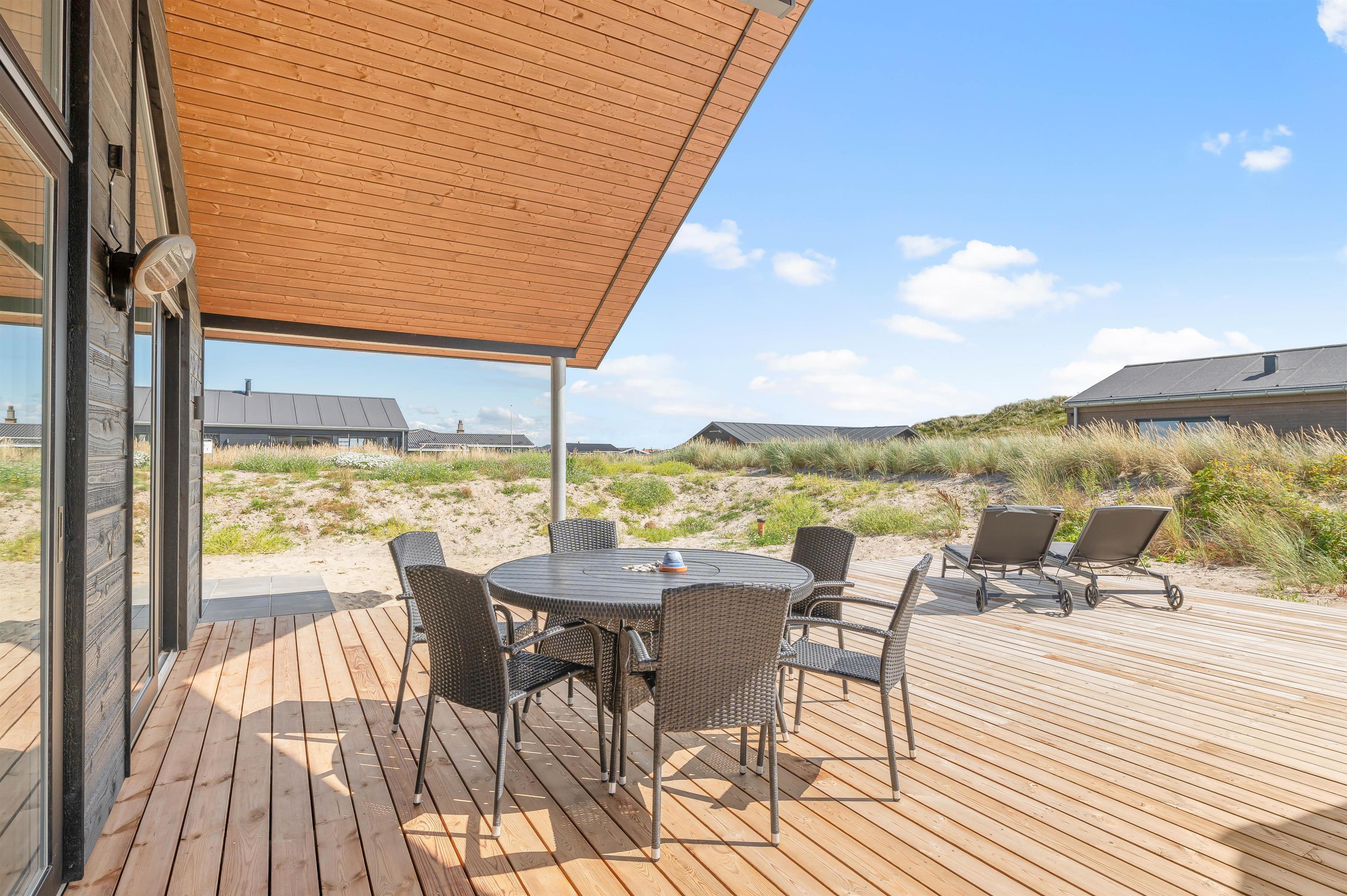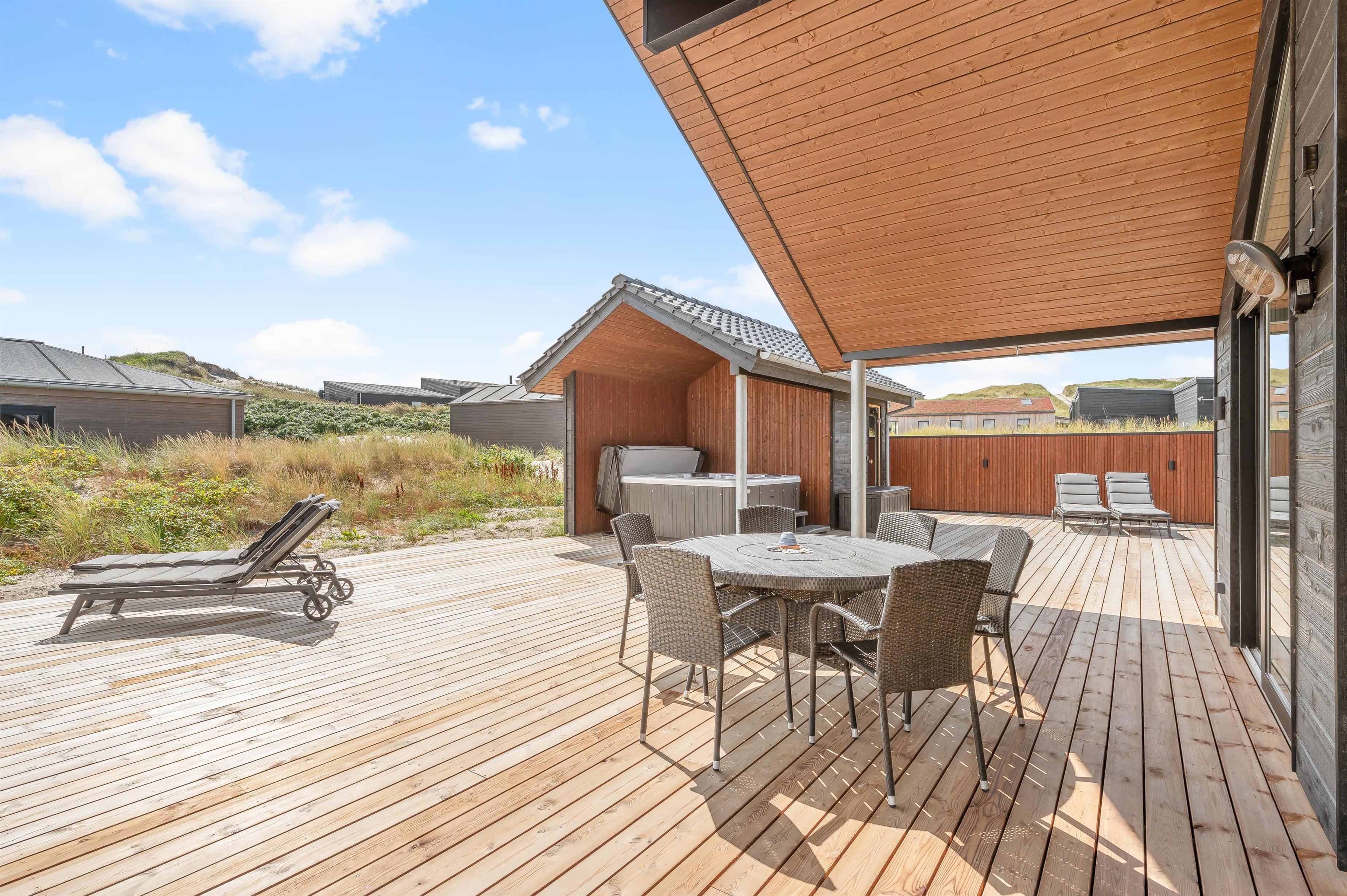På den 1250 kvadratmeter store naturgrund på Bjerregårdsvej 389 har du god plads til aktiviteter og også til wellness og afslapning. Det udendørs wellnessområde omfatter udesauna, udespa og udendørs bruser, som giver jer en dejlig afkøling i sommerhalvåret. Her kan du virkelig lade dig forkæle. Hør lyden af ??Vesterhavet kun 200 meter væk, imens du slapper af i spaen og måske nyder et godt glas vin. Udebruseren kan benyttes fra april til november.