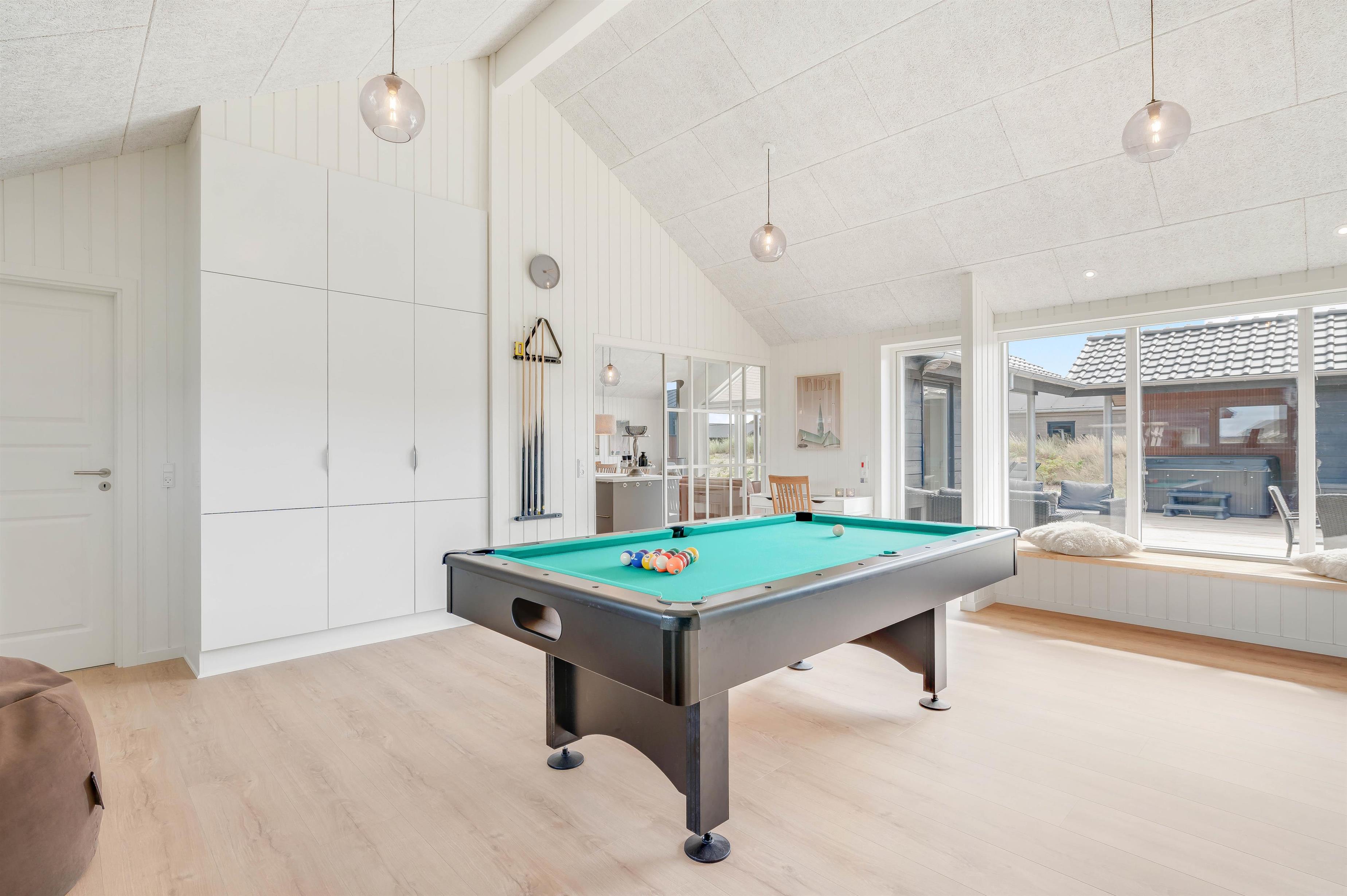 Vil du virkelig forkæle dig selv på ferie, er dette 161 kvadratmeter store luksusferiehus på Bjerregårdsvej 389, der er bygget i 2022, lige noget for dig. Her finder du et aktivitetsrum med billard og bordtennis, et rummeligt udendørs wellnessområde med udespa og udesauna samt et stort hjørnebadekar i det ene af de to badeværelser. Det særegne område byder også på en unik ferieoplevelse. Nyd lange gåture på stranden ved den danske vestkyst og naturen lige uden for døren, og glæd dig til masser af godt ekstraudstyr, som dette luksusferiehus har at byde på.