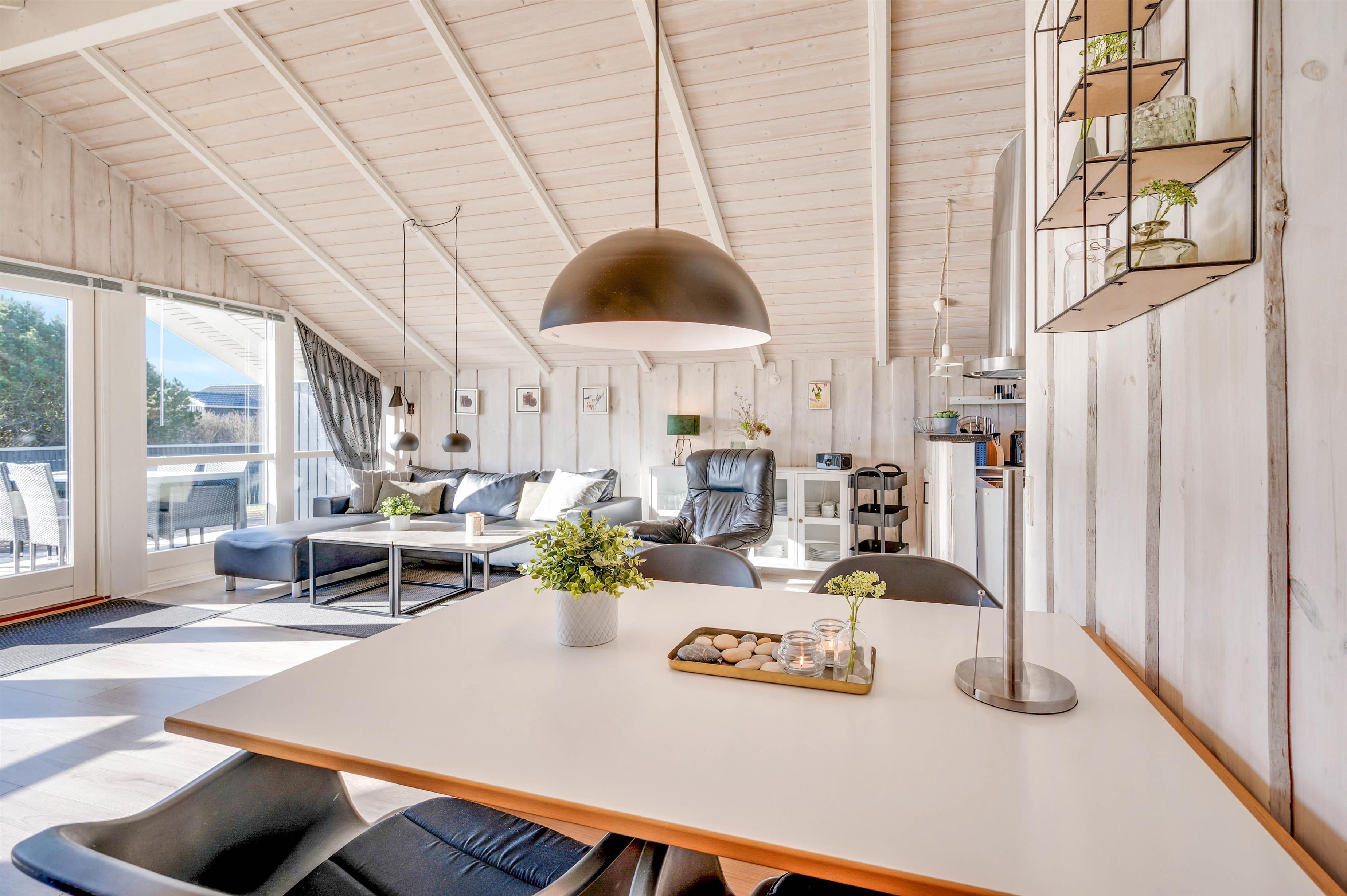 Feriehuset er hyggeligt indrettet, og den charmerende stil, der er kendetegnende for et Kalmarhus, kommer fuldt til sin ret med de lyse gulve, de lyse vægge og flotte lofter til kip. Køkken-alrummet er sommerhusets hjerte og indbyder til hygge og samvær.